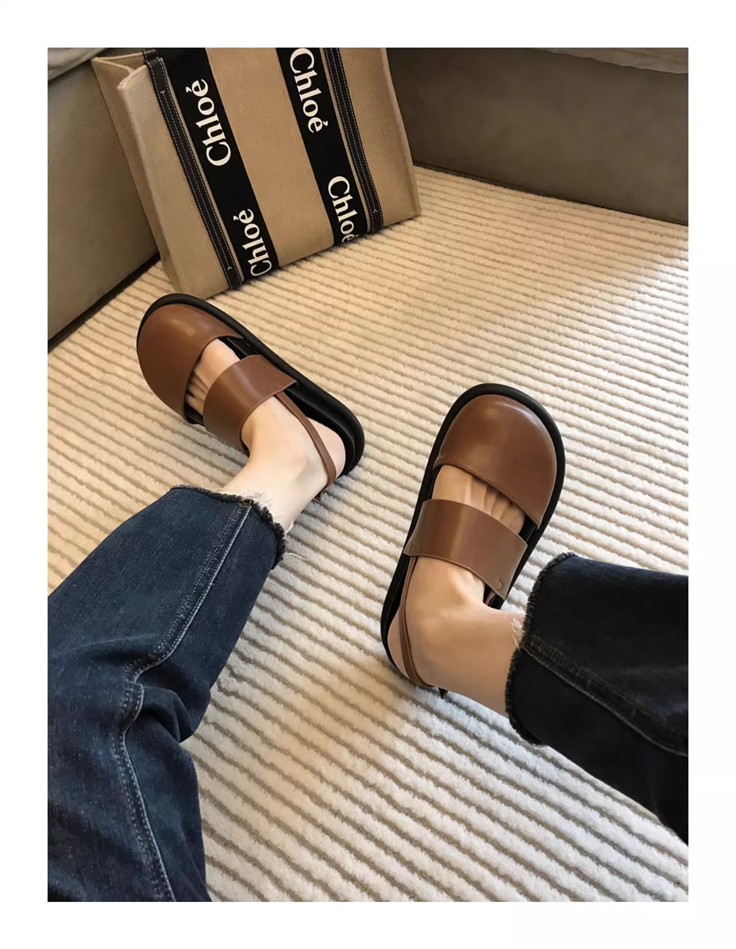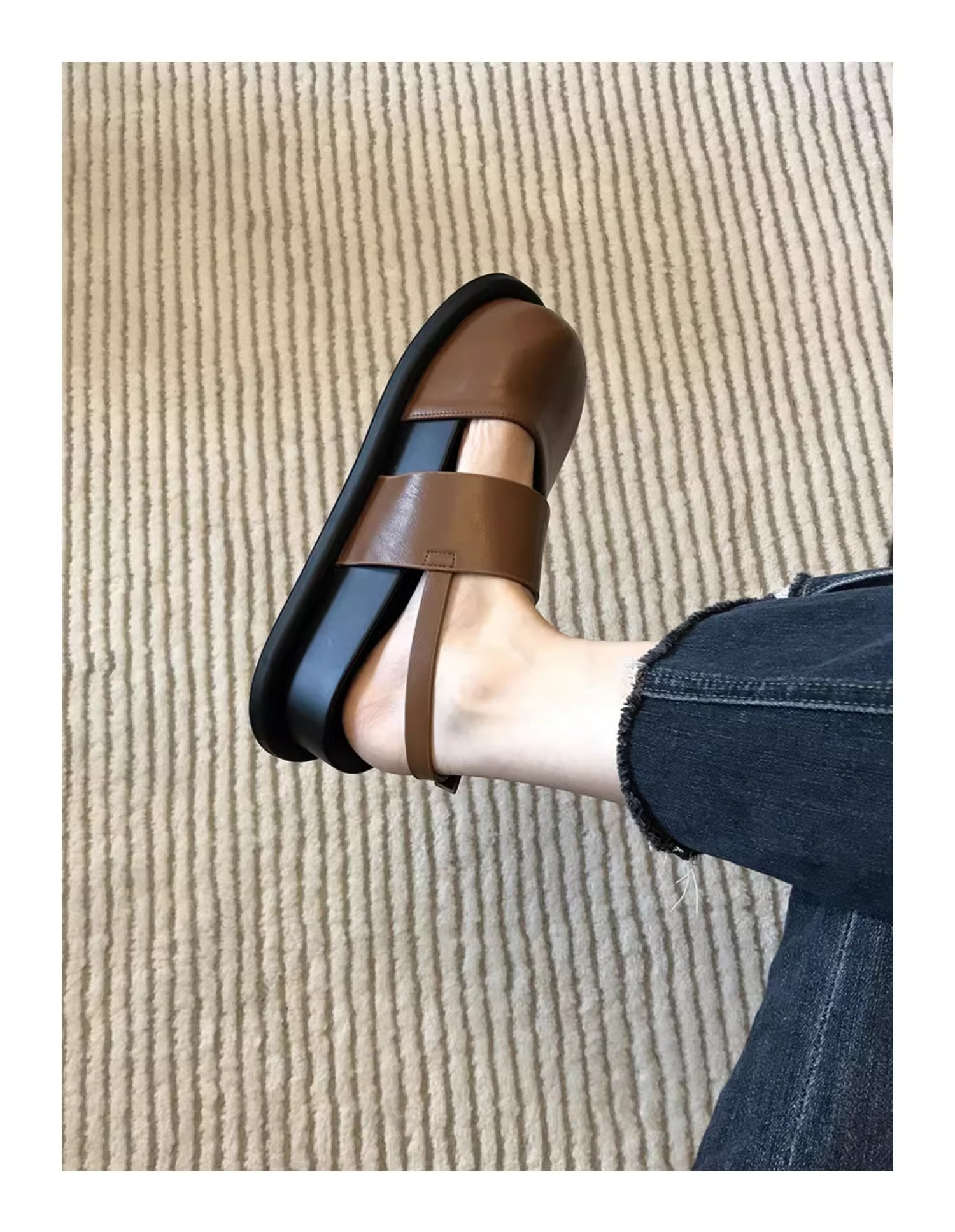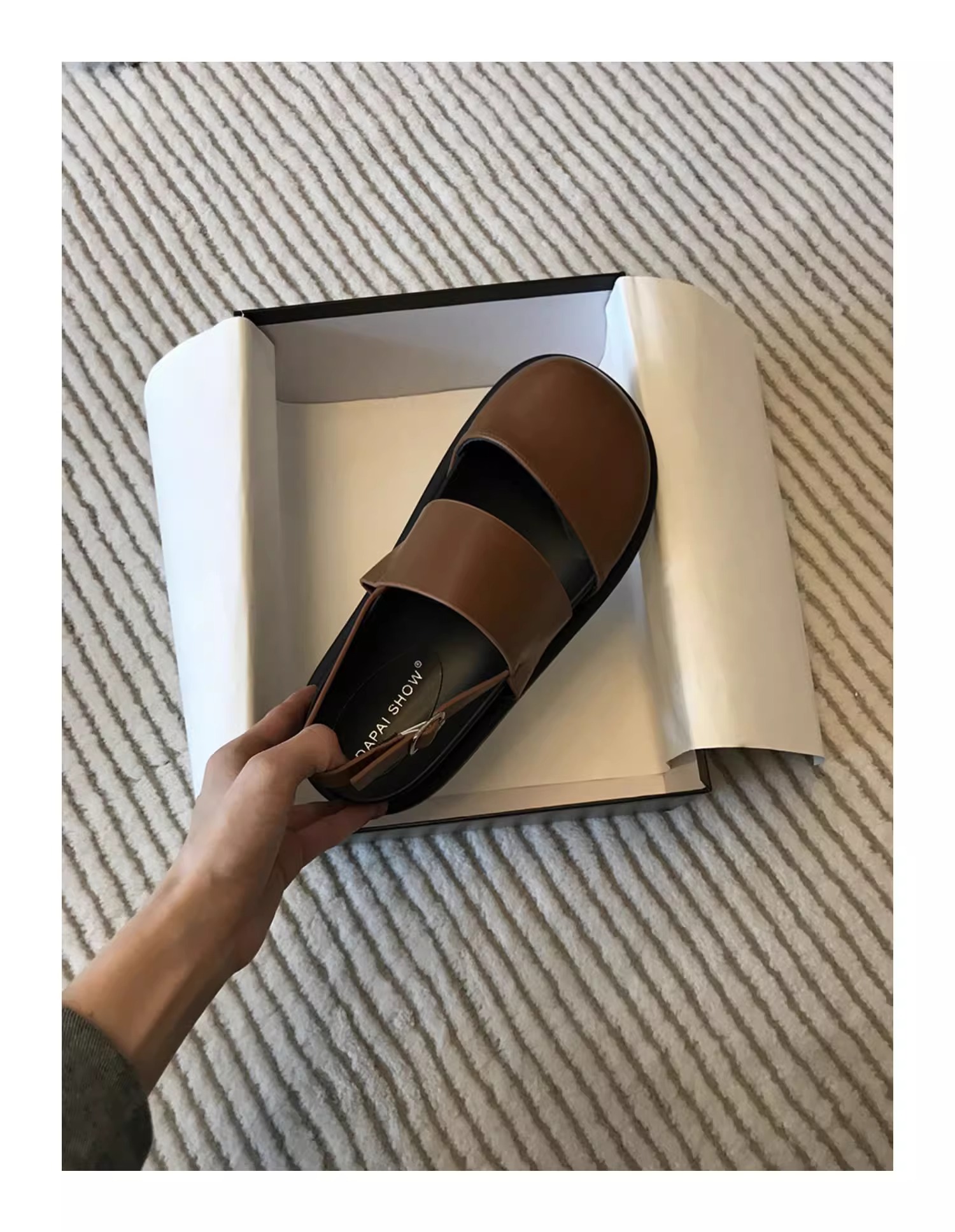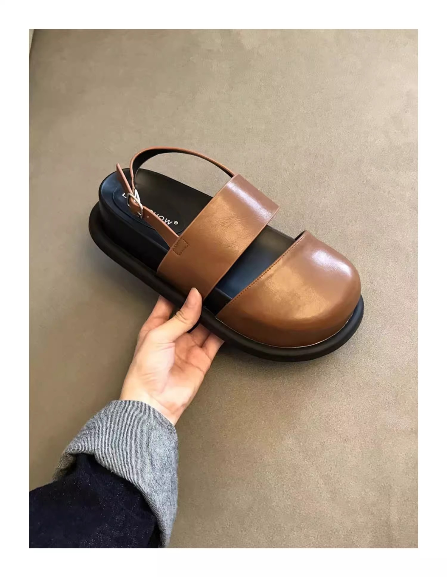 厚底包頭羅馬涼鞋女款夏季2025新款百搭棕色涼拖鞋圓頭醜萌勃肯鞋