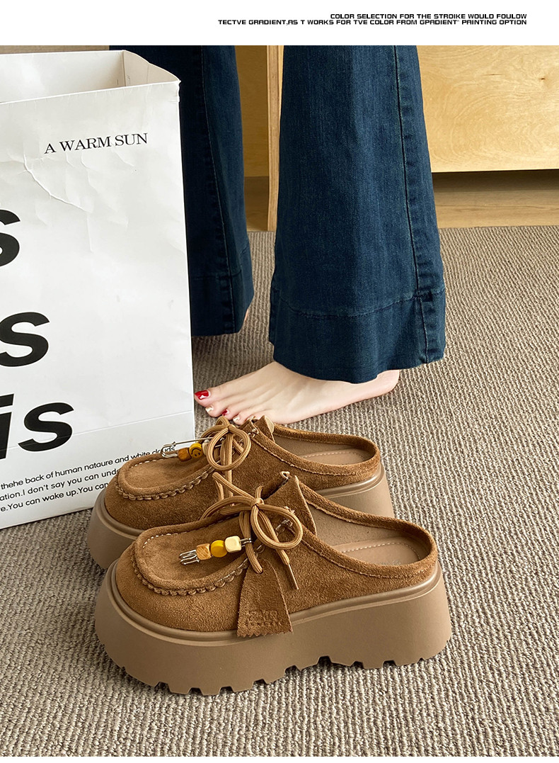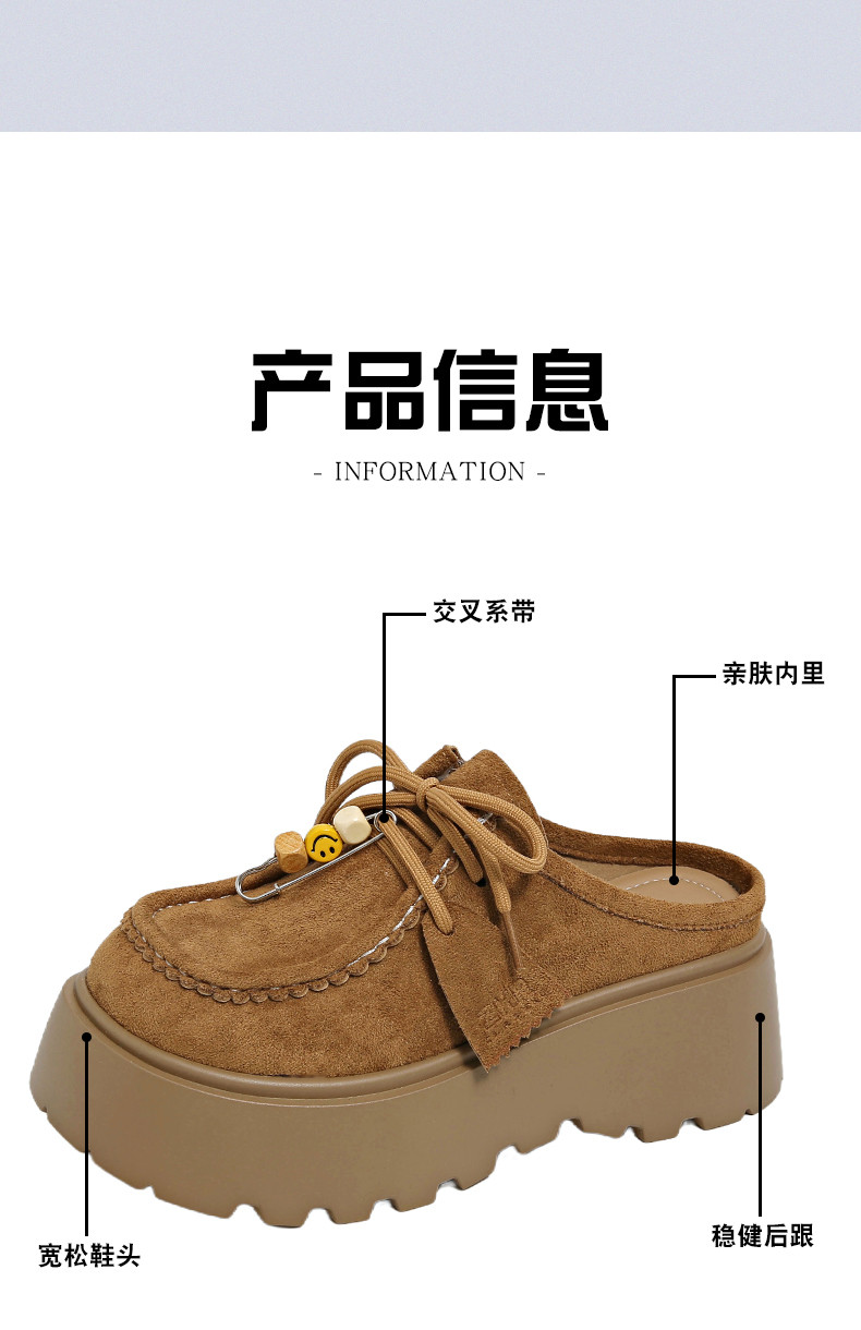 厚底增高包頭半拖鞋女2026新款春季嬾人一腳蹬拖鞋外穿百搭勃肯鞋
