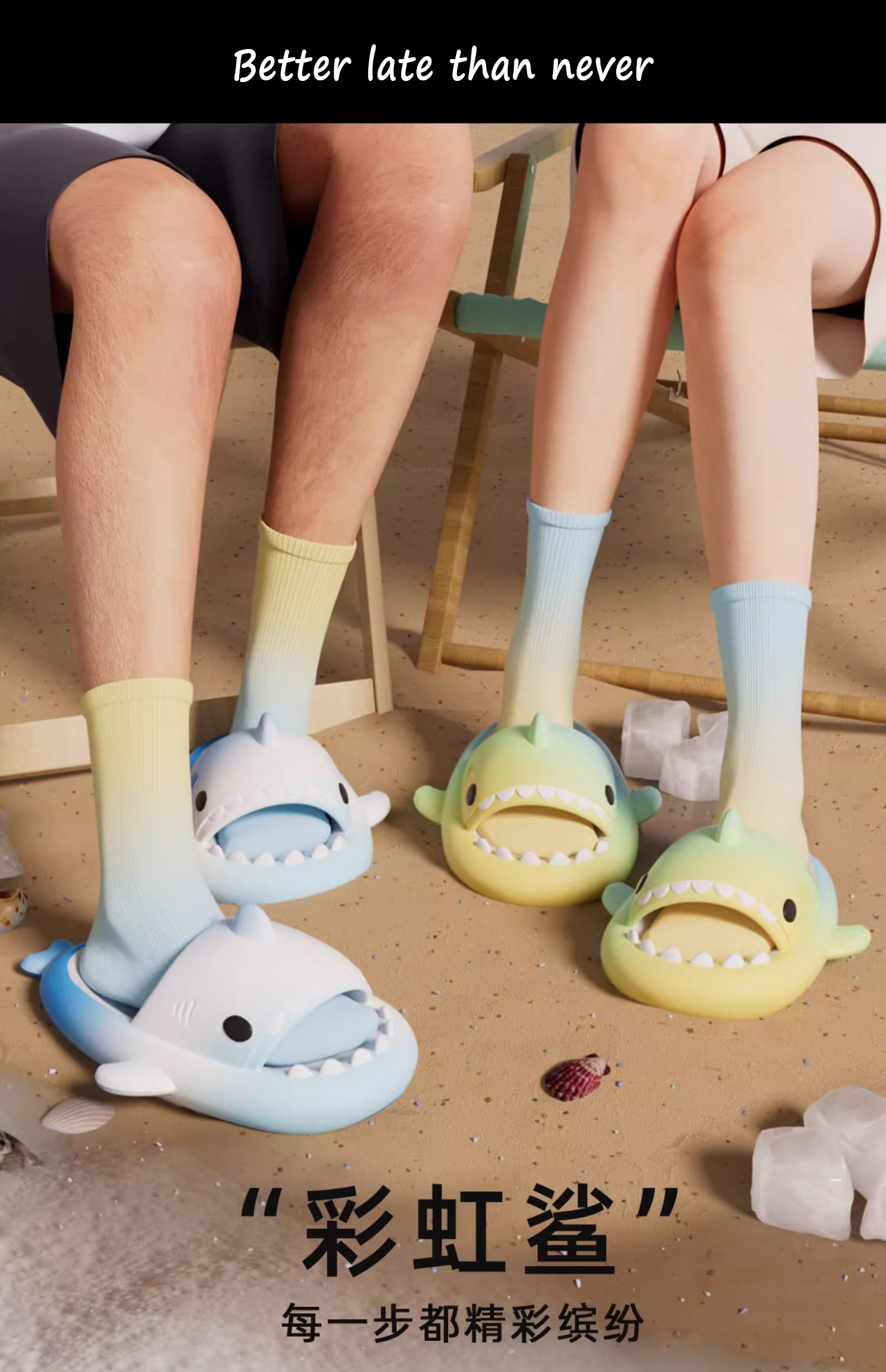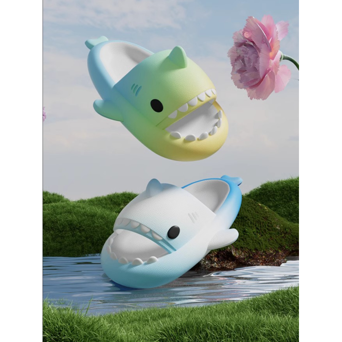 彩虹鯊魚拖鞋男女夏季情侶防滑抗菌加厚室內洗澡可外穿沙灘涼拖鞋