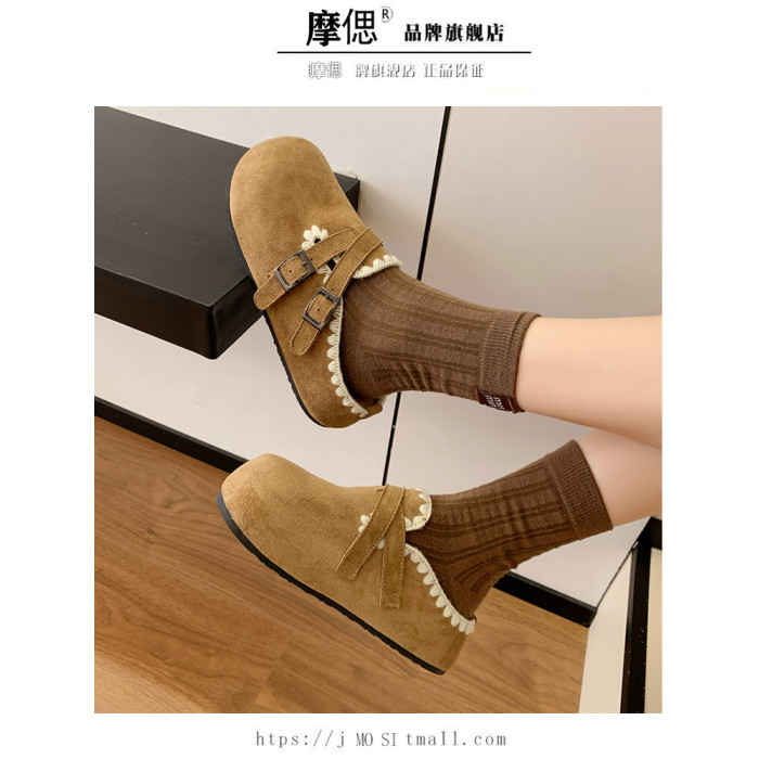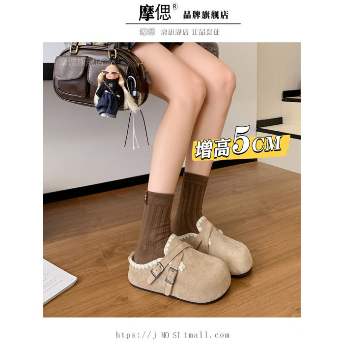 厚底內增高勃肯鞋醜萌一腳蹬包頭半拖鞋女外穿2025新款秋冬博肯鞋