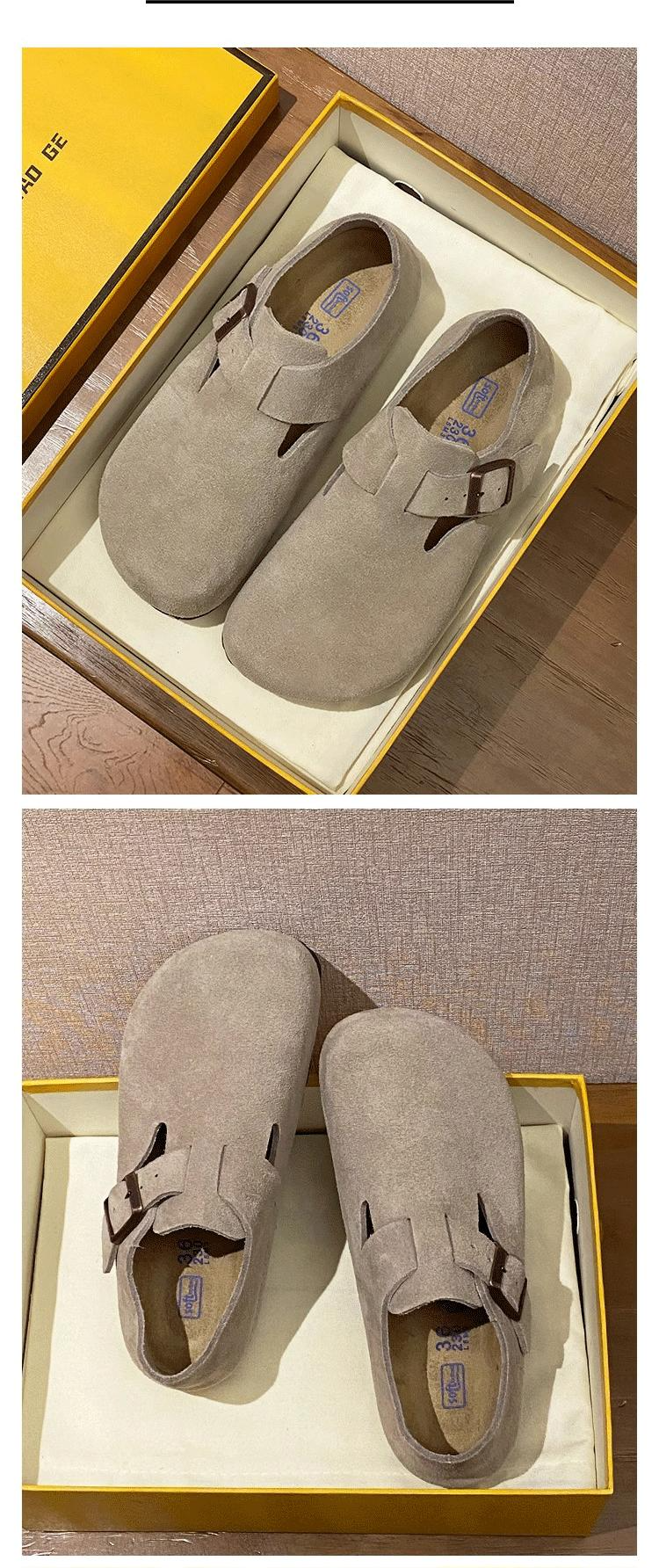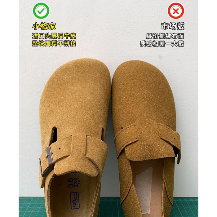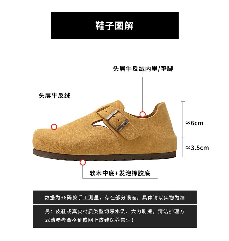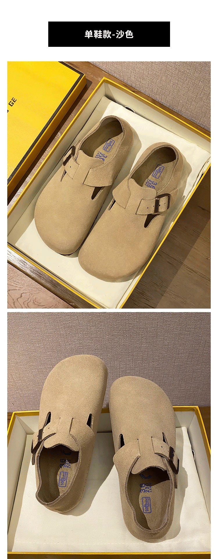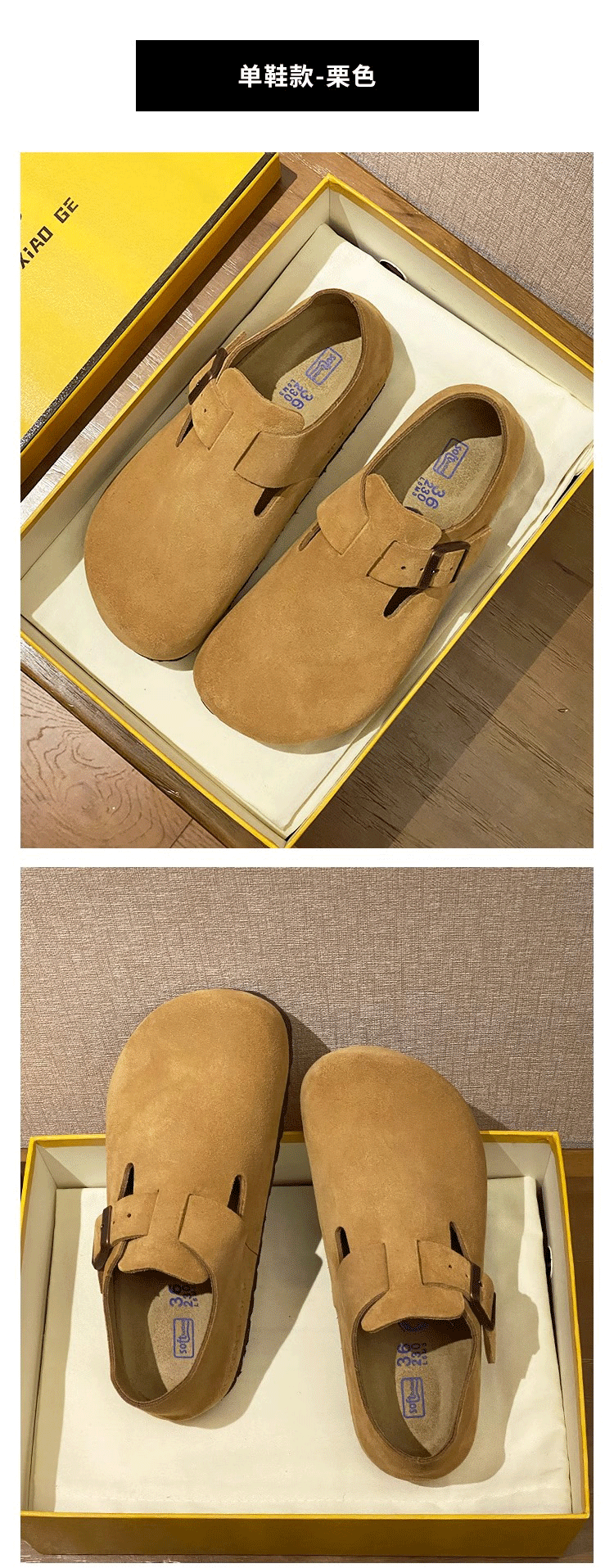 三喜同款牛皮勃肯鞋女全包秋冬加絨真皮軟底厚底博肯鞋大碼41-43