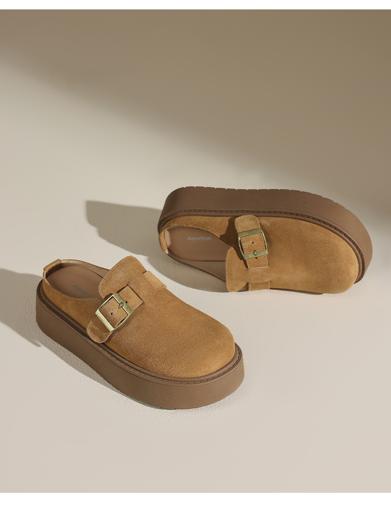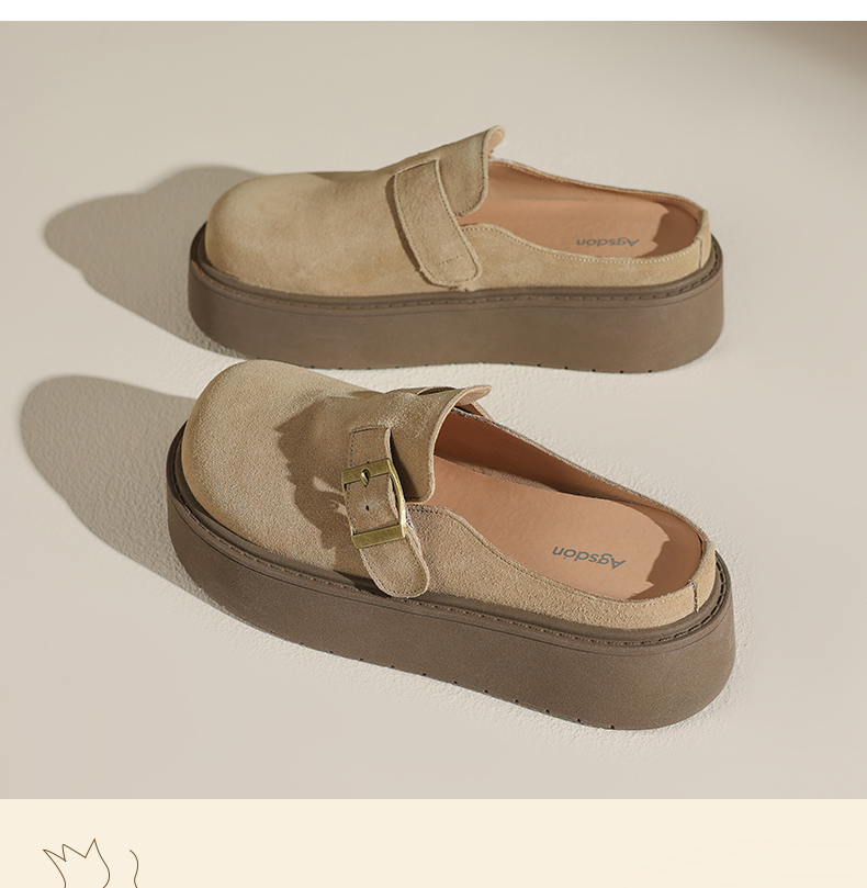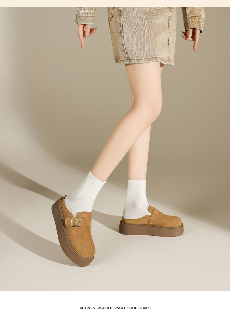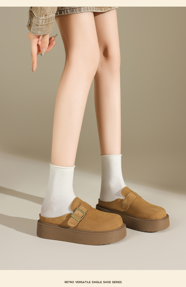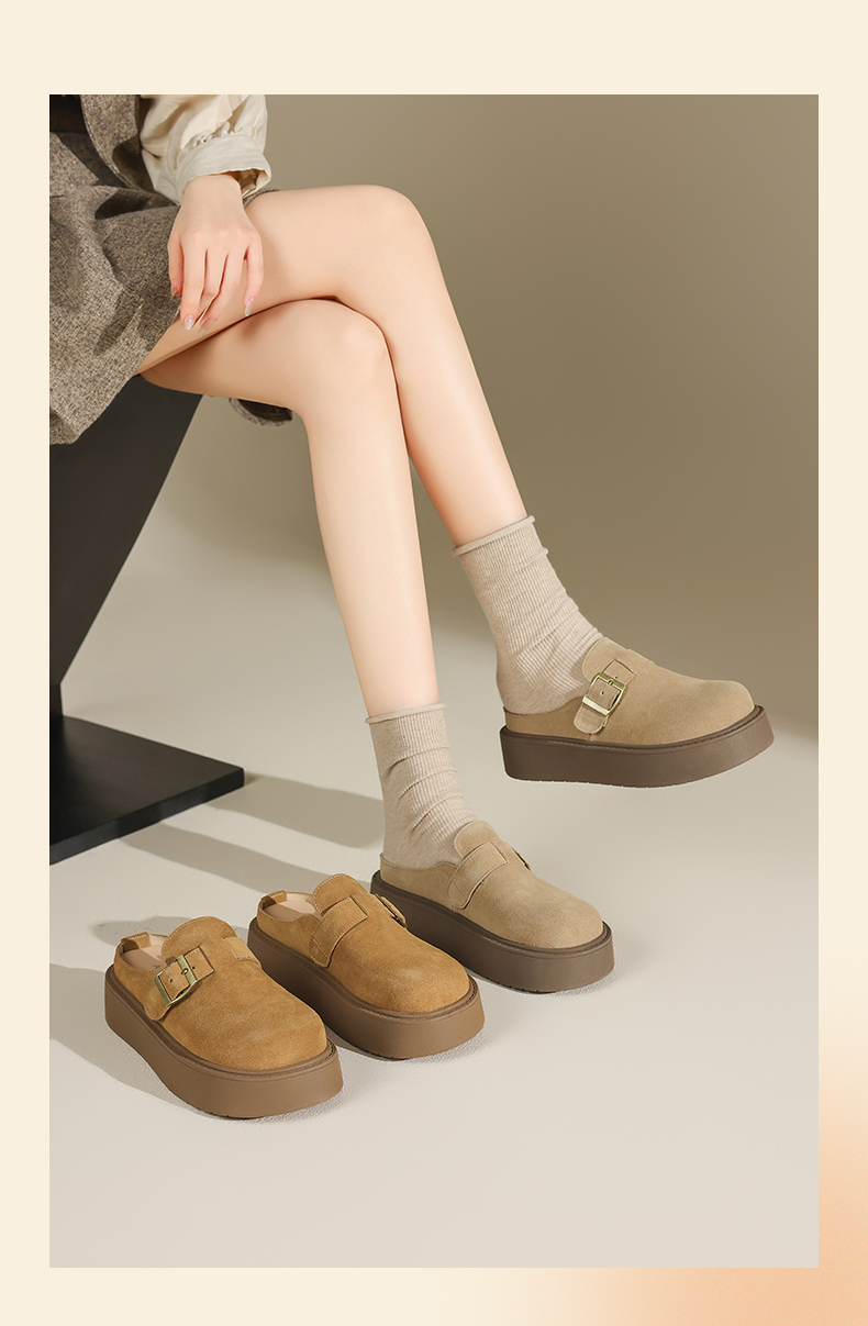 奧古獅登勃肯鞋女2025新款秋冬季厚底增高包頭半拖鞋子外穿孕婦爆