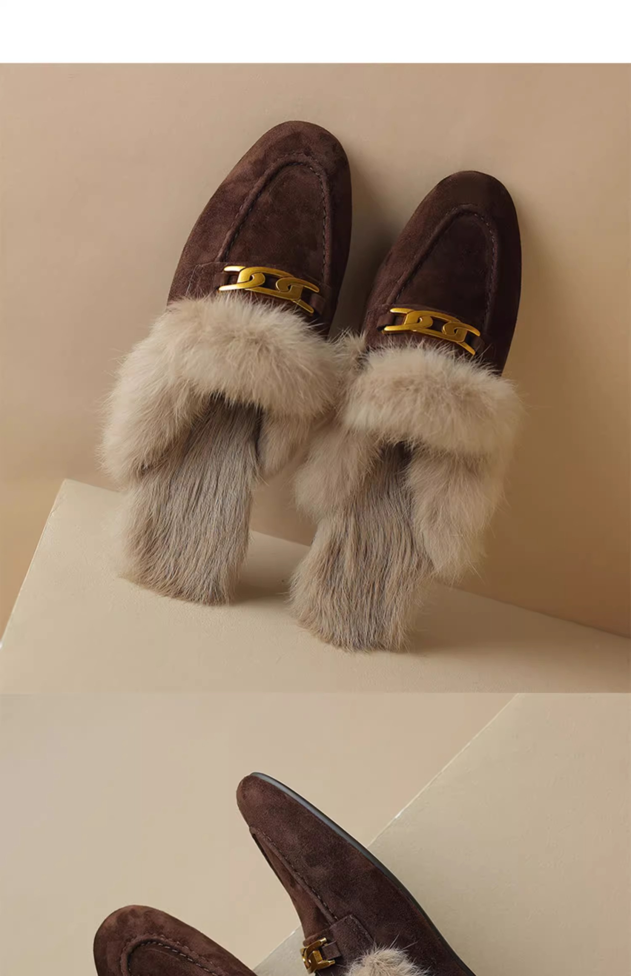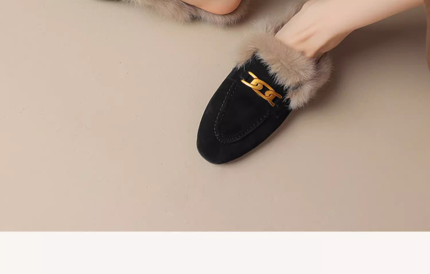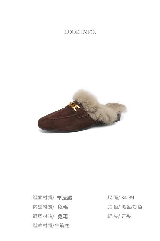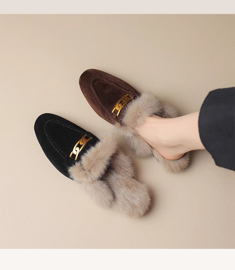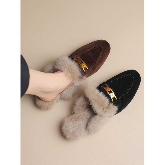 兔毛軟皮毛毛拖女外穿磨砂樂福棉拖鞋穆勒鞋2025春秋季低跟包頭拖
