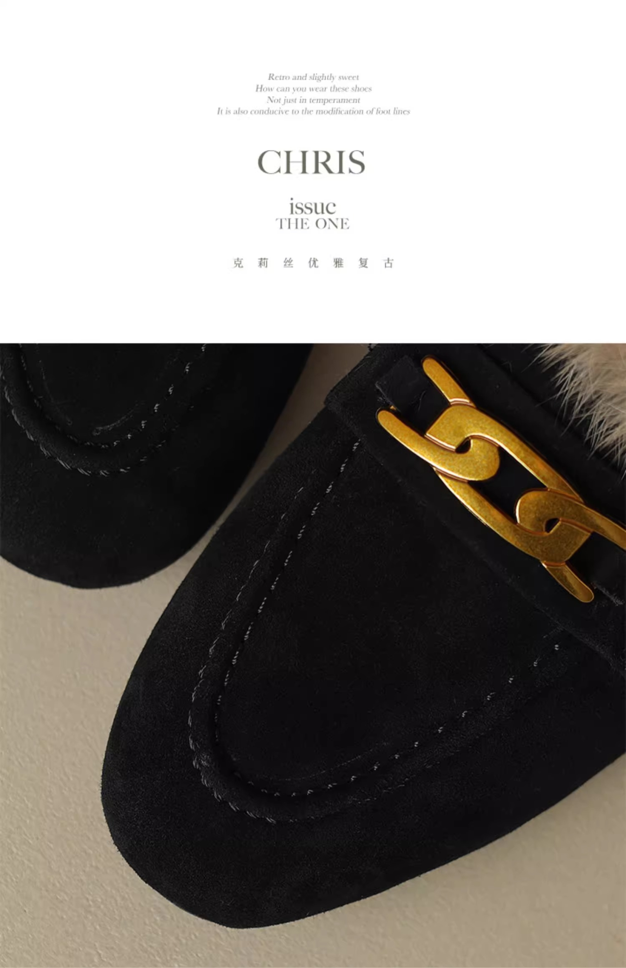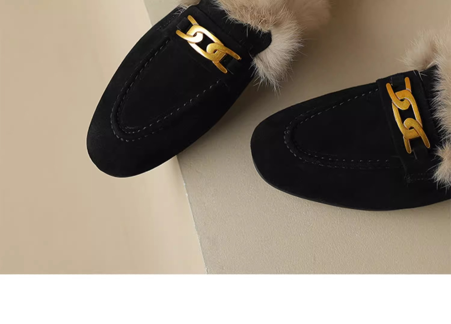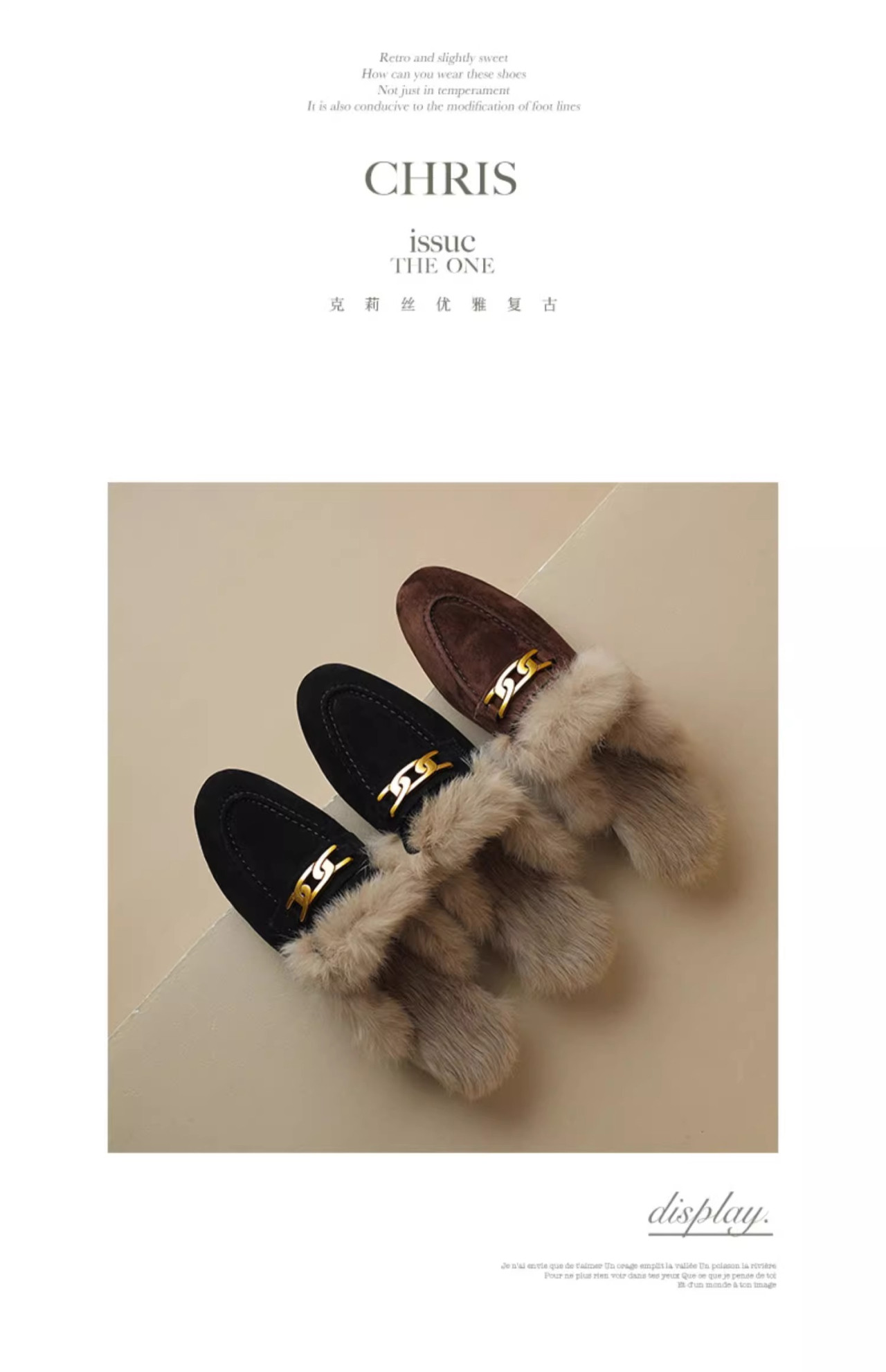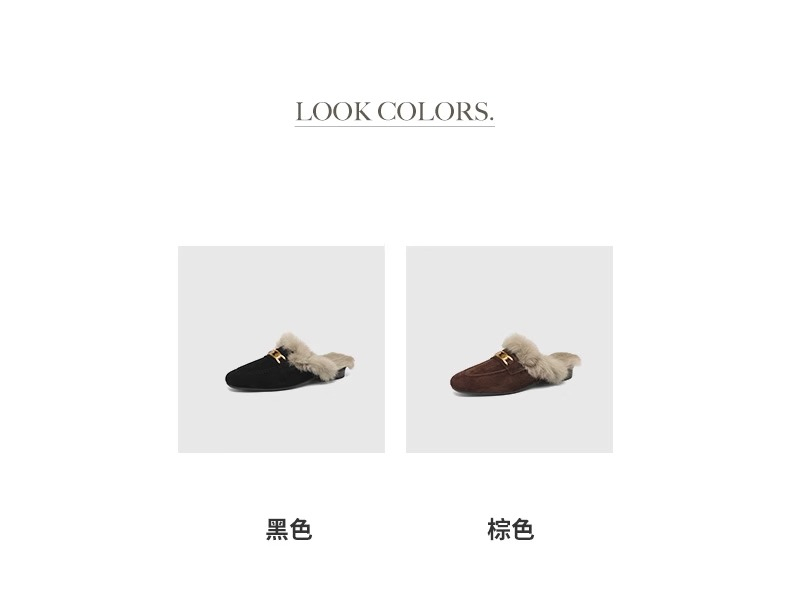 兔毛軟皮毛毛拖女外穿磨砂樂福棉拖鞋穆勒鞋2025春秋季低跟包頭拖