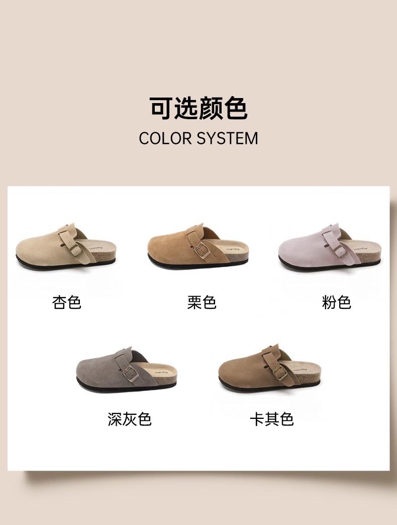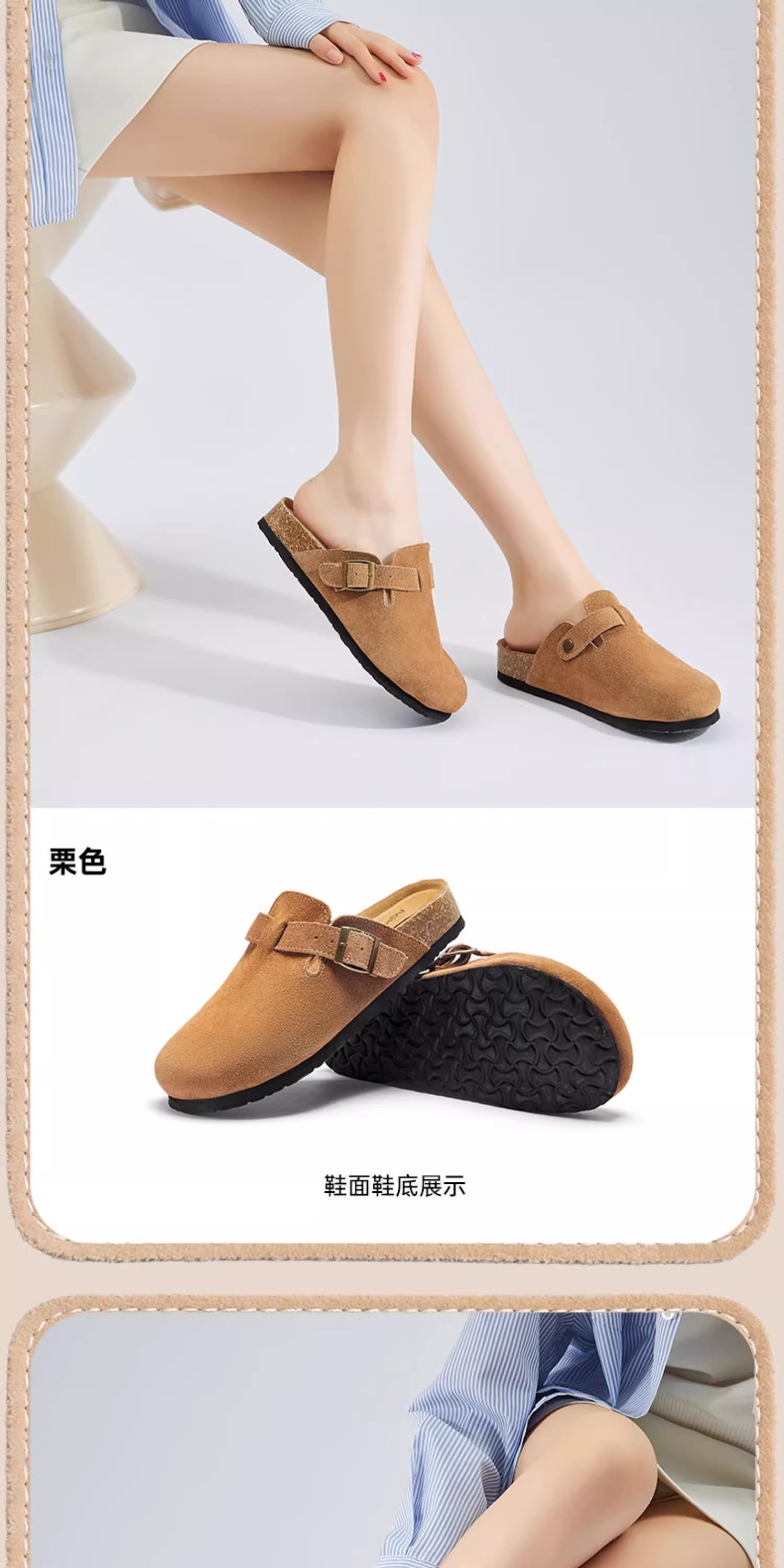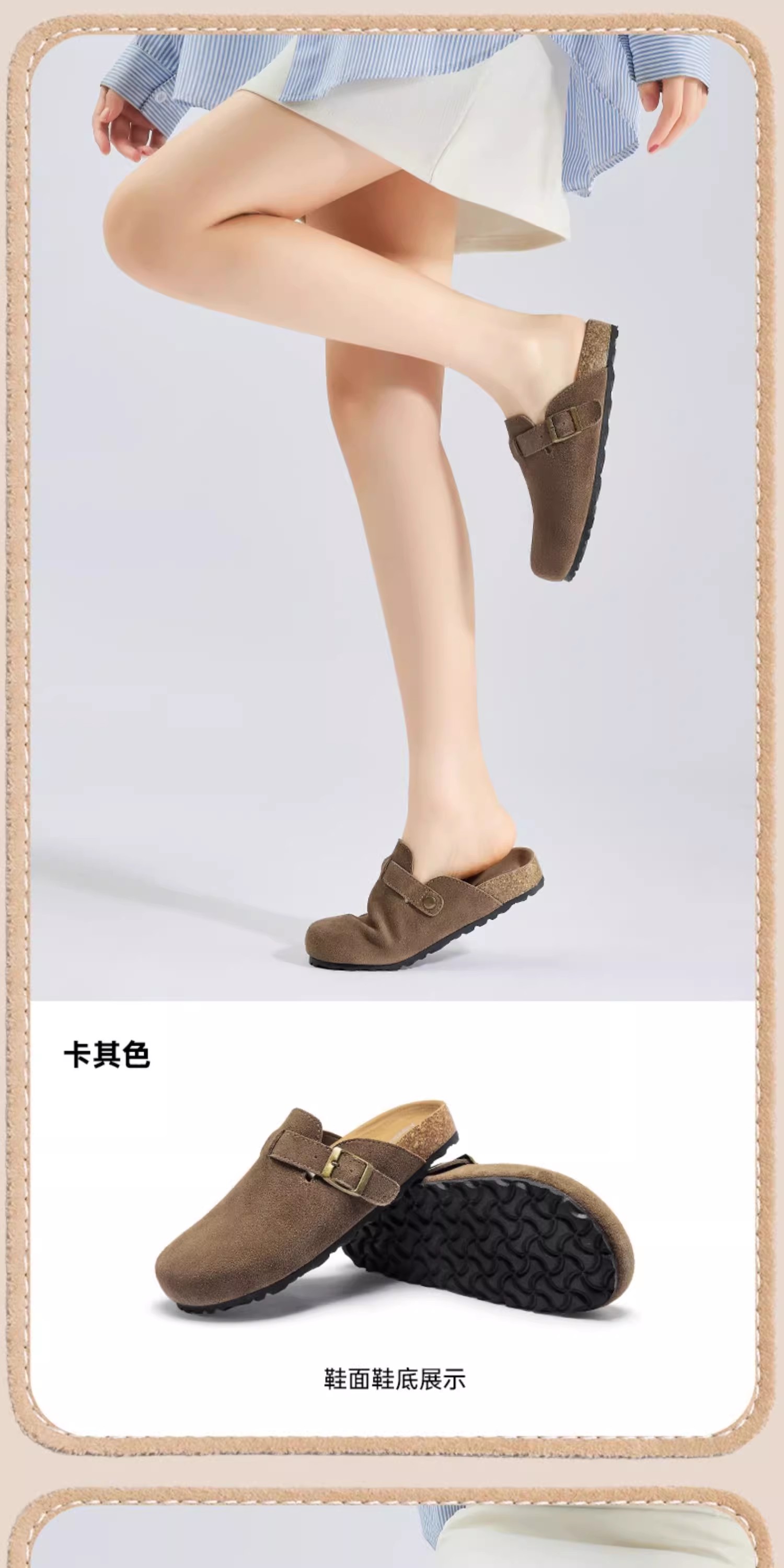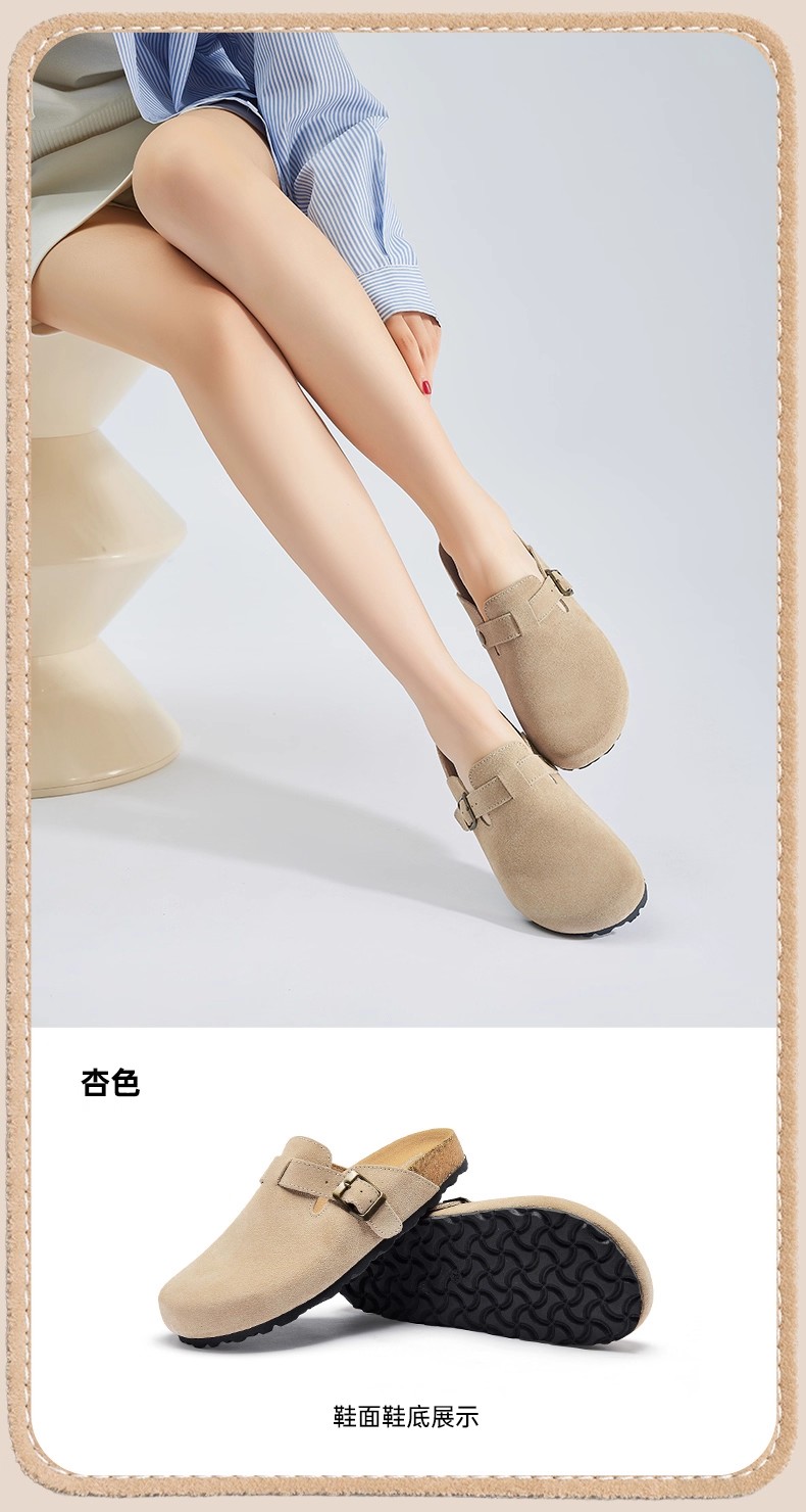 奧古獅登加絨真皮勃肯鞋女2025秋季新款鞋子厚底拖鞋軟底博肯半拖