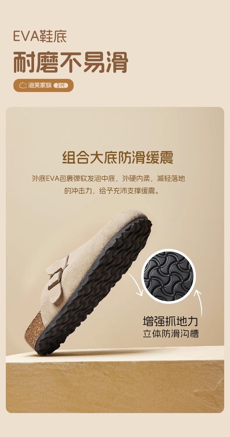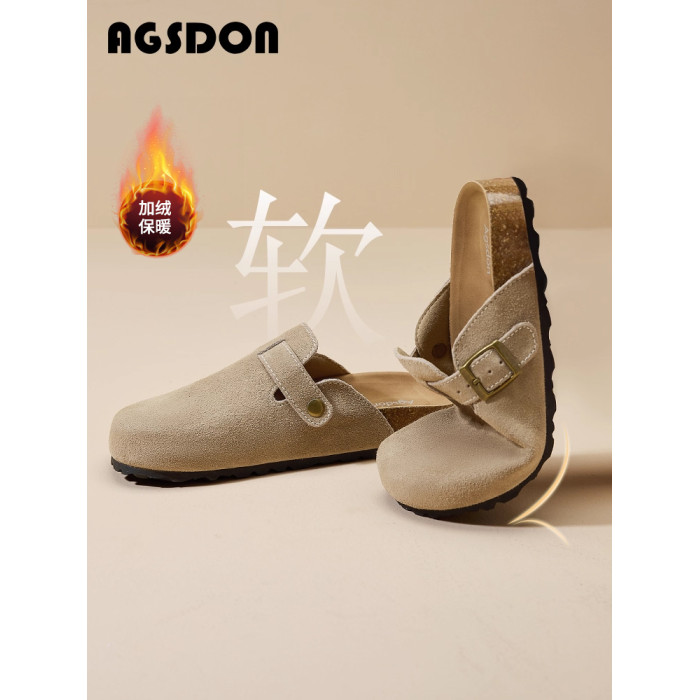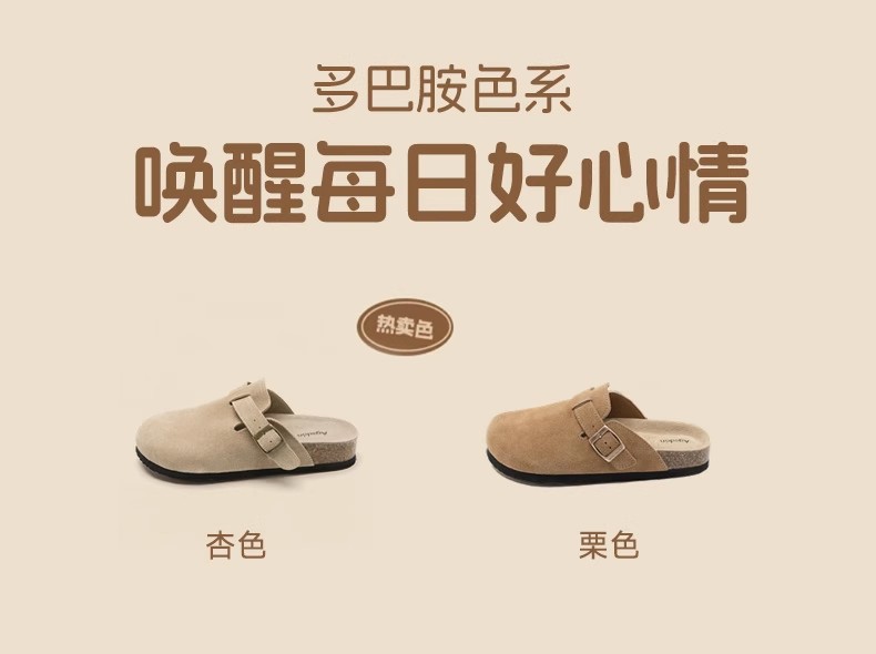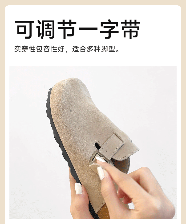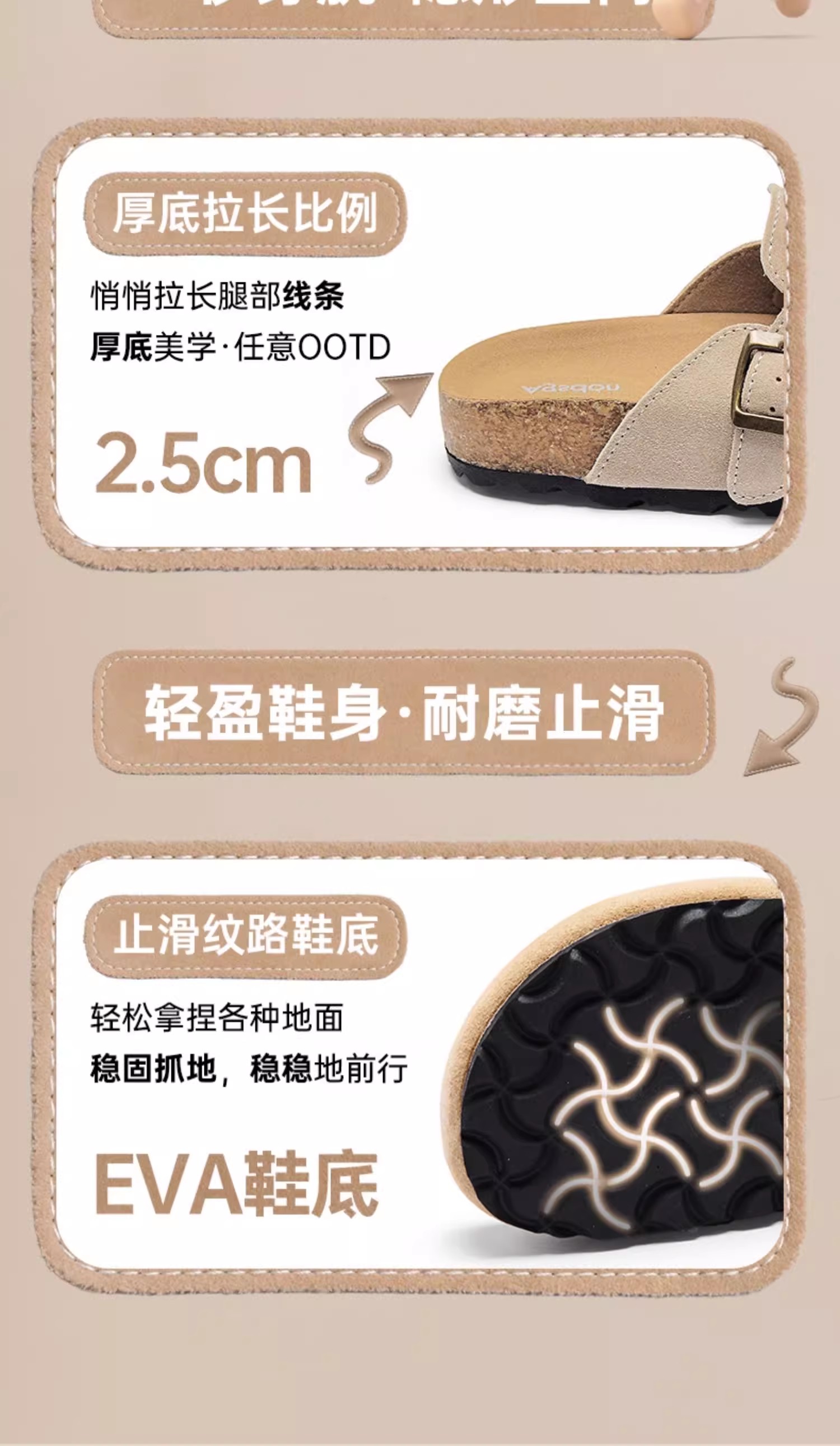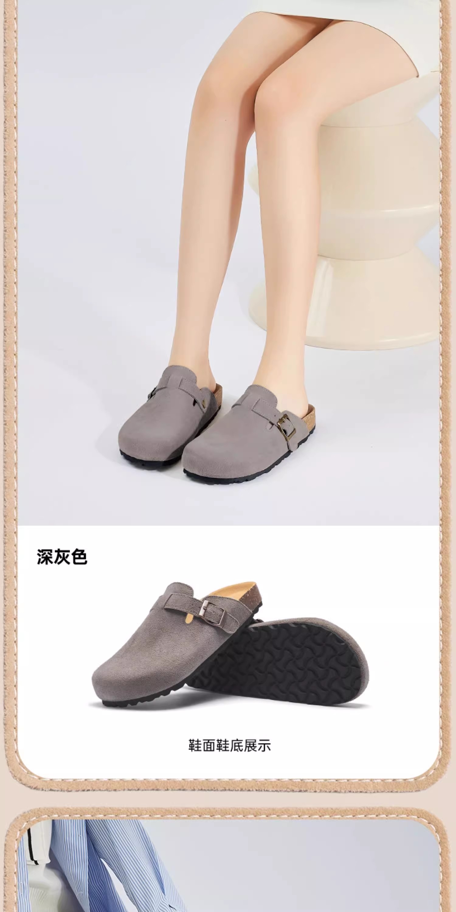 奧古獅登加絨真皮勃肯鞋女2025秋季新款鞋子厚底拖鞋軟底博肯半拖