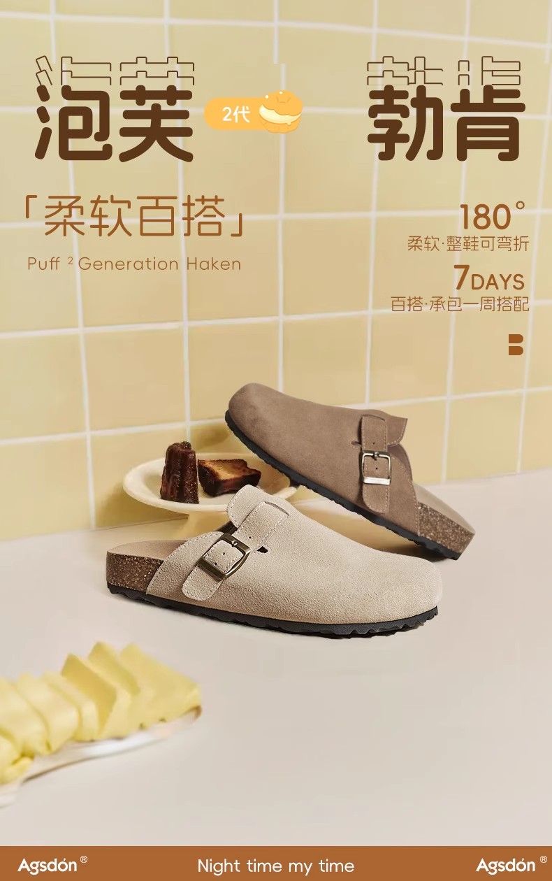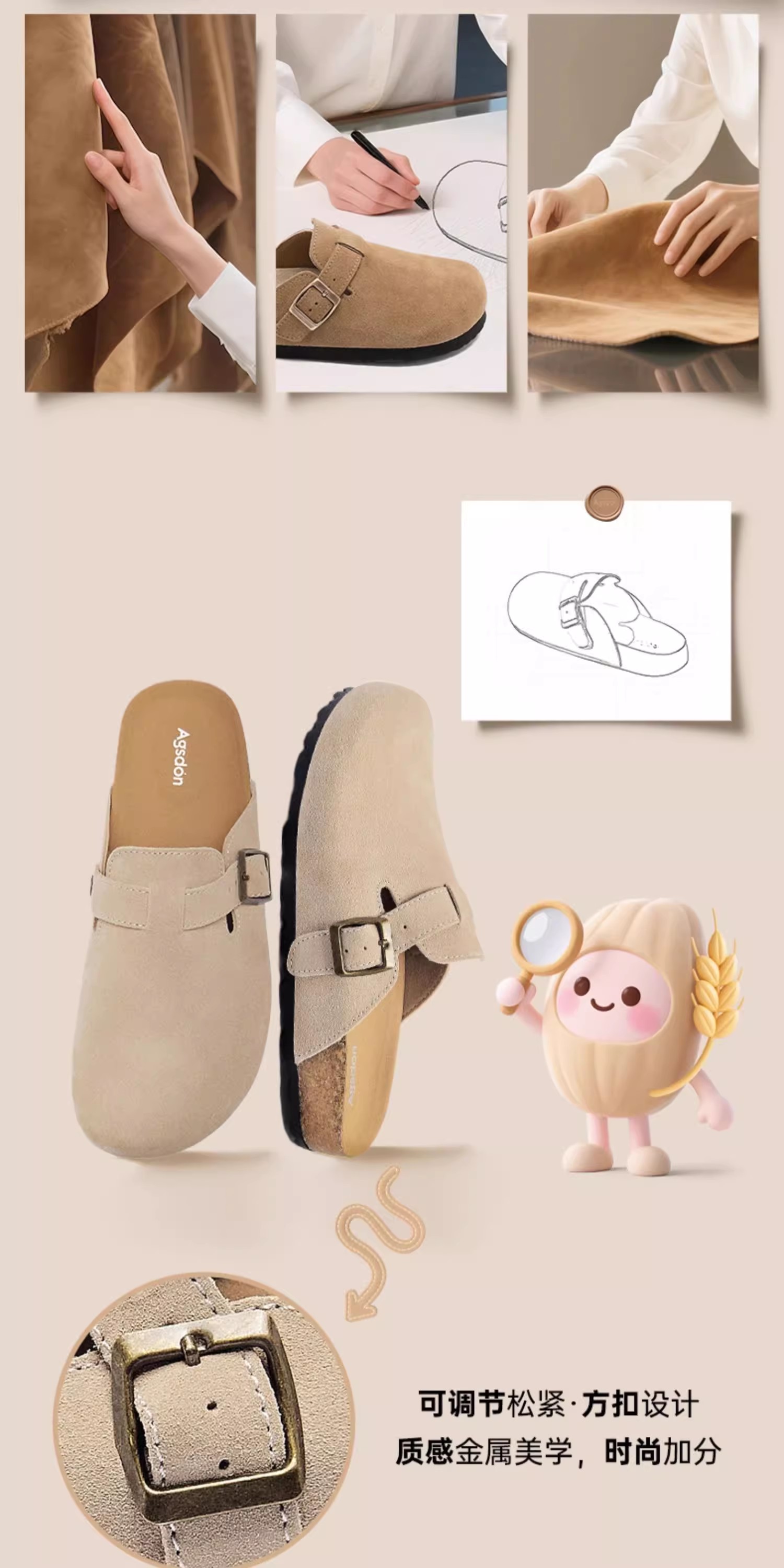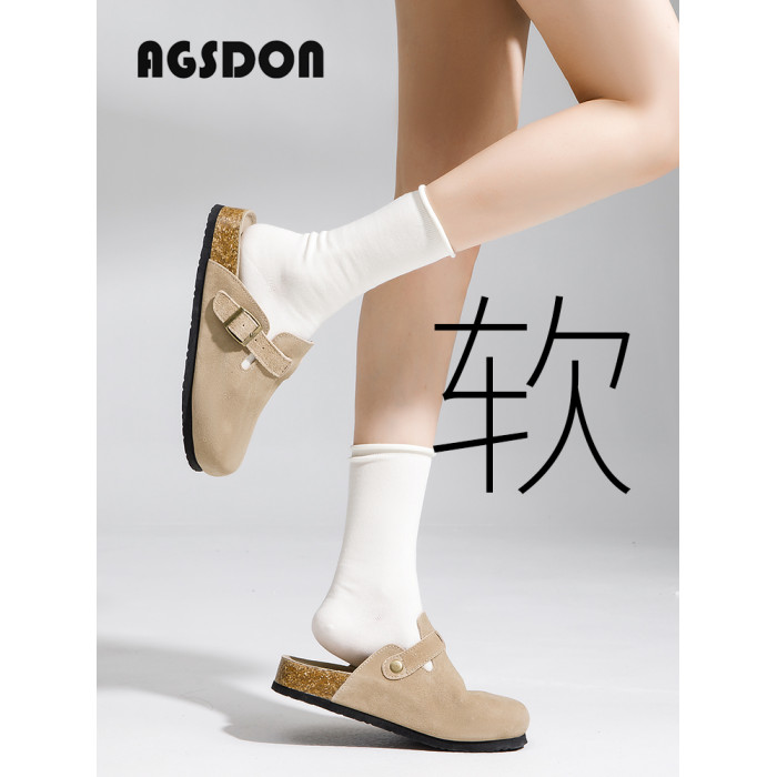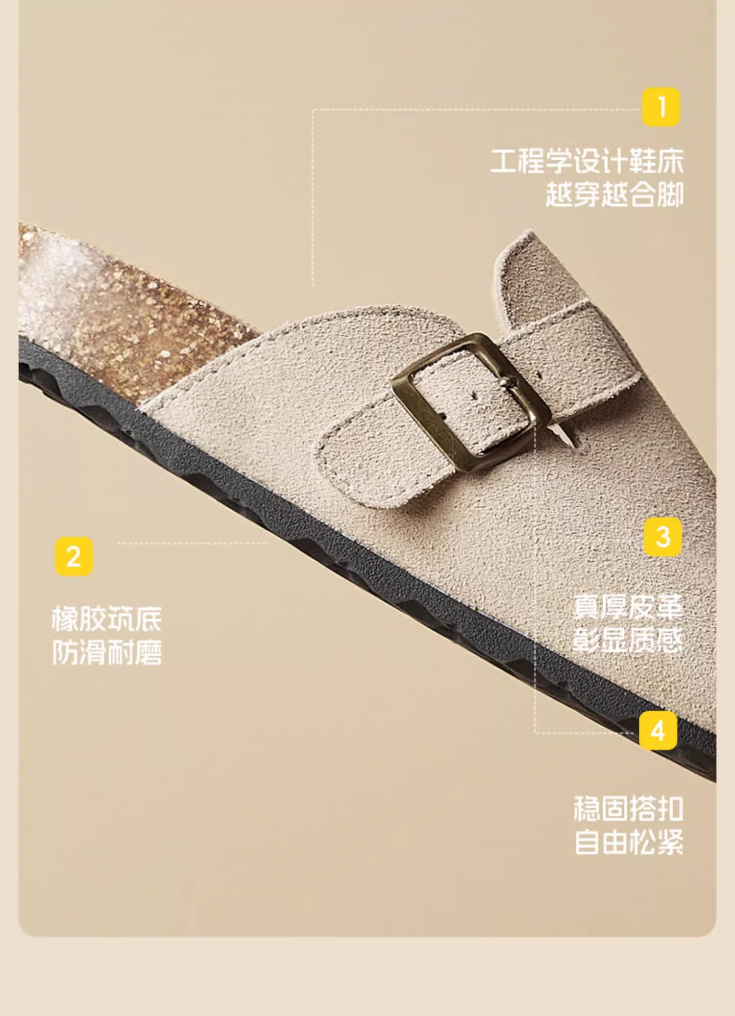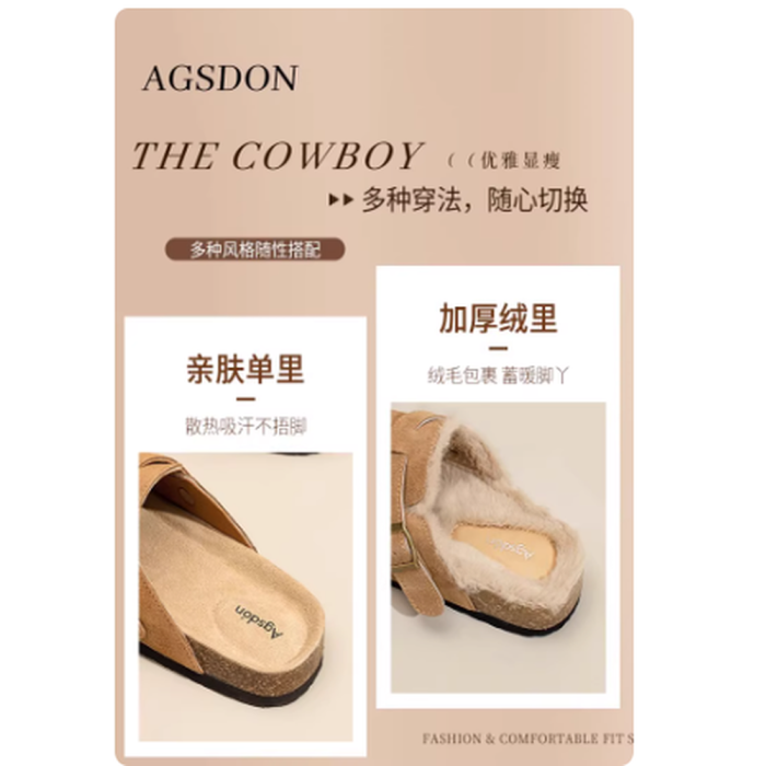 奧古獅登加絨真皮勃肯鞋女2025秋季新款鞋子厚底拖鞋軟底博肯半拖