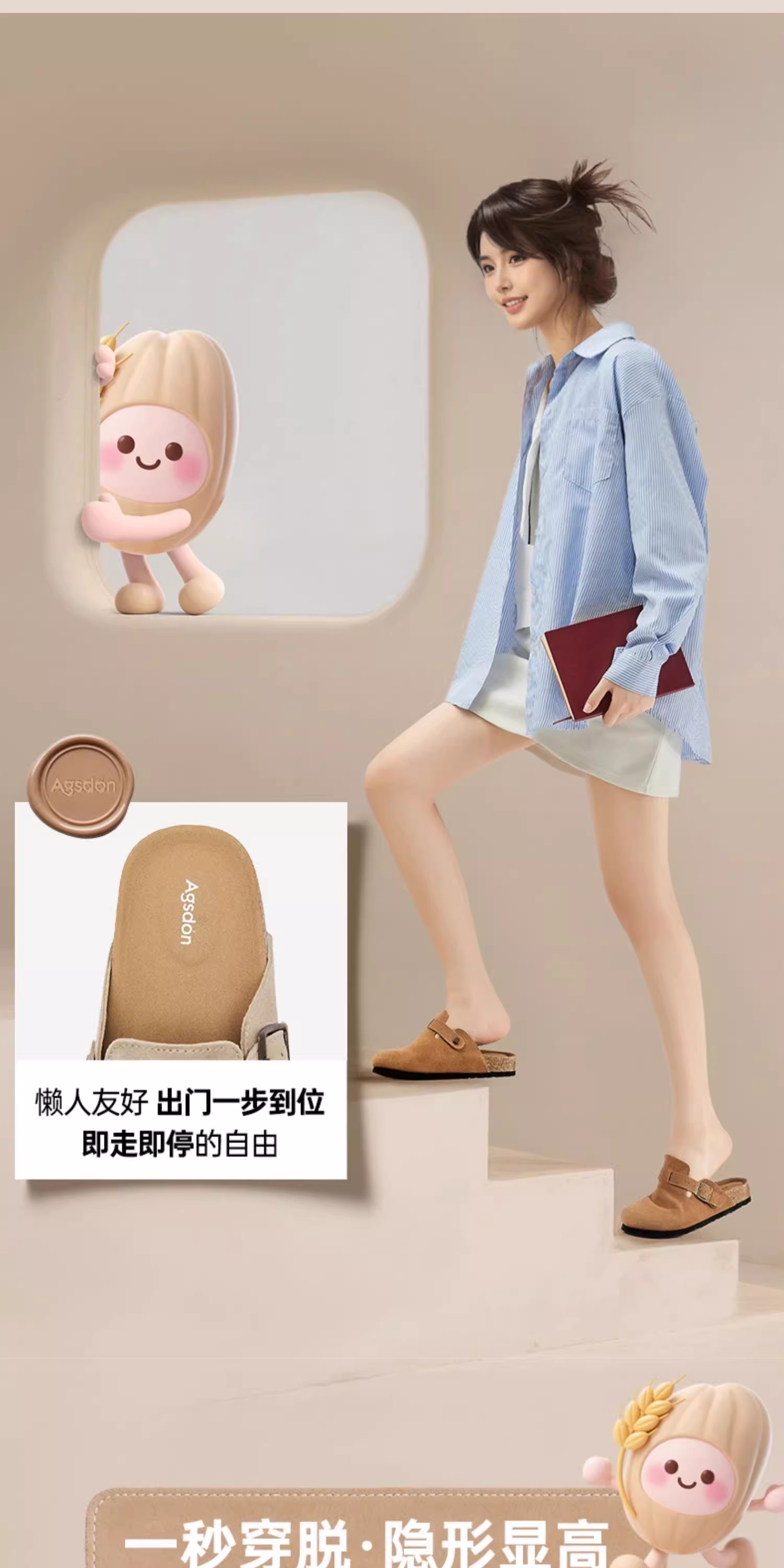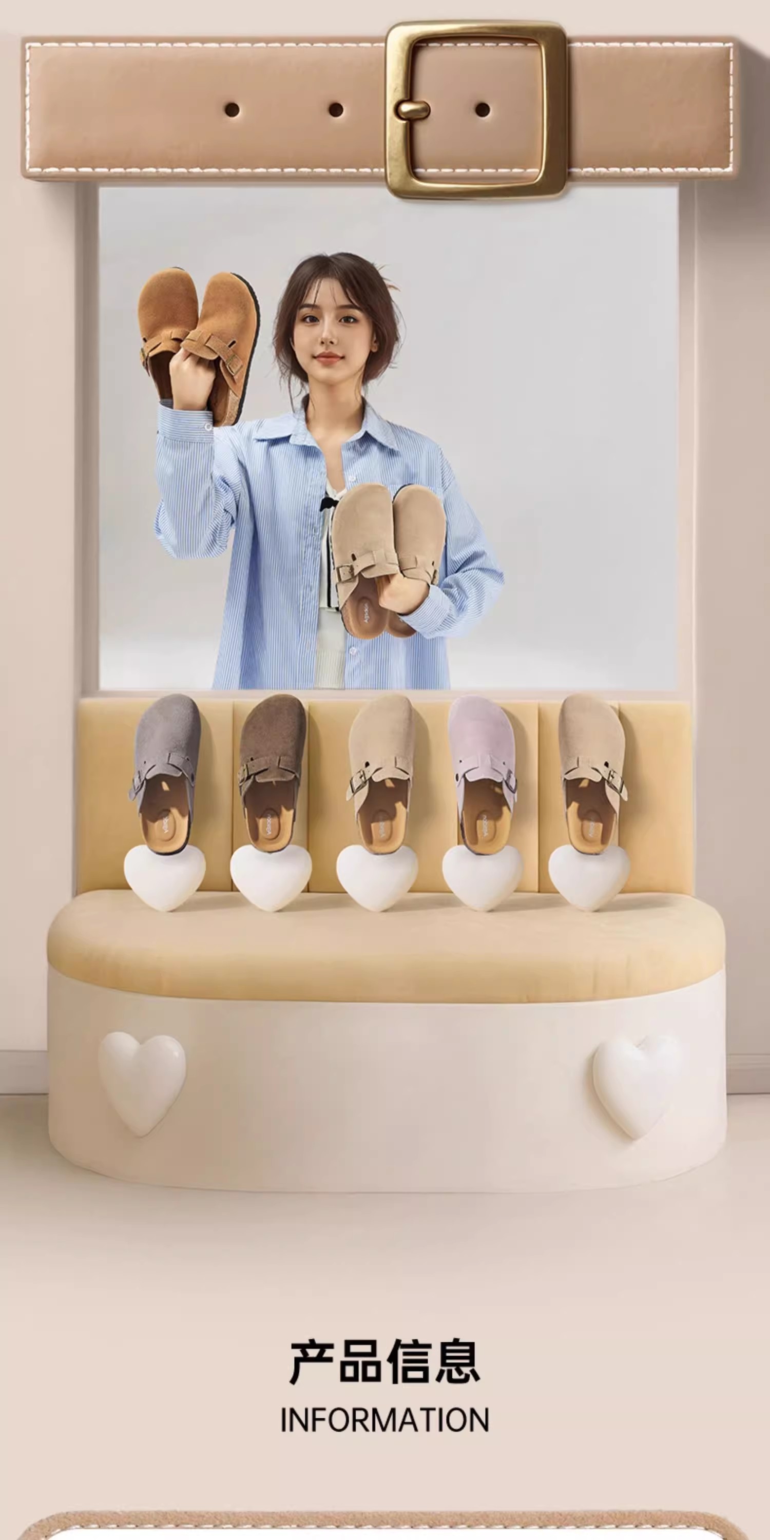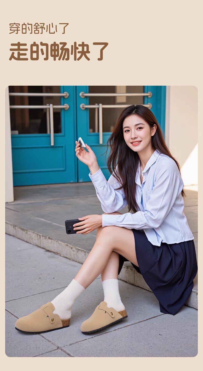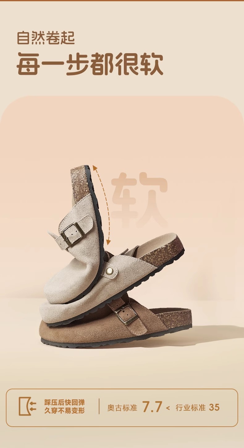 奧古獅登加絨真皮勃肯鞋女2025秋季新款鞋子厚底拖鞋軟底博肯半拖