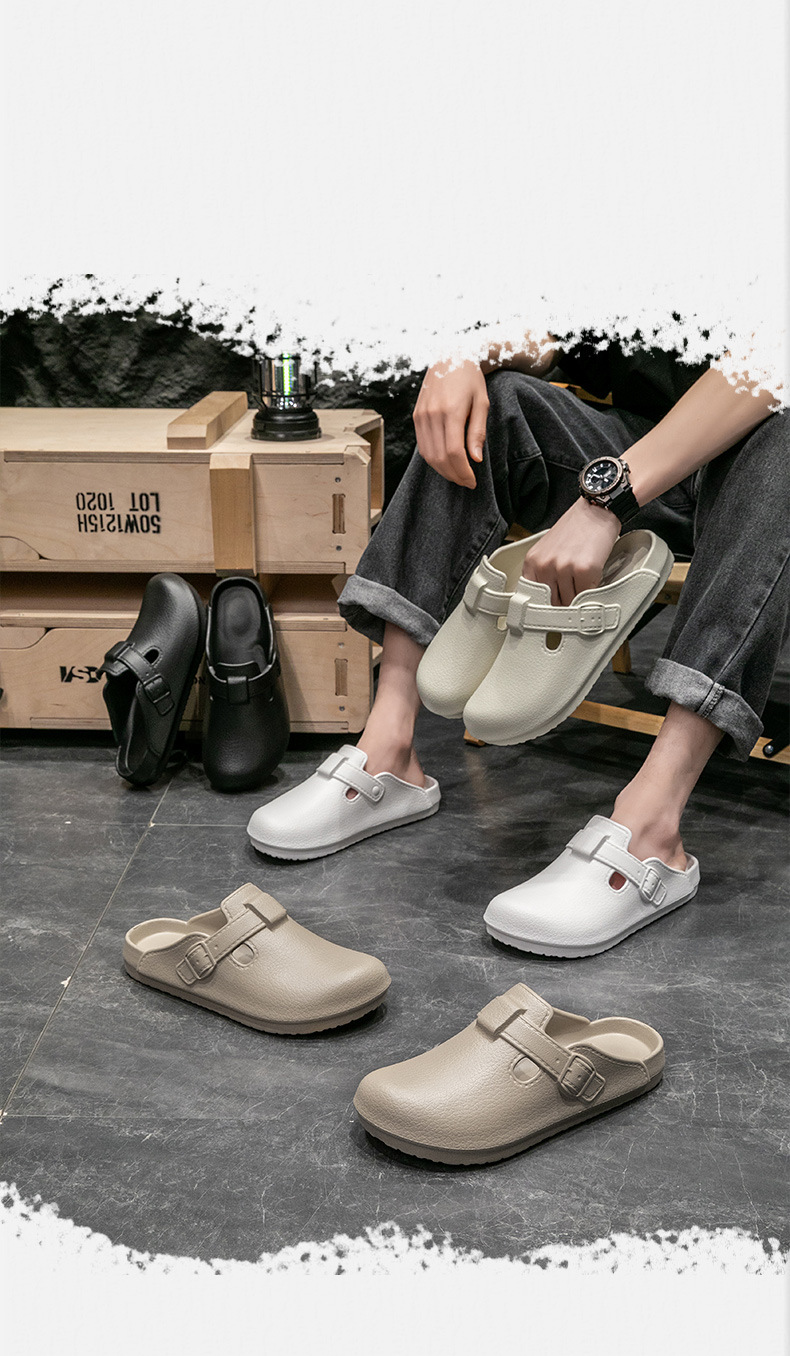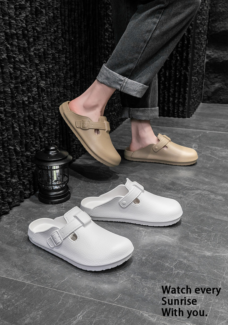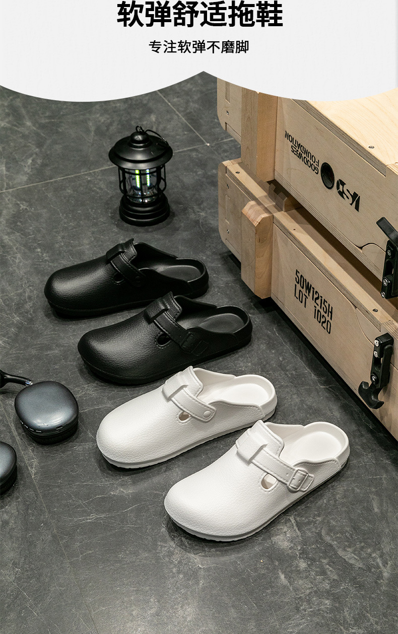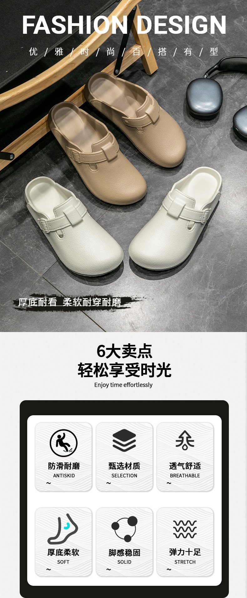 駱步勃肯鞋女夏外穿新款厚底防滑防水踩屎感包頭拖戶外軟底靜音穆