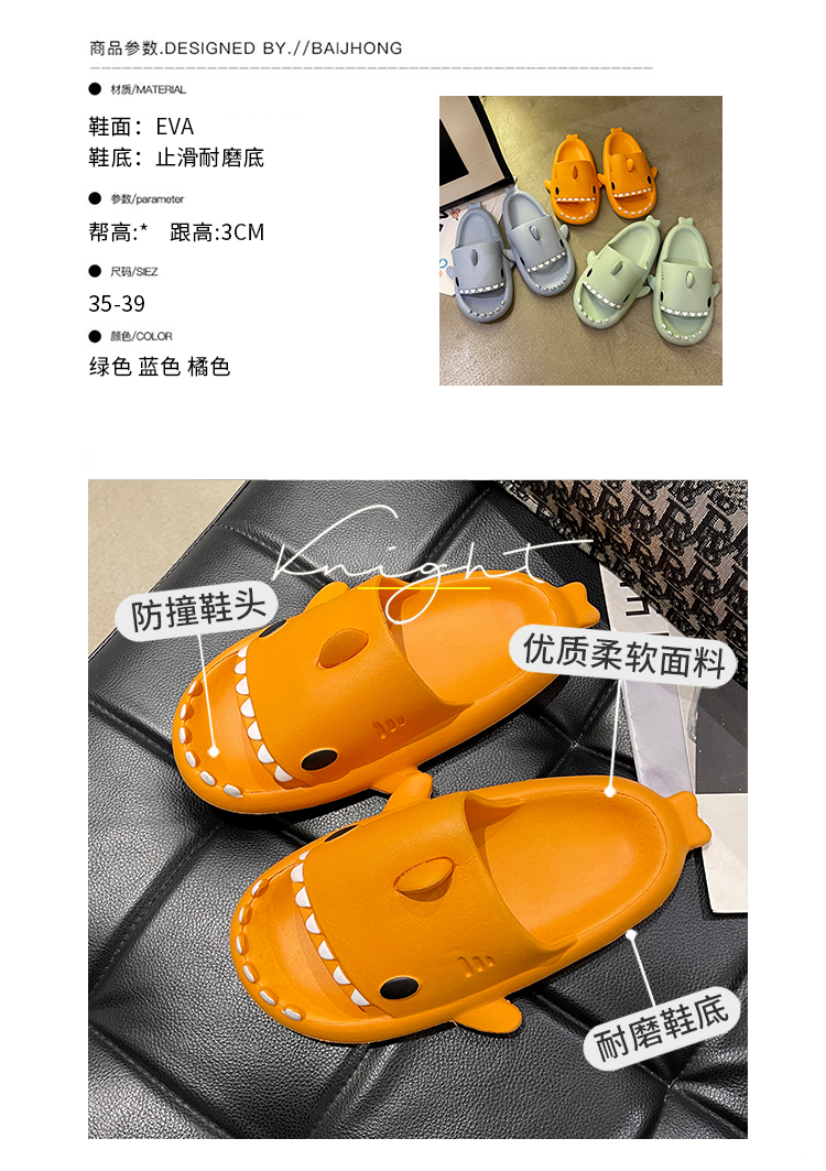 鯊魚拖鞋女夏季ins潮外穿踩屎感厚底防滑情侶室內居家可愛涼拖鞋