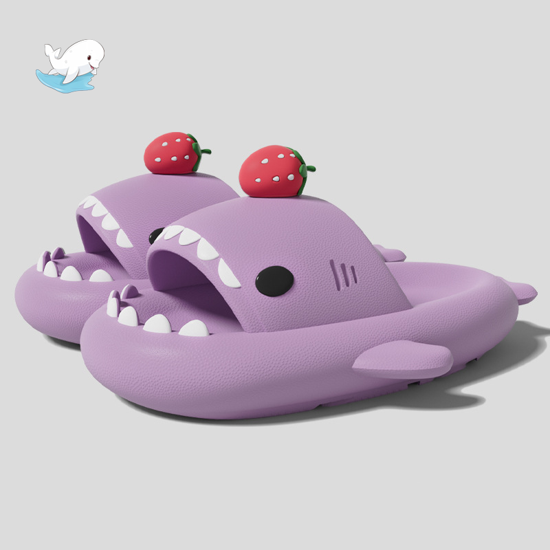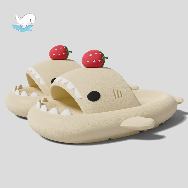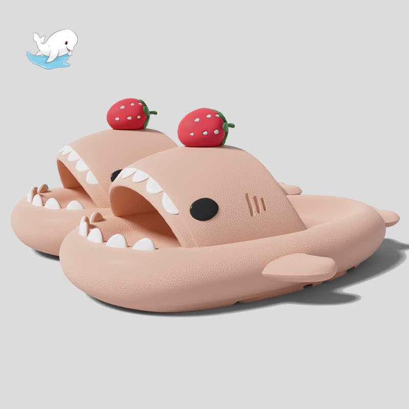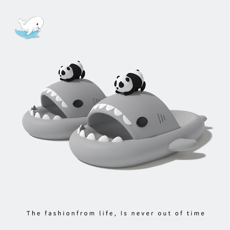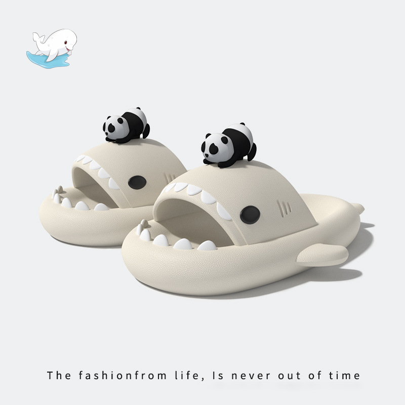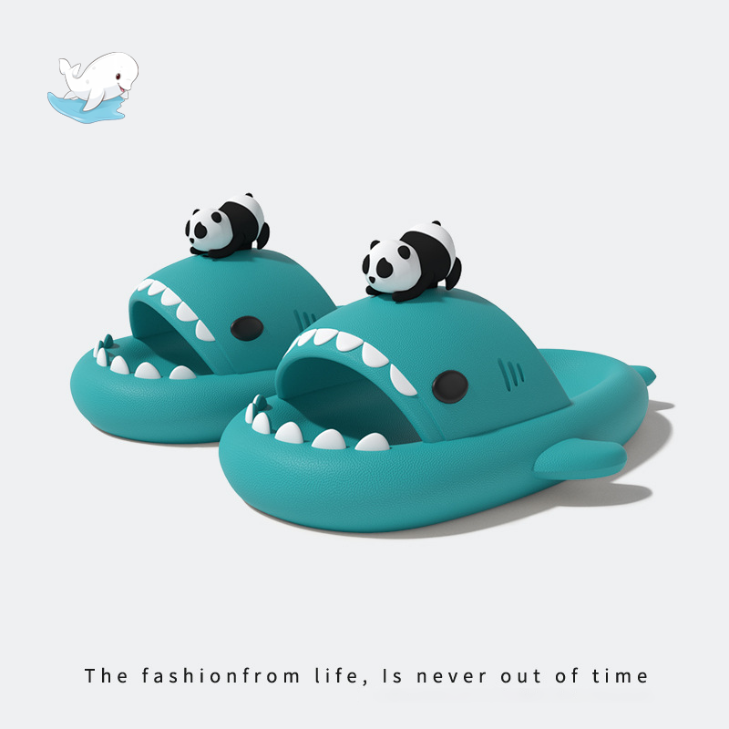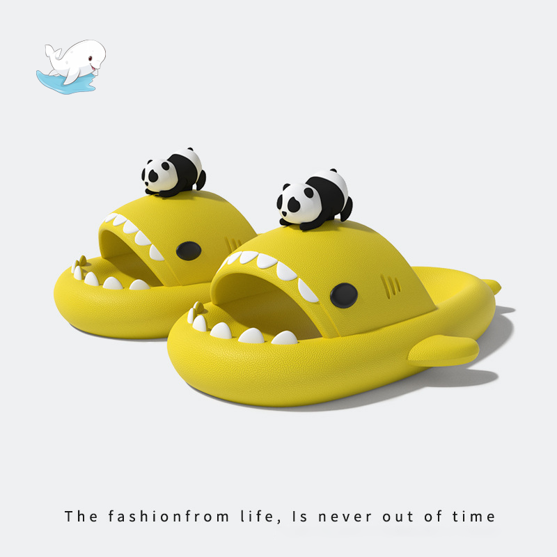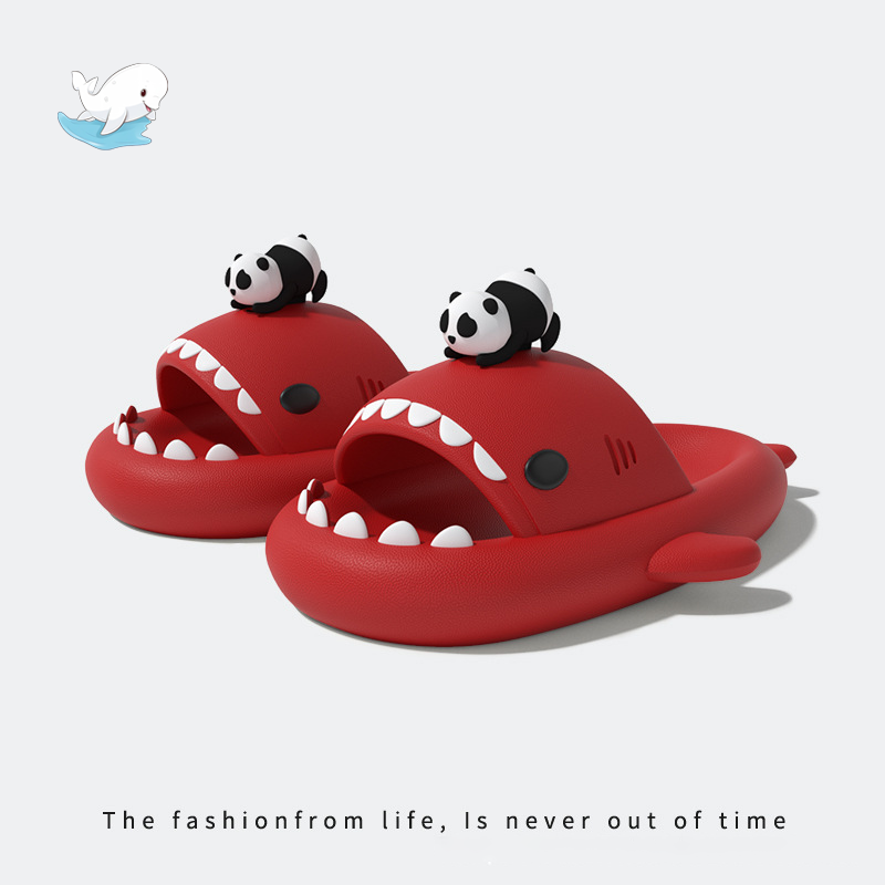 小熊貓鯊魚拖鞋草莓男女情侶防滑加厚抗菌室內外穿洗澡軟底涼拖鞋