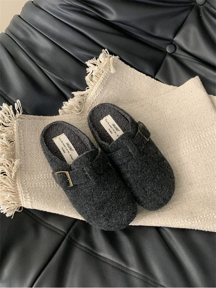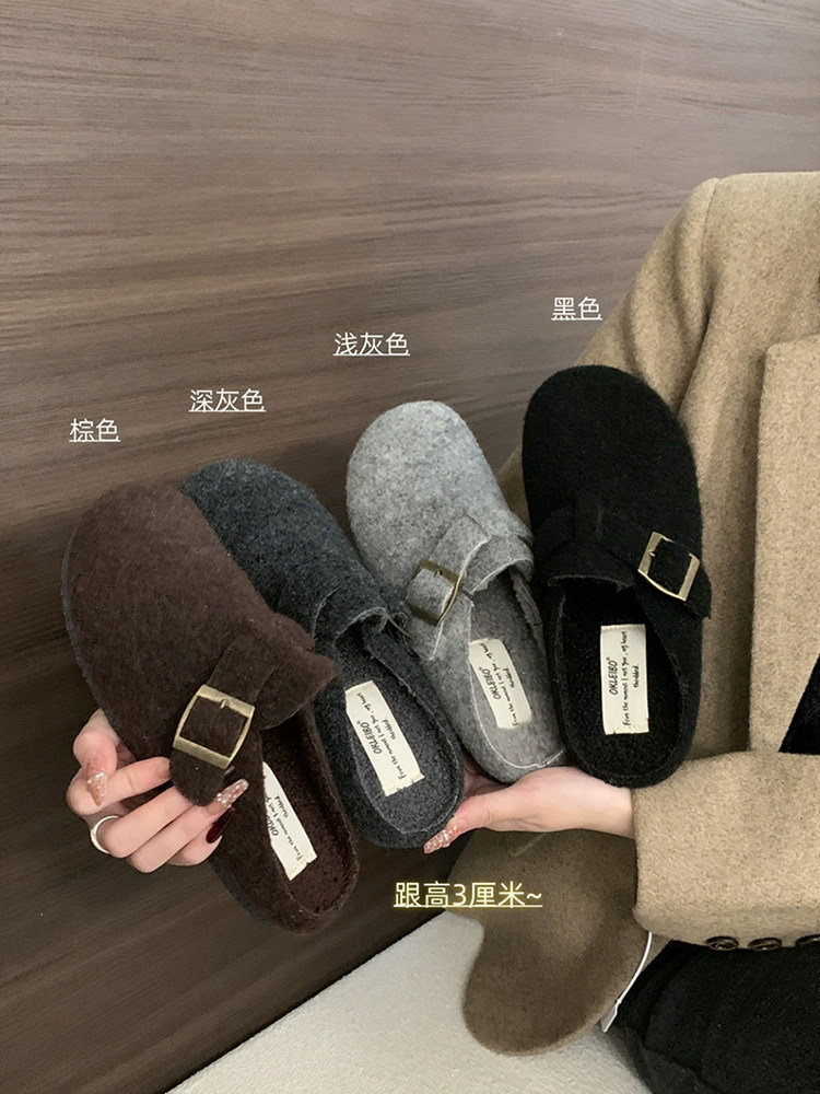 厚底灰色勃肯鞋包頭毛毛拖鞋女外穿2025新款秋冬一腳蹬半拖棉拖鞋