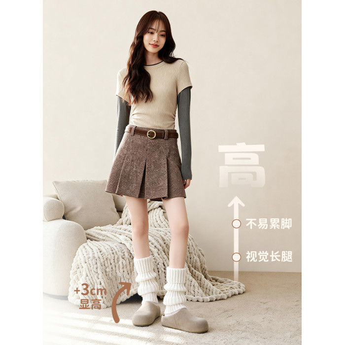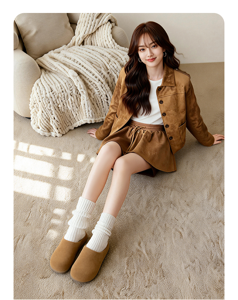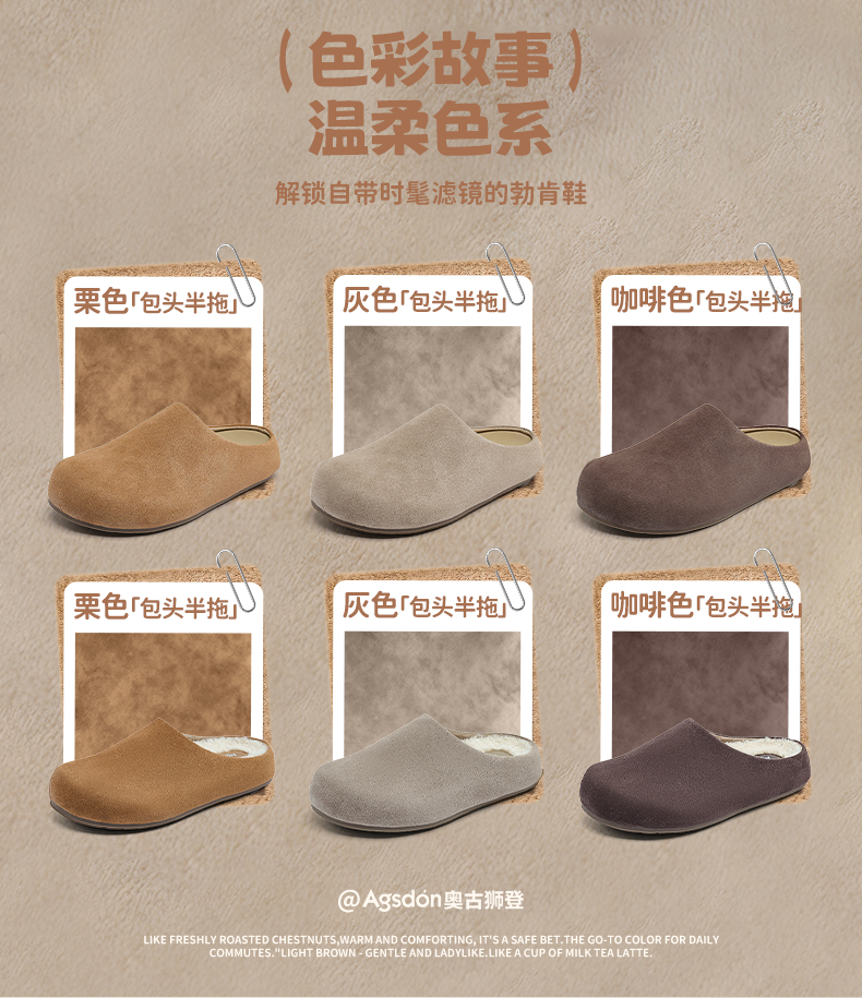 厚底加絨勃肯鞋女2025新款冬季春一腳蹬包頭半拖棉鞋子毛絨雪地靴