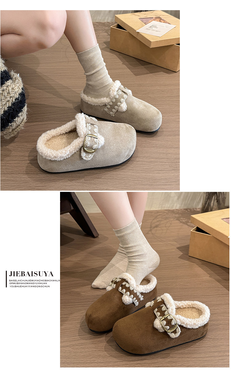 毛毛鞋厚底內增高加絨勃肯鞋包頭半拖鞋女款2025新款秋冬季棉拖鞋