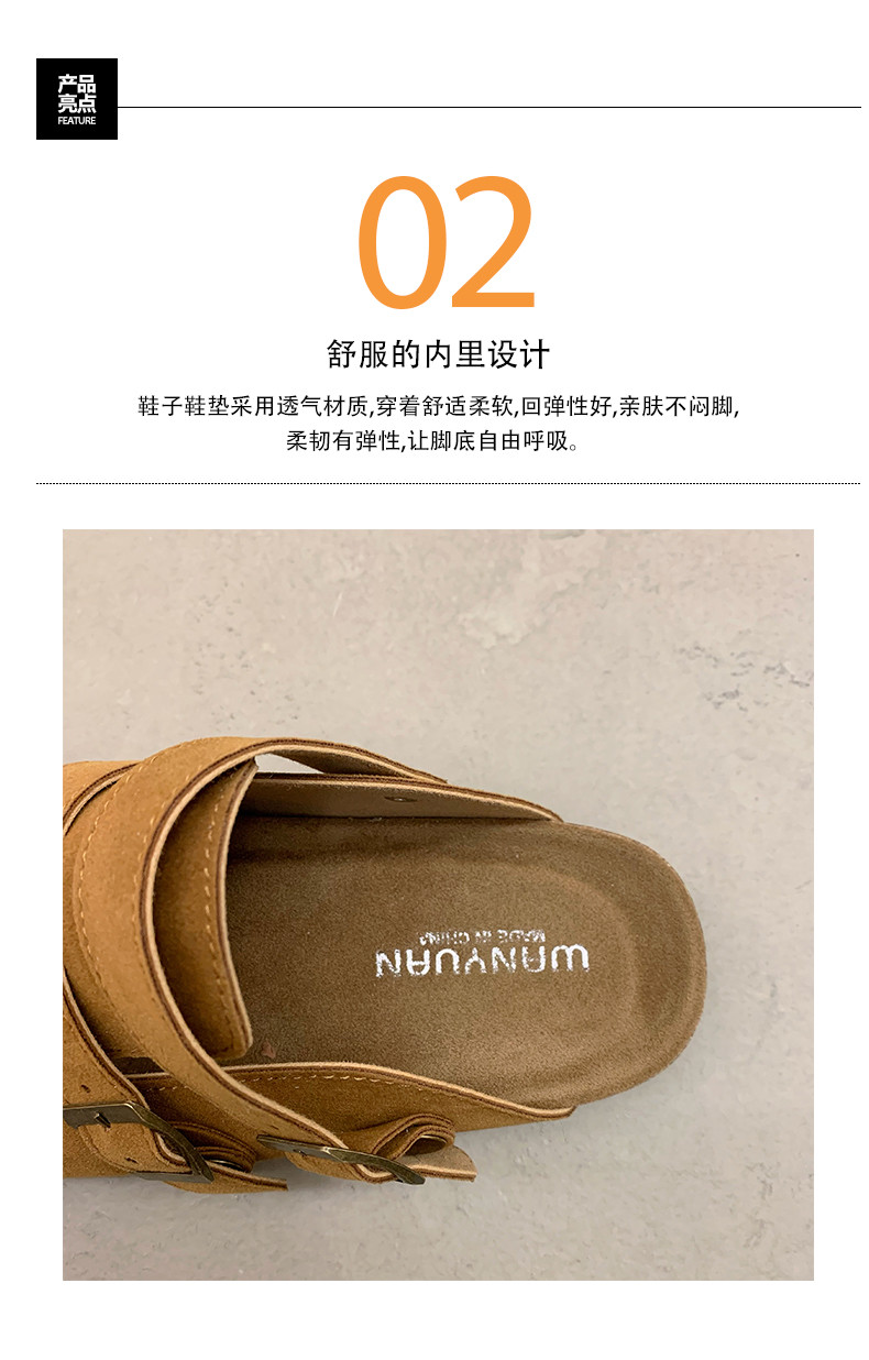 復古休閒勃肯鞋女鞋2024新款夏季外穿軟木厚底兩穿涼鞋包頭半拖鞋