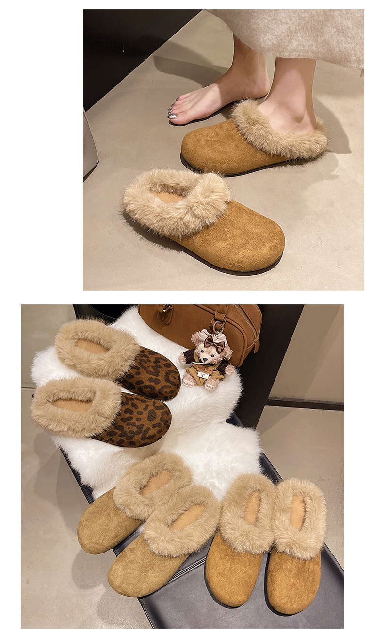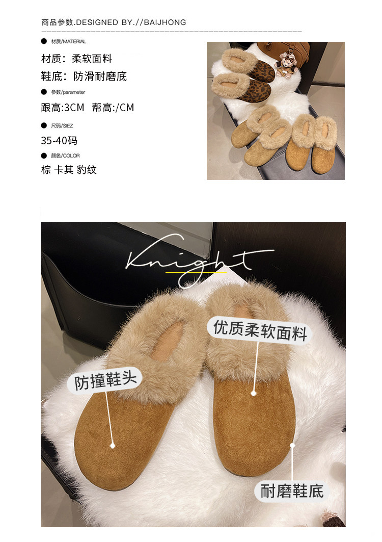巨好看厚底加絨勃肯鞋包頭半拖鞋女外穿2025新款秋冬天毛毛棉拖鞋
