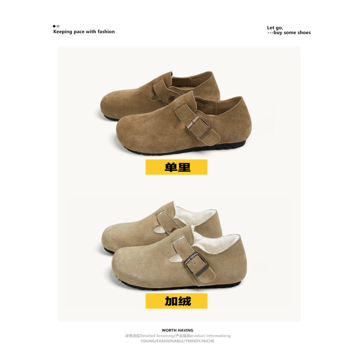 真皮全包勃肯鞋女2025新款春秋內增高大碼男女同款情侶加絨博肯鞋