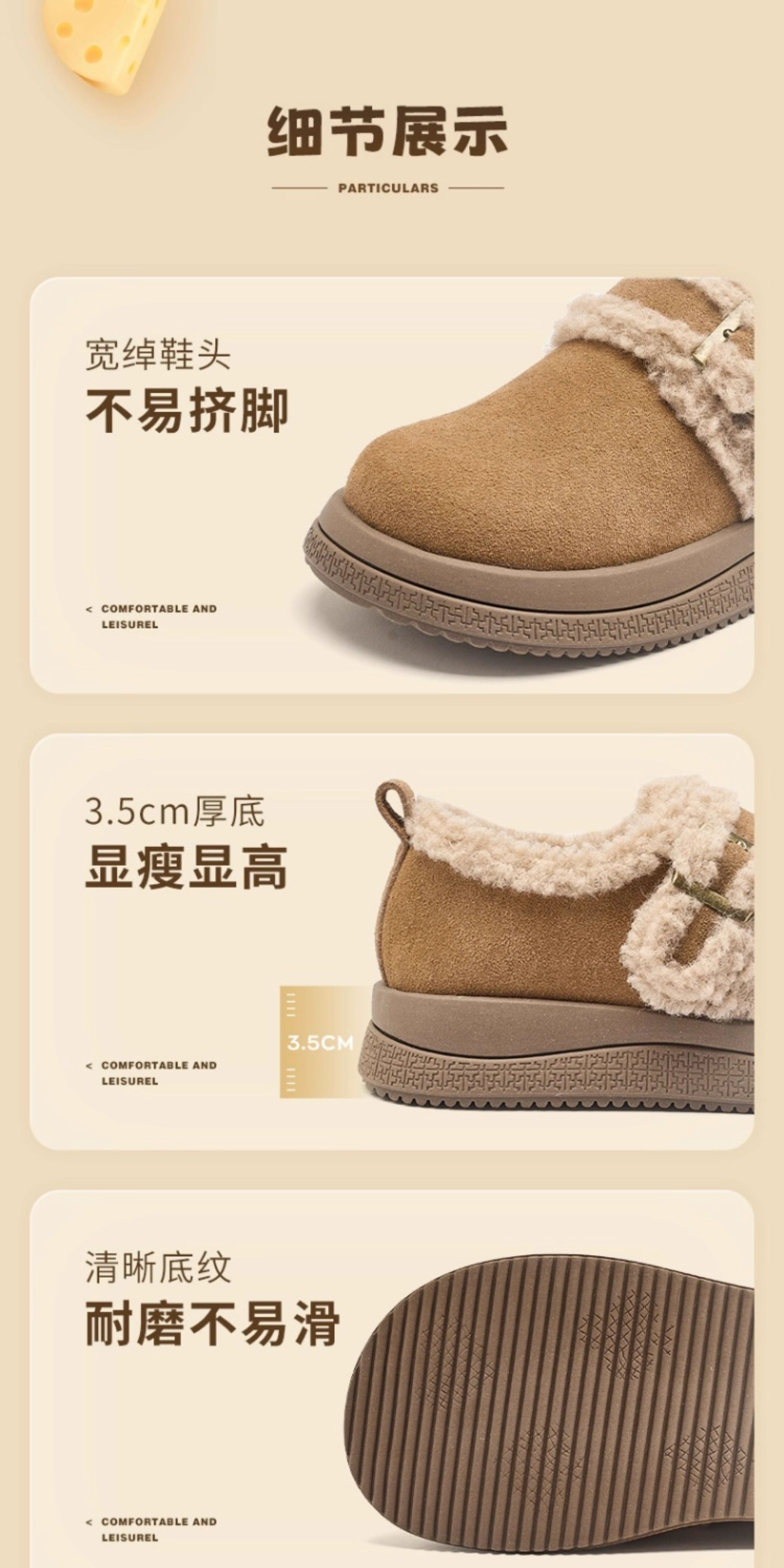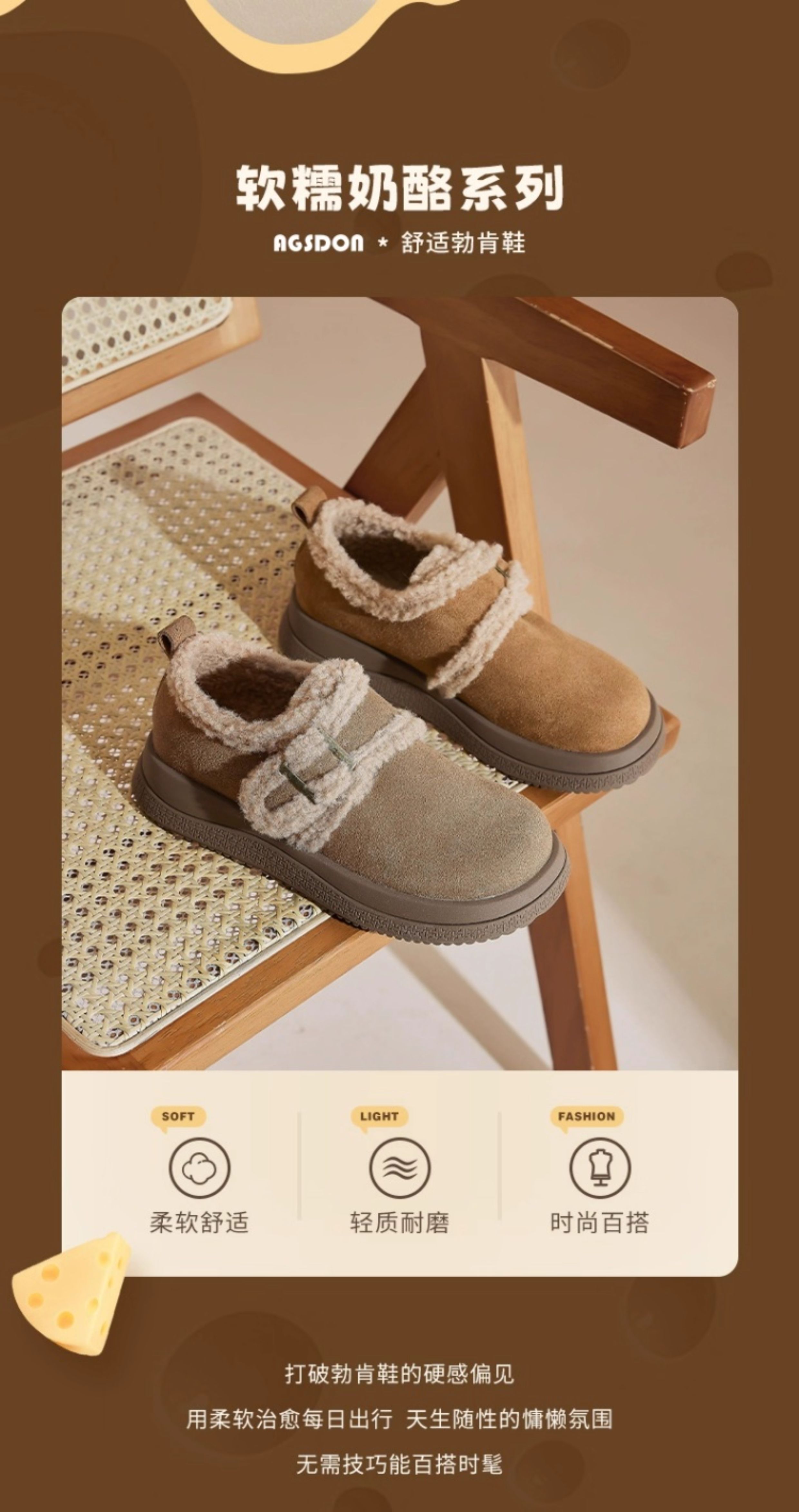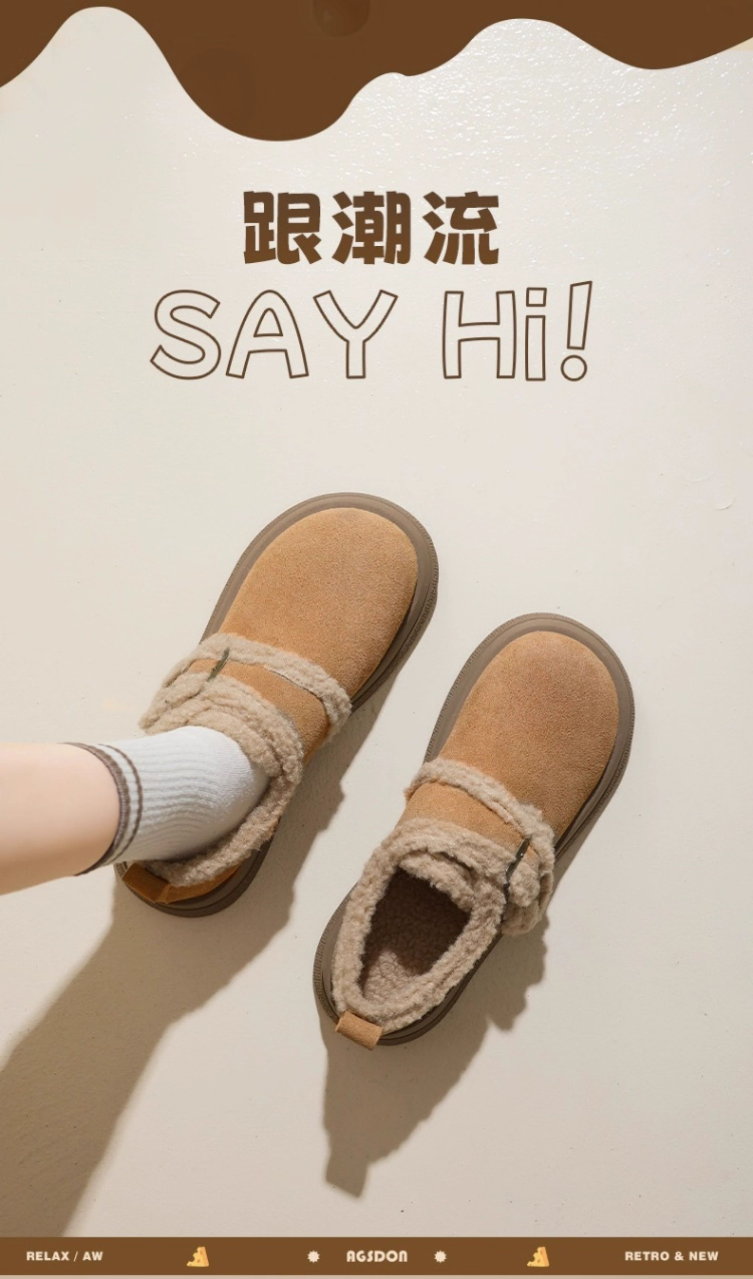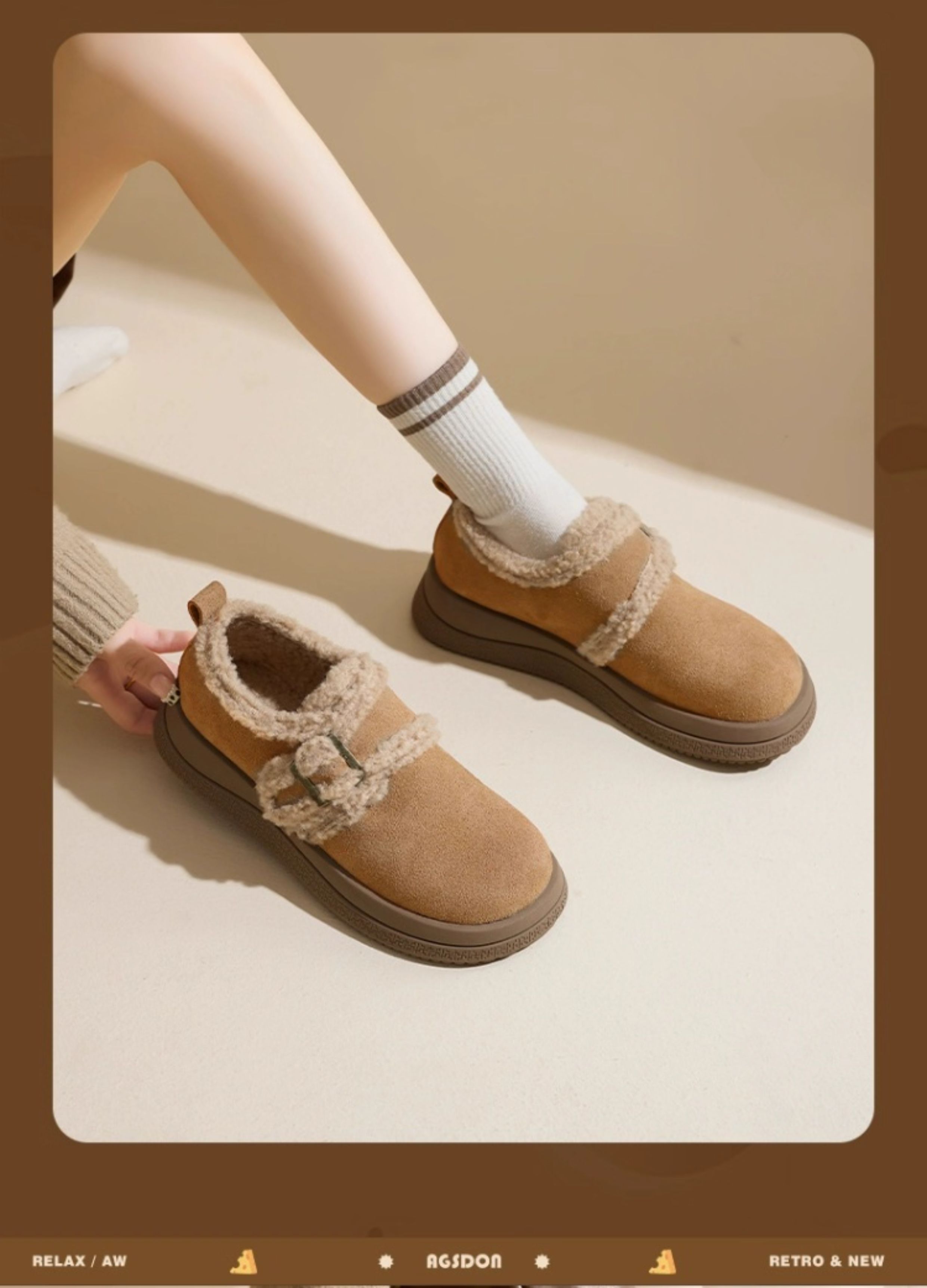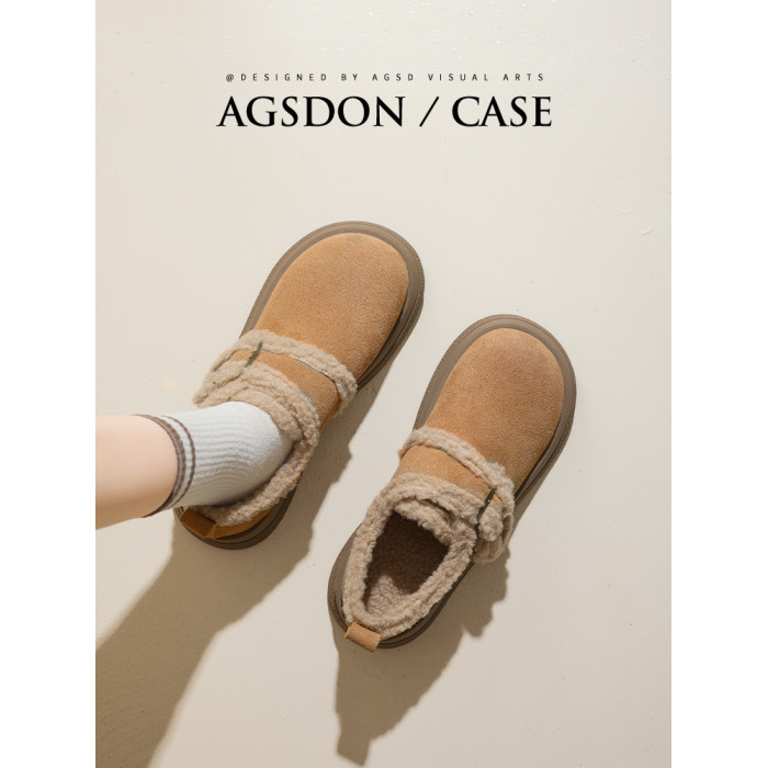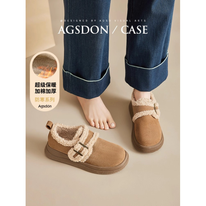 奧古獅登加絨加厚勃肯鞋女2025新款冬季厚底毛毛棉鞋子保暖雪地靴