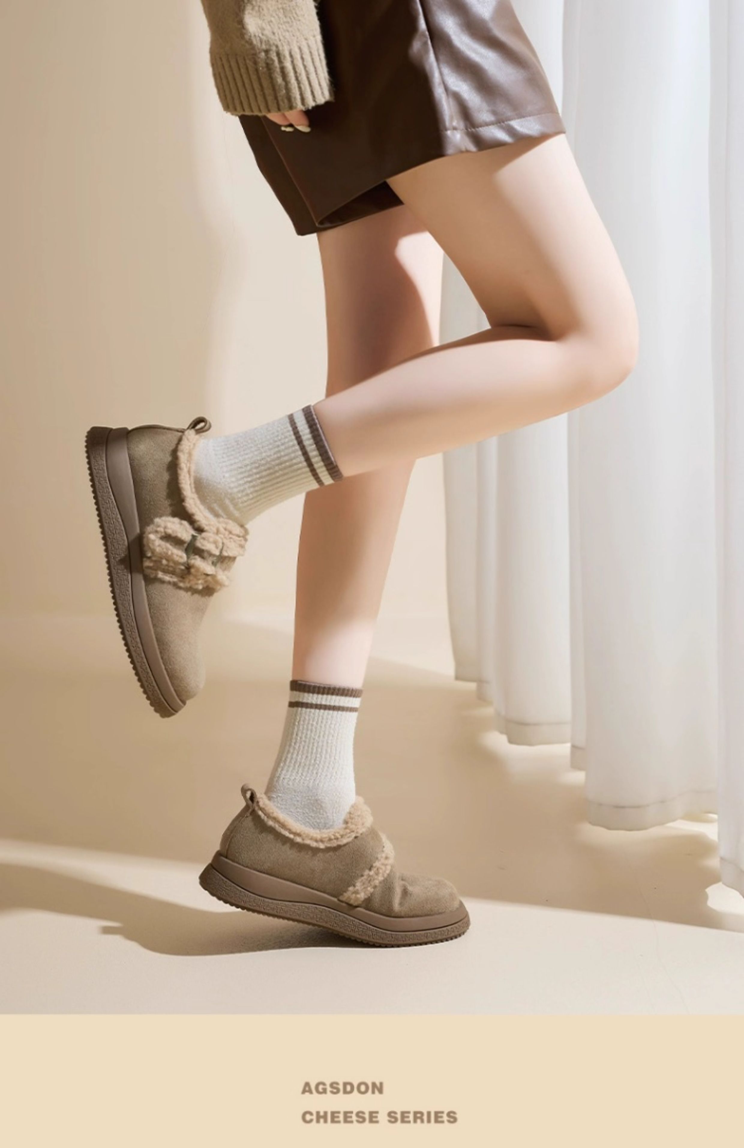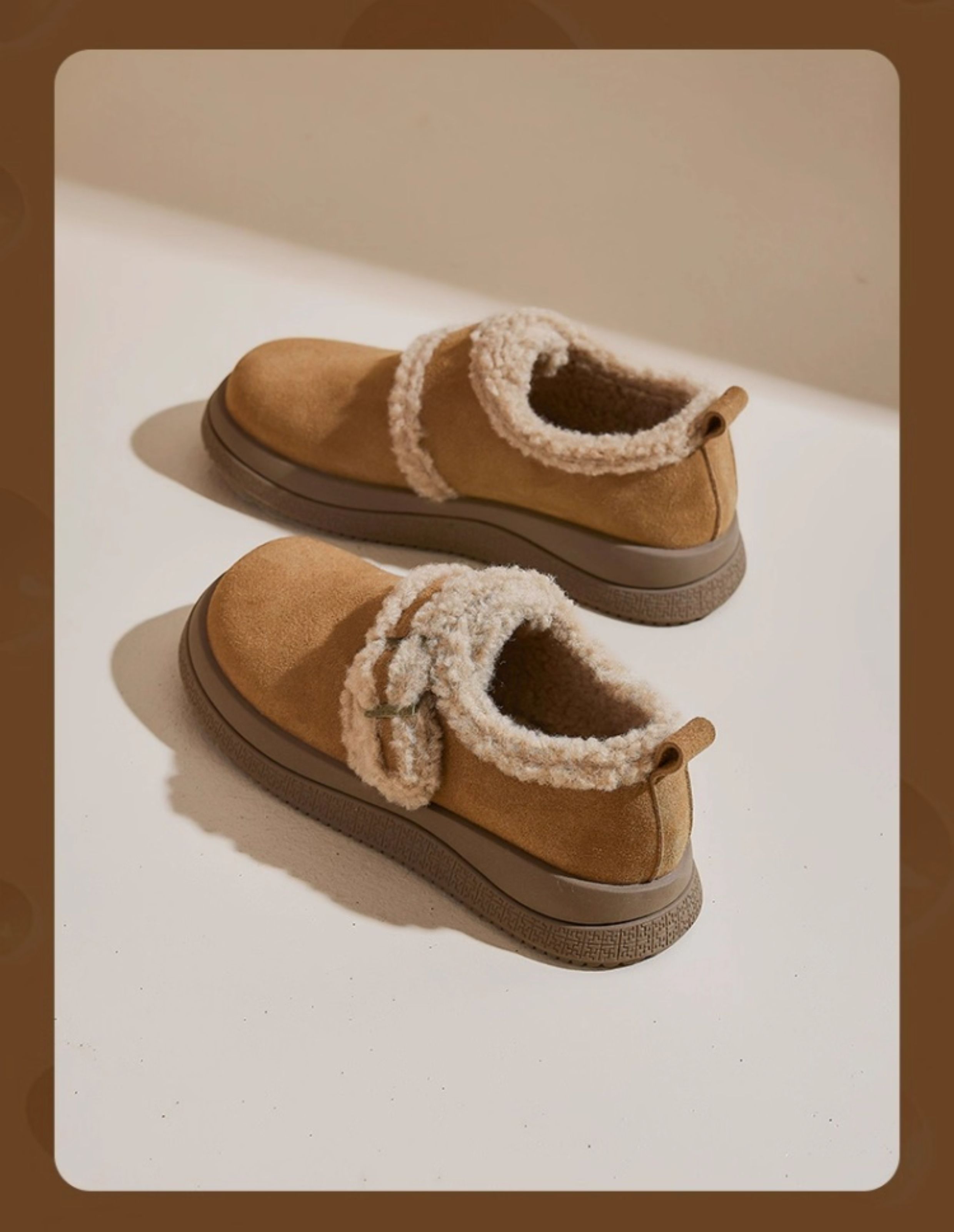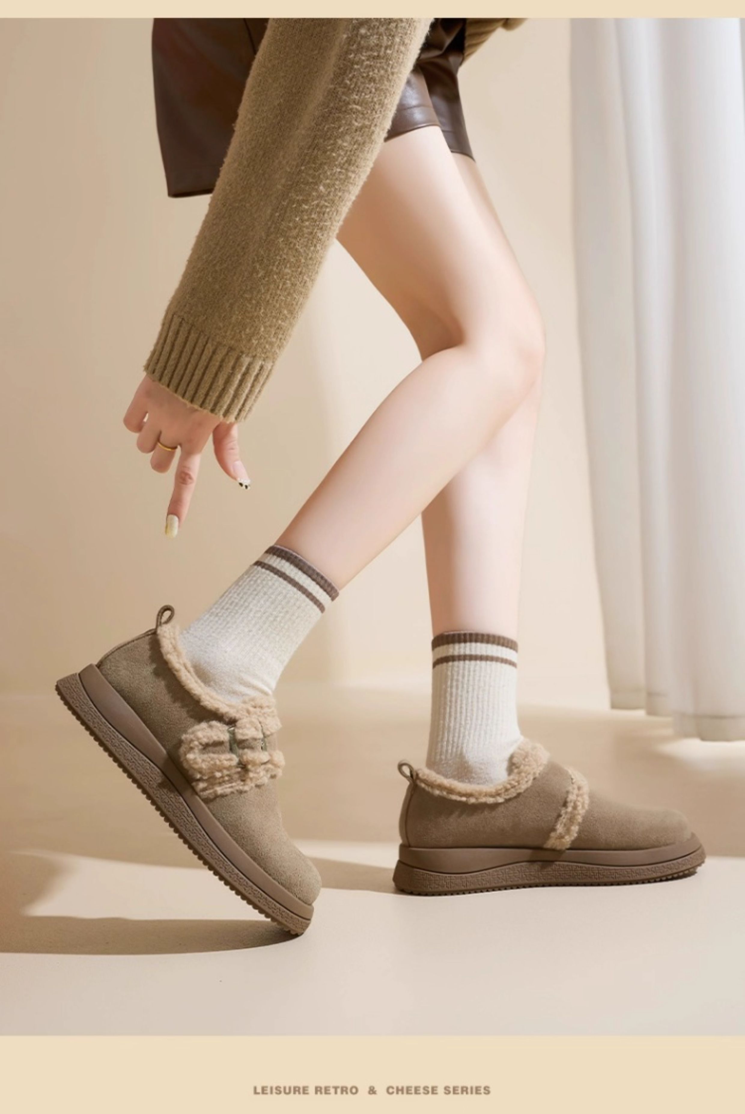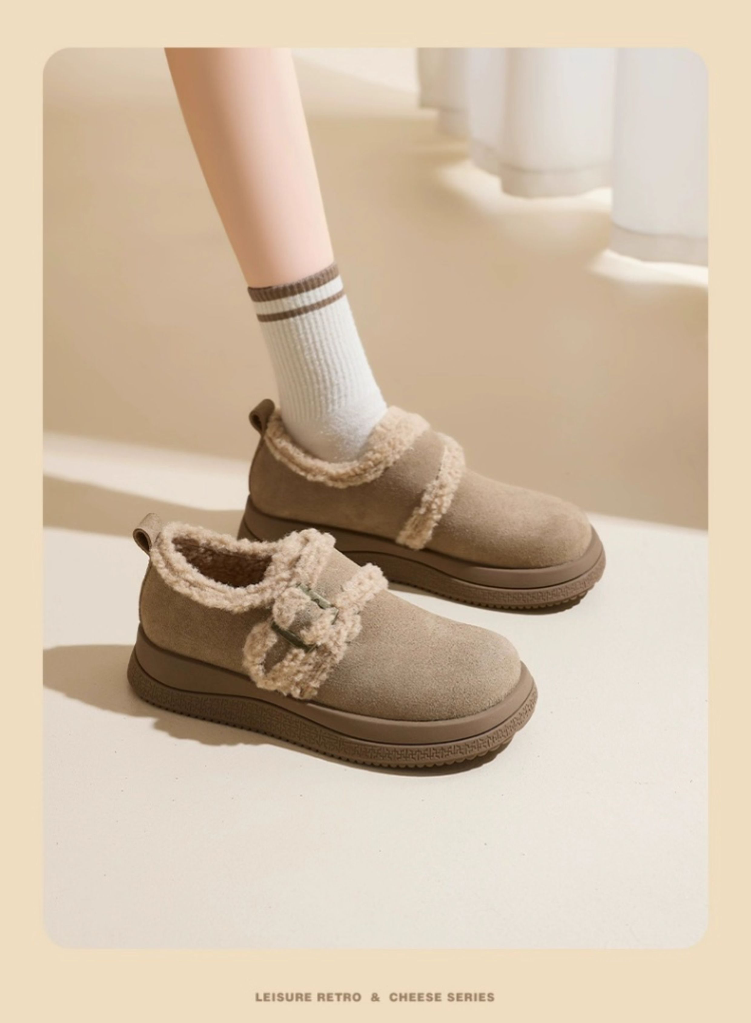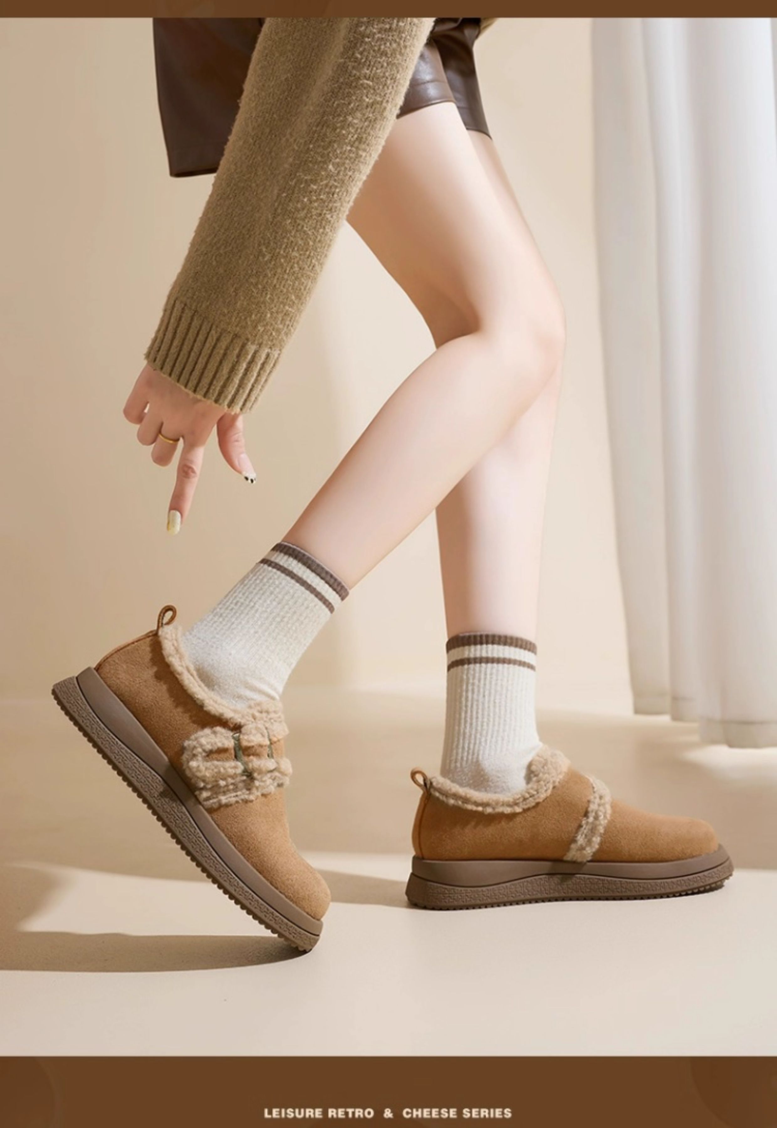 奧古獅登加絨加厚勃肯鞋女2025新款冬季厚底毛毛棉鞋子保暖雪地靴