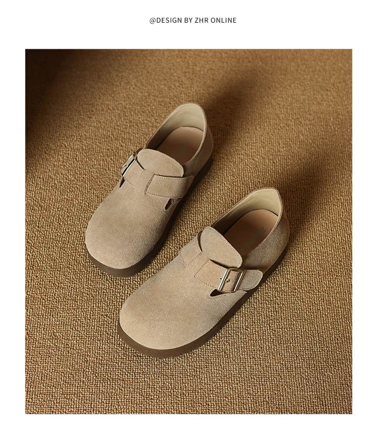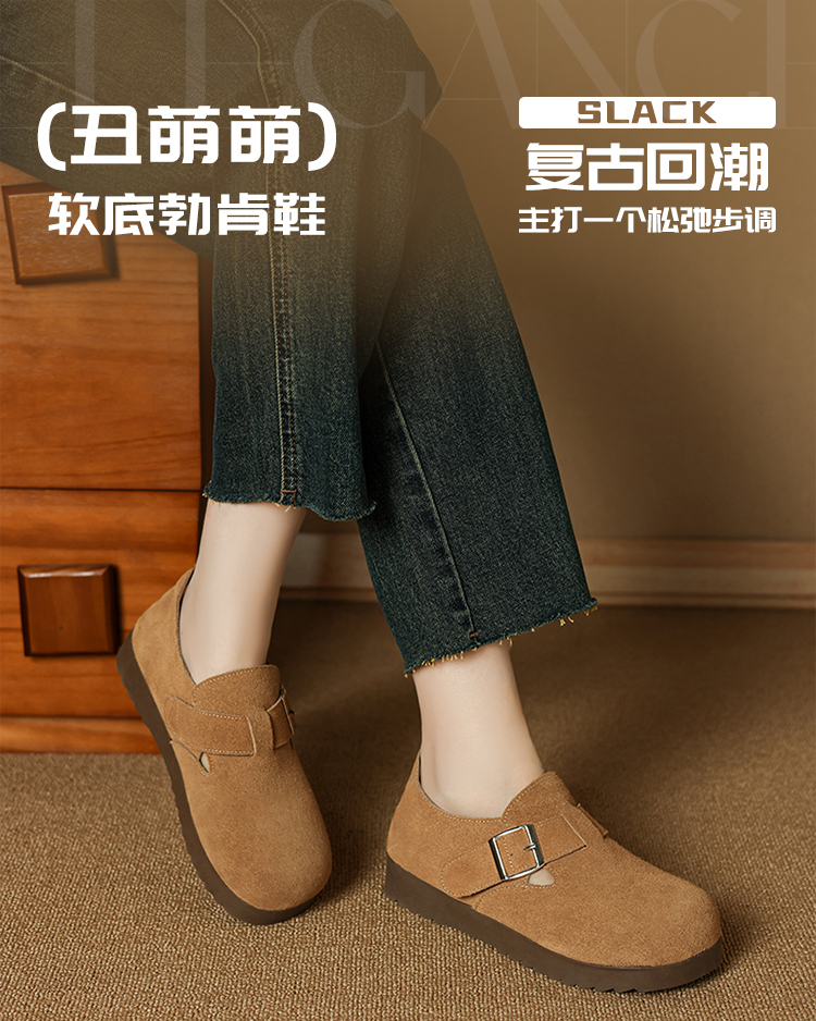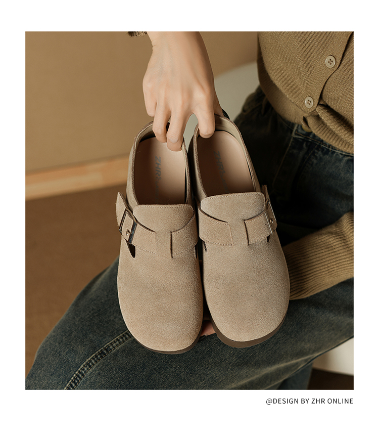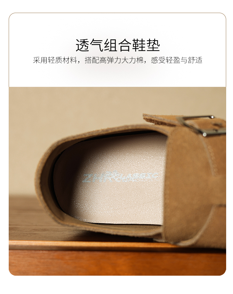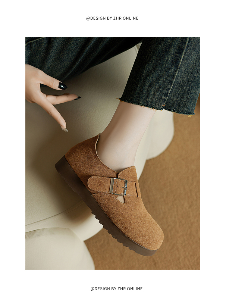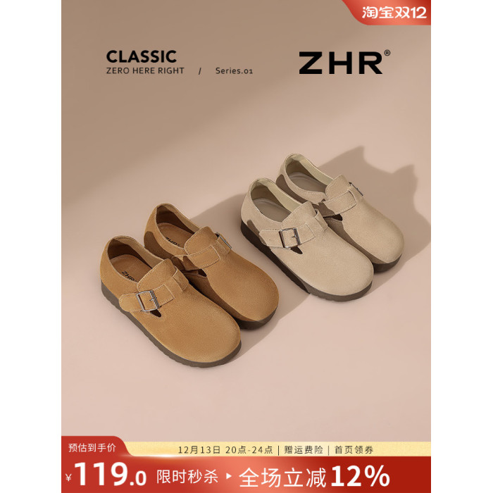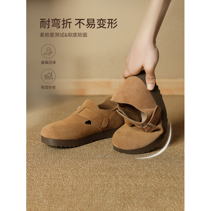 ZHR真皮勃肯鞋女款2025秋冬新款復古超火軟底博肯鞋單鞋全包厚底