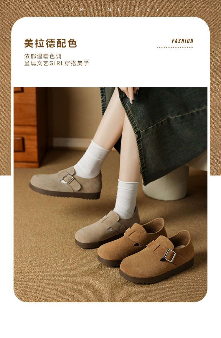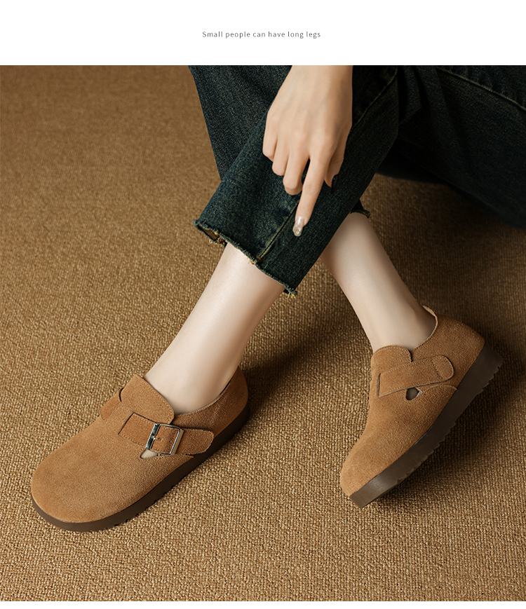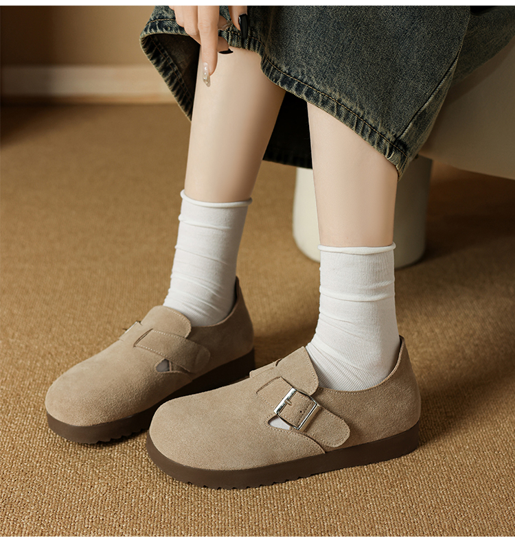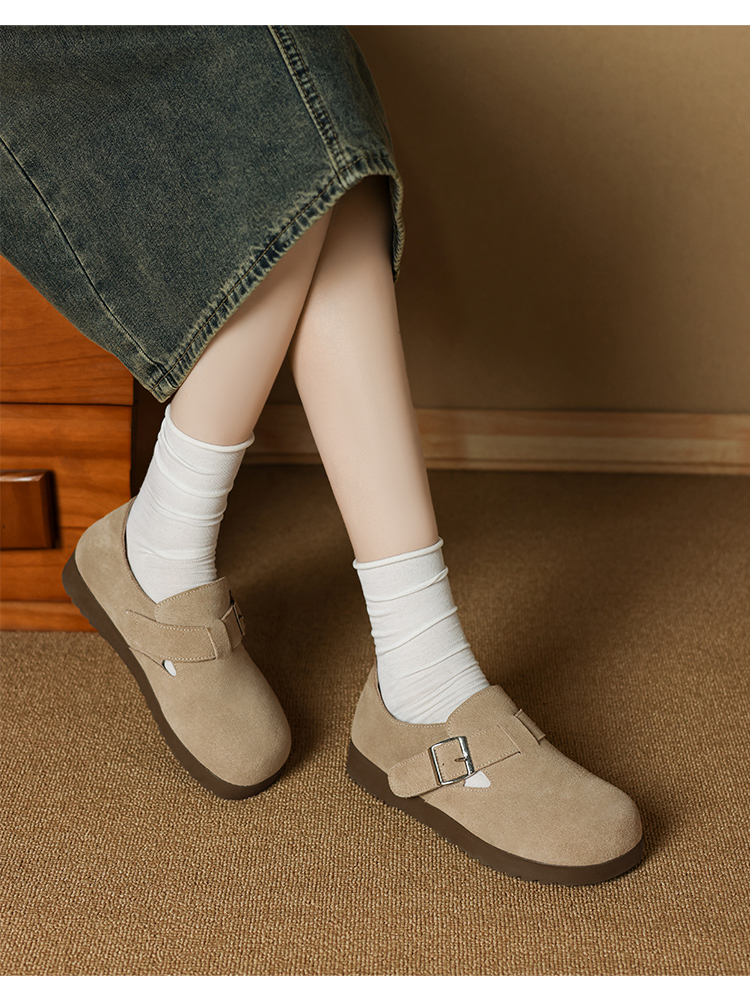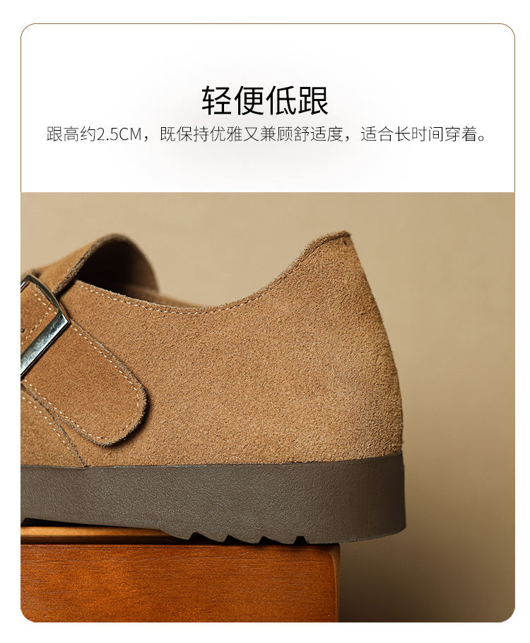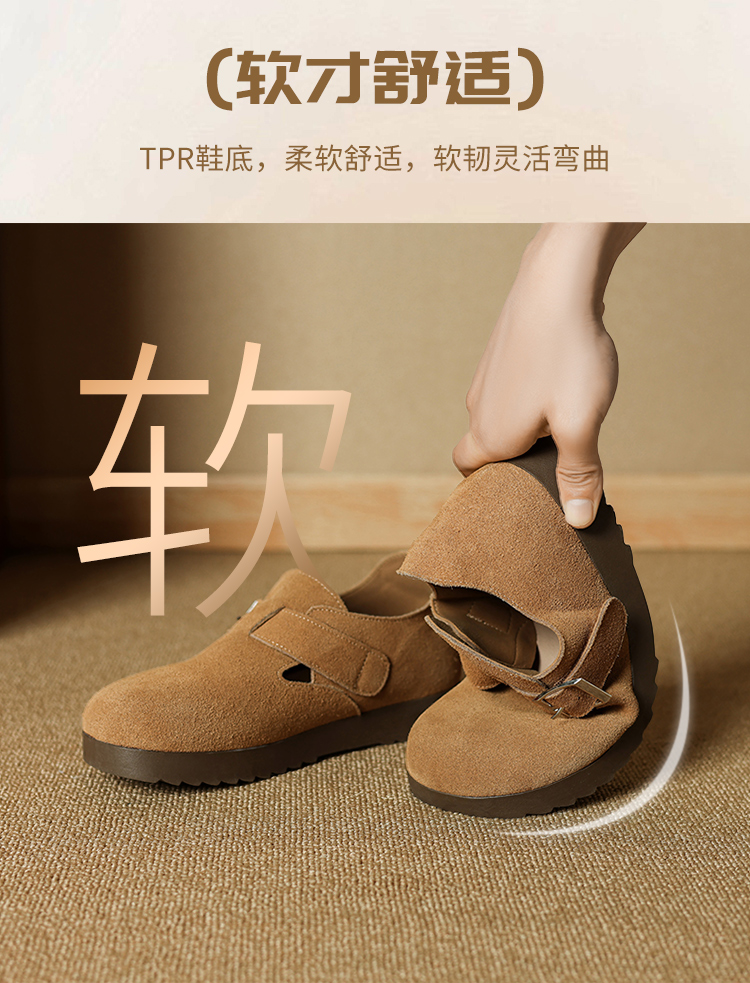 ZHR真皮勃肯鞋女款2025秋冬新款復古超火軟底博肯鞋單鞋全包厚底