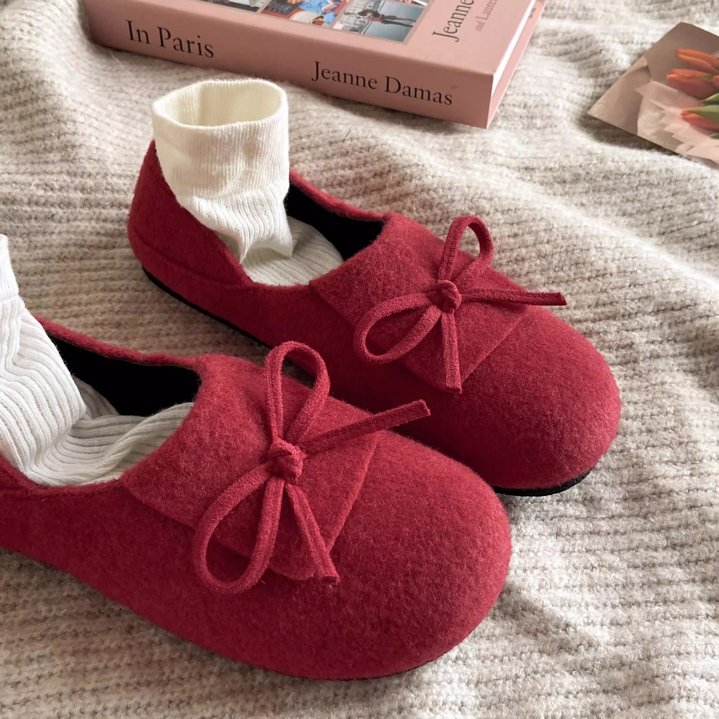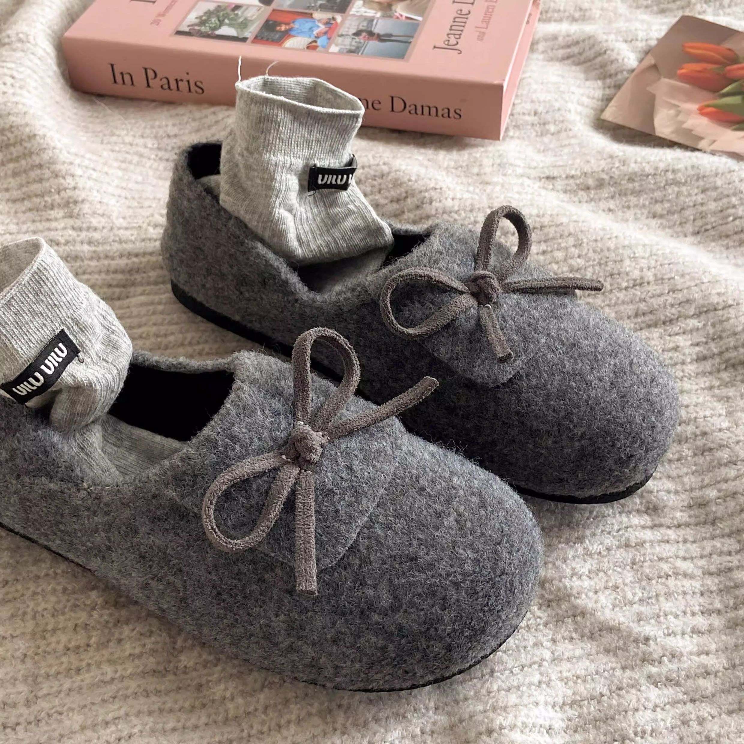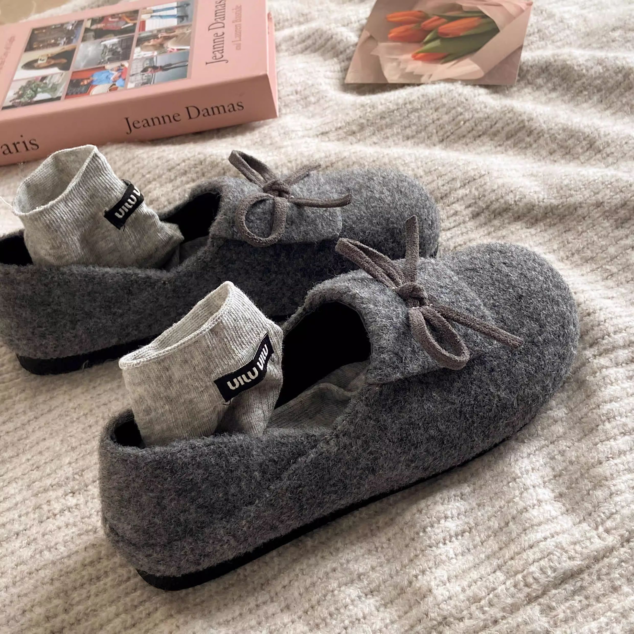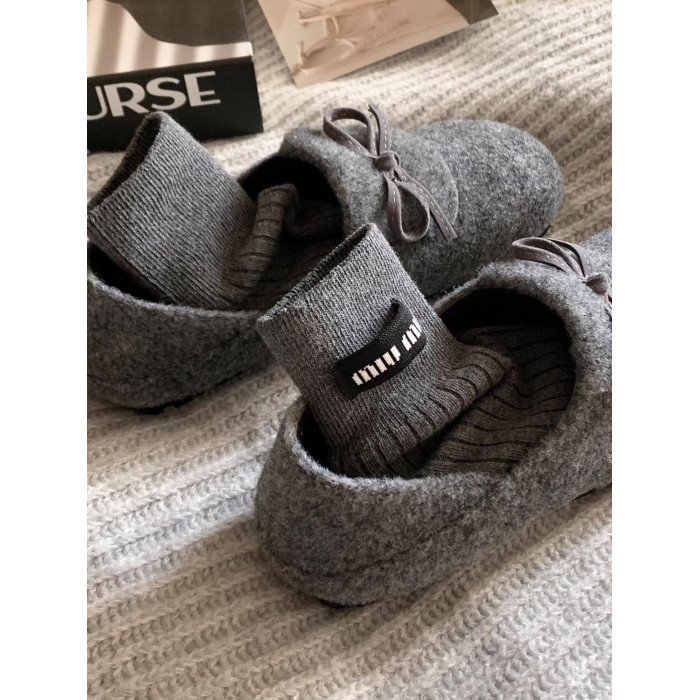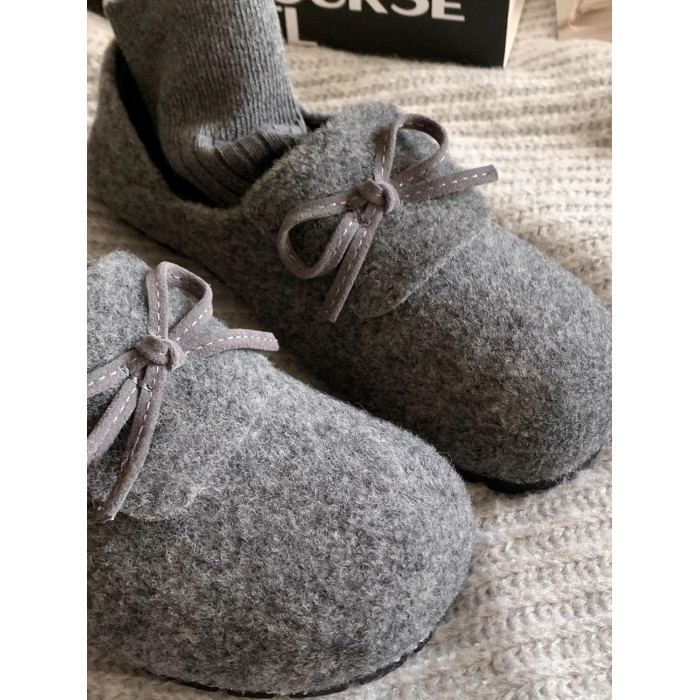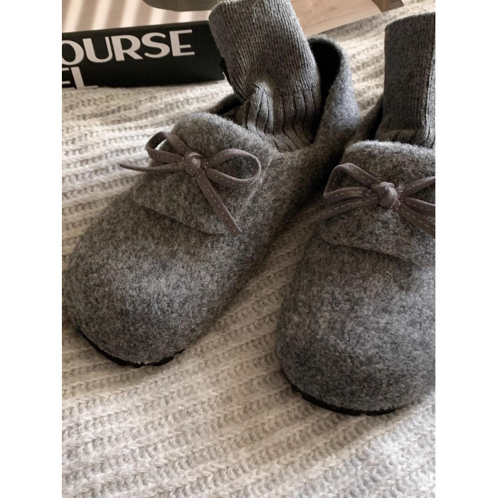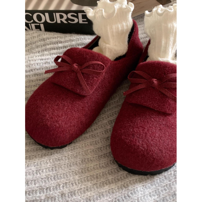 秋冬保護色~松弛感滿滿文藝復古毛呢勃肯鞋女2025加絨一腳蹬單鞋
