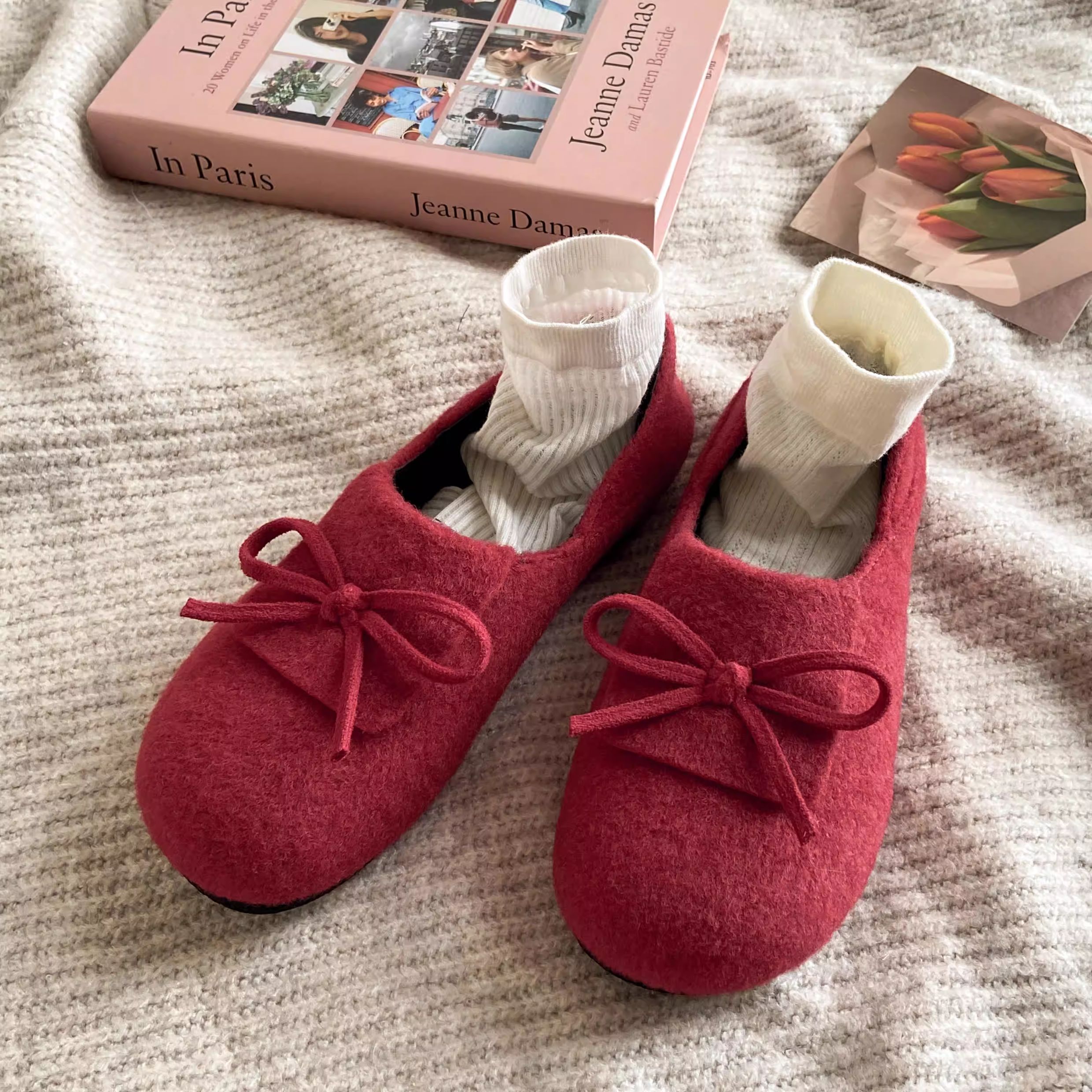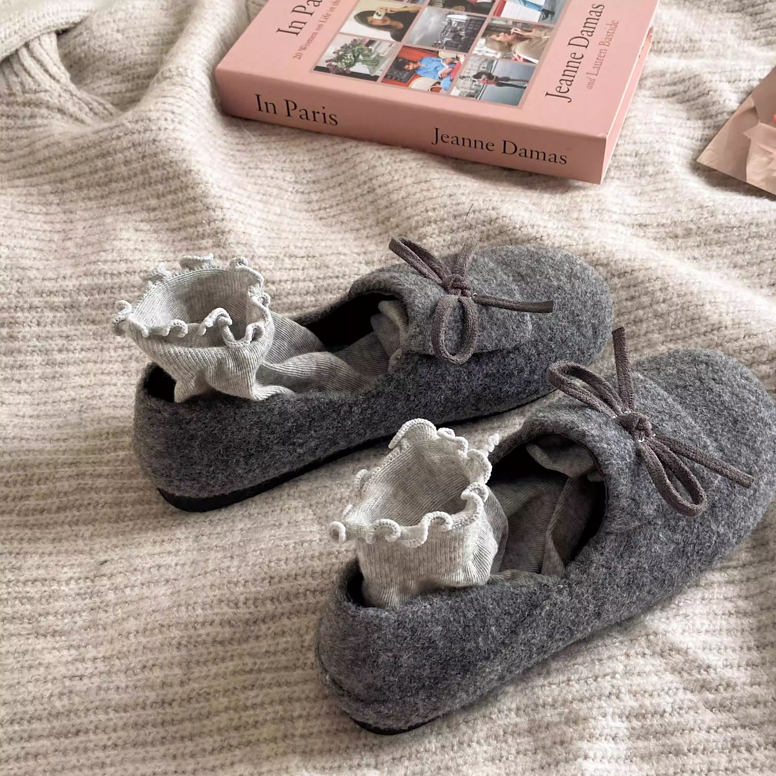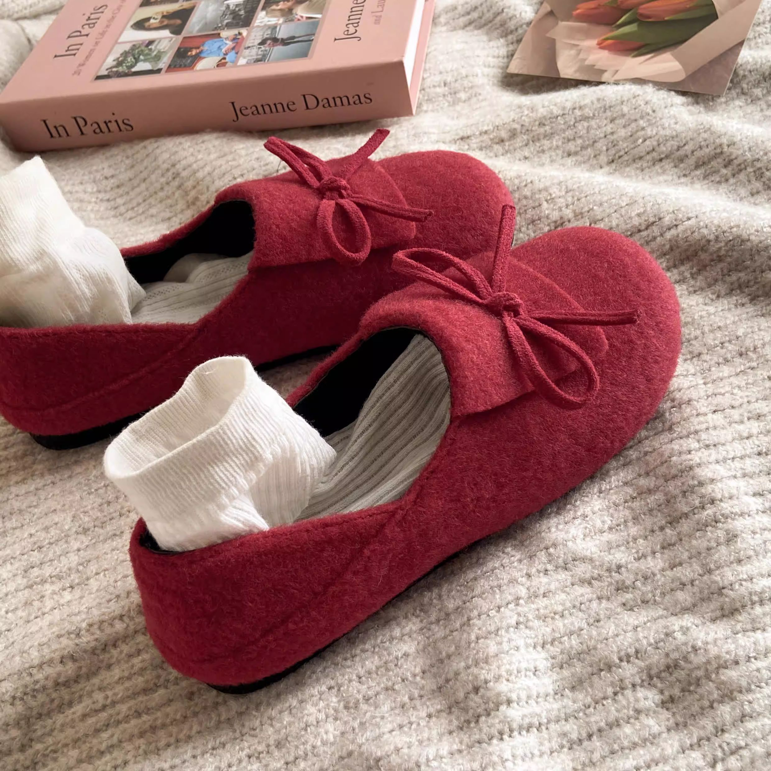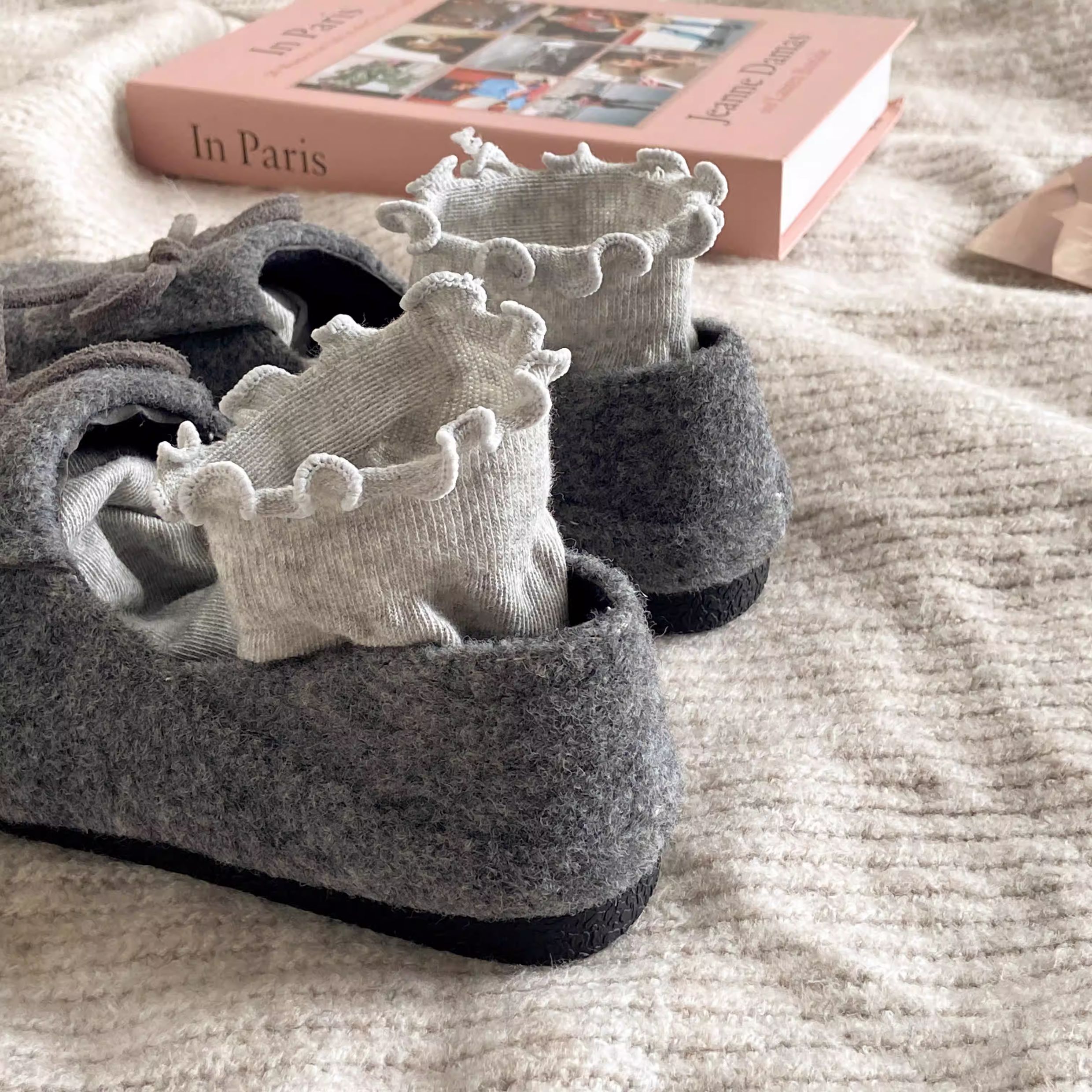 秋冬保護色~松弛感滿滿文藝復古毛呢勃肯鞋女2025加絨一腳蹬單鞋