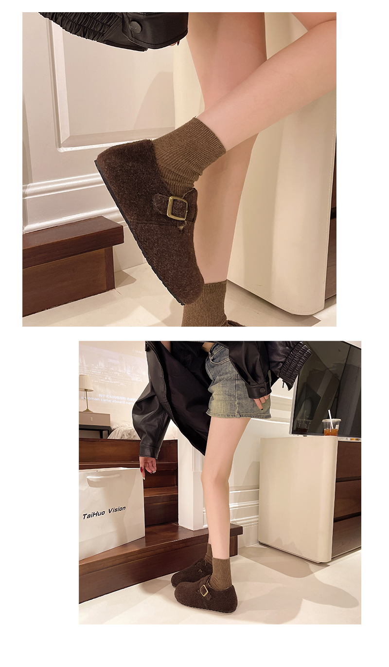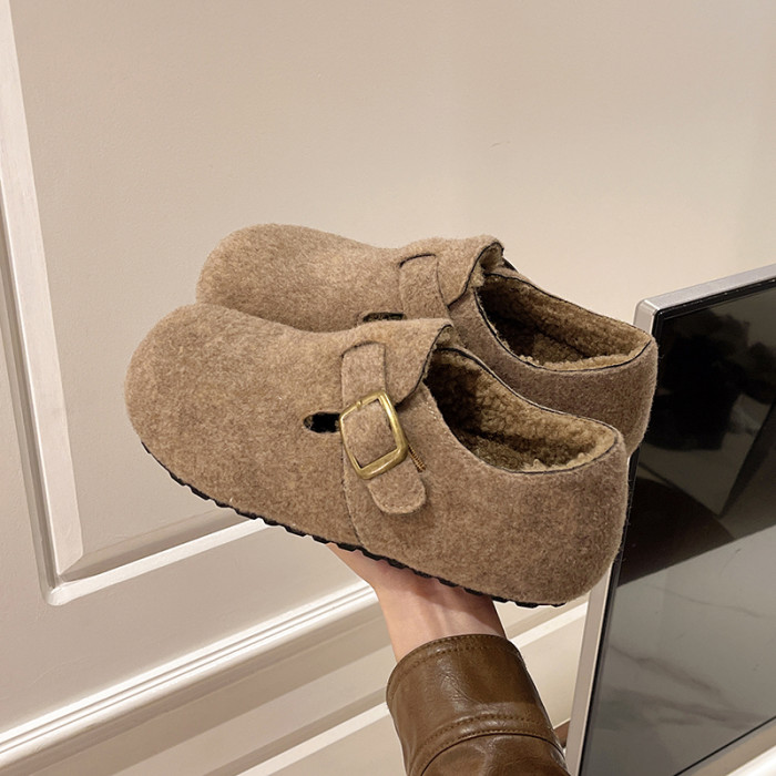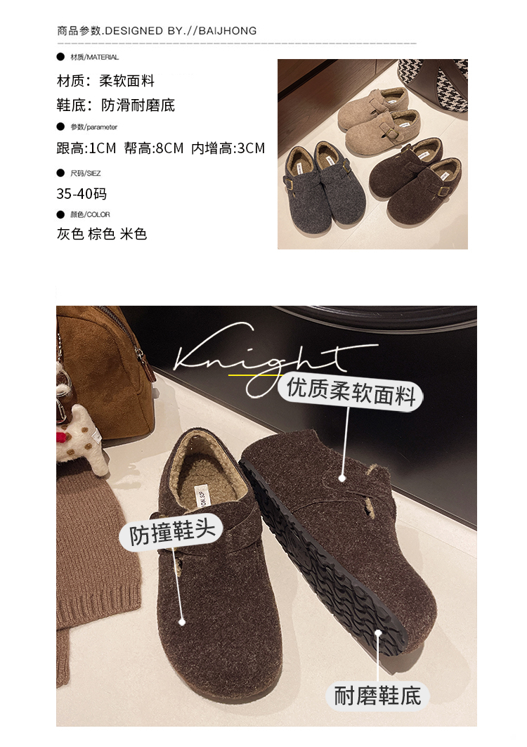 內增高厚底加絨勃肯鞋一腳蹬毛毛鞋2025新款秋冬博肯單鞋豆豆棉鞋