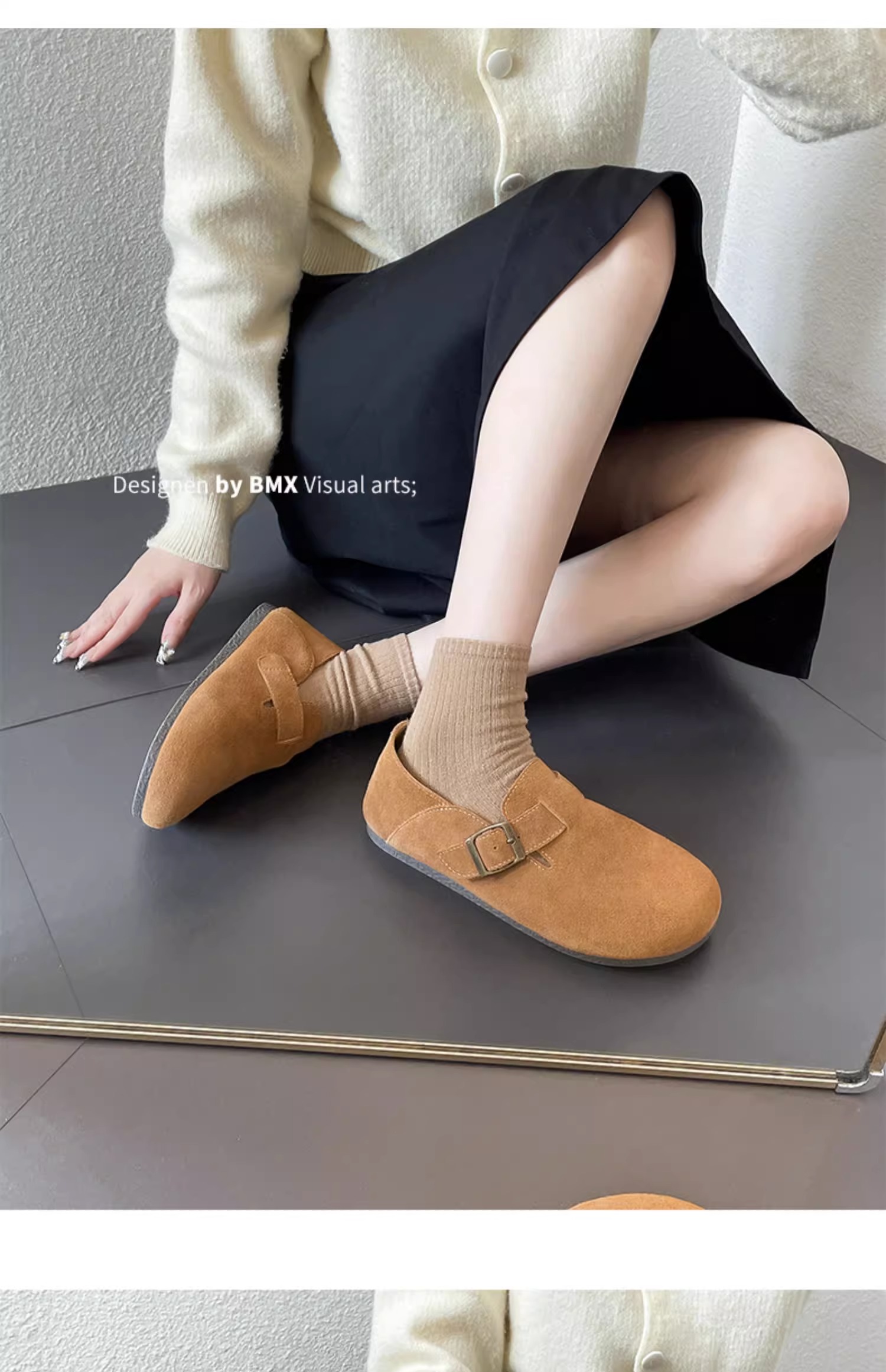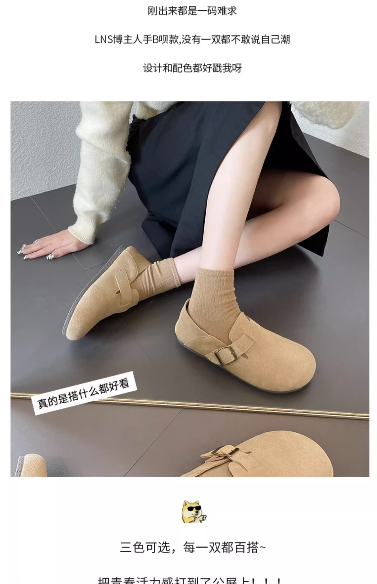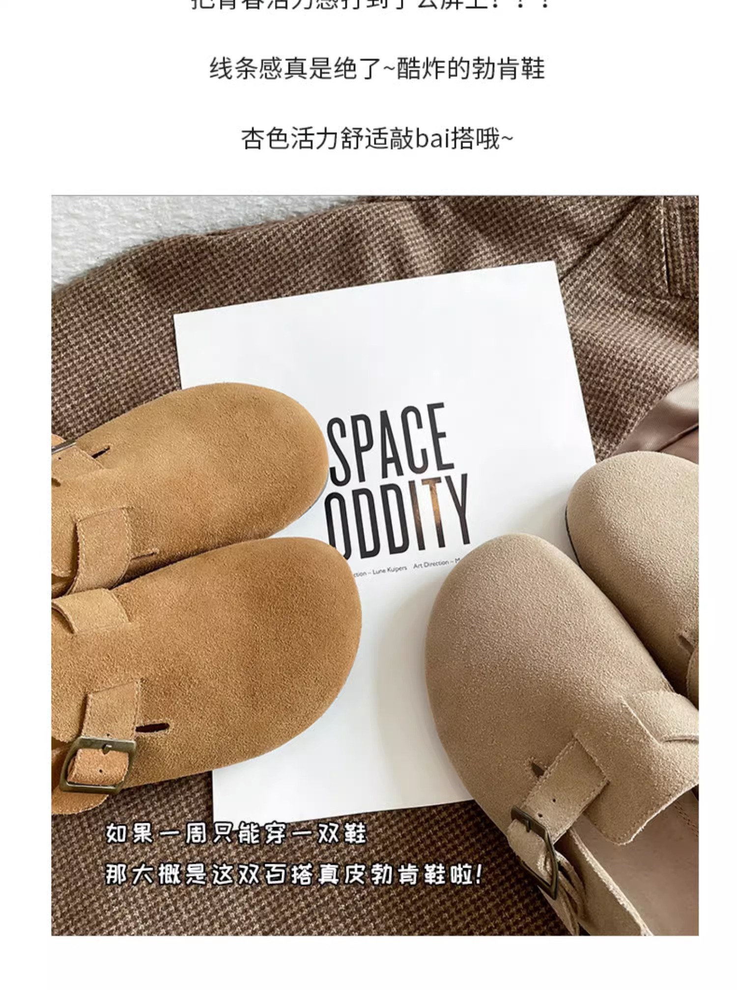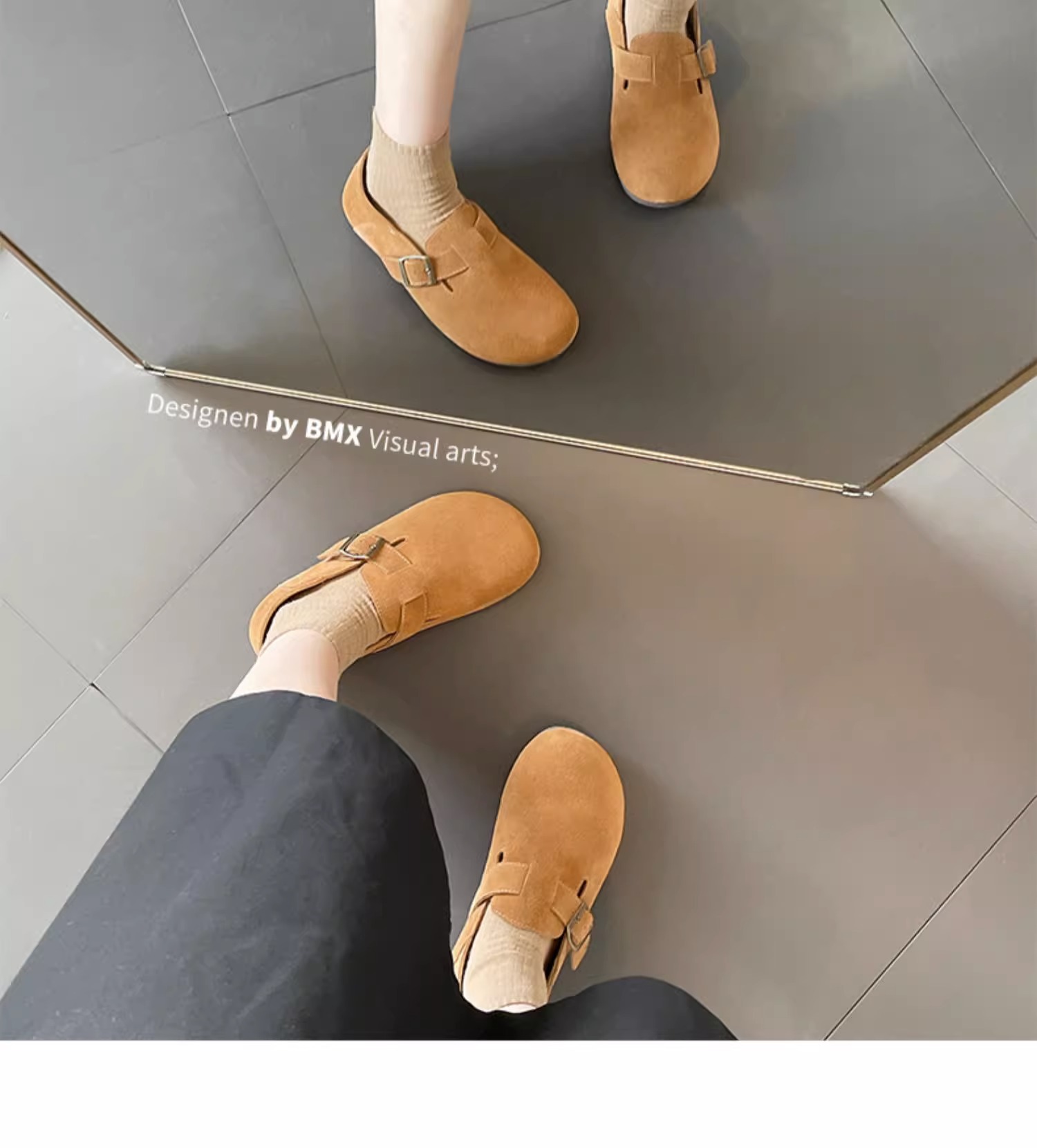 勃肯鞋女兩穿女鞋2025新款秋季一腳蹬懶人單鞋復古平底博肯豆豆鞋