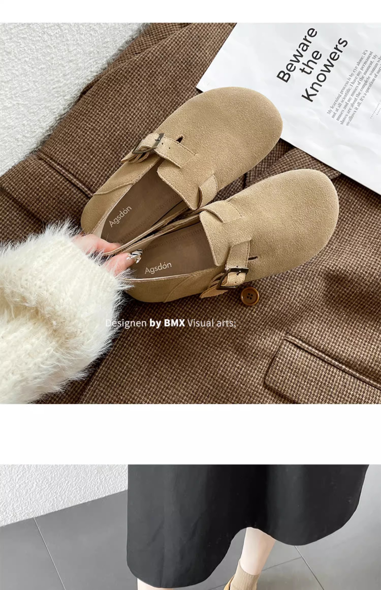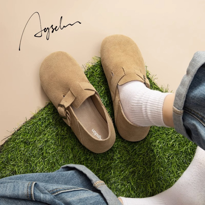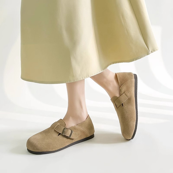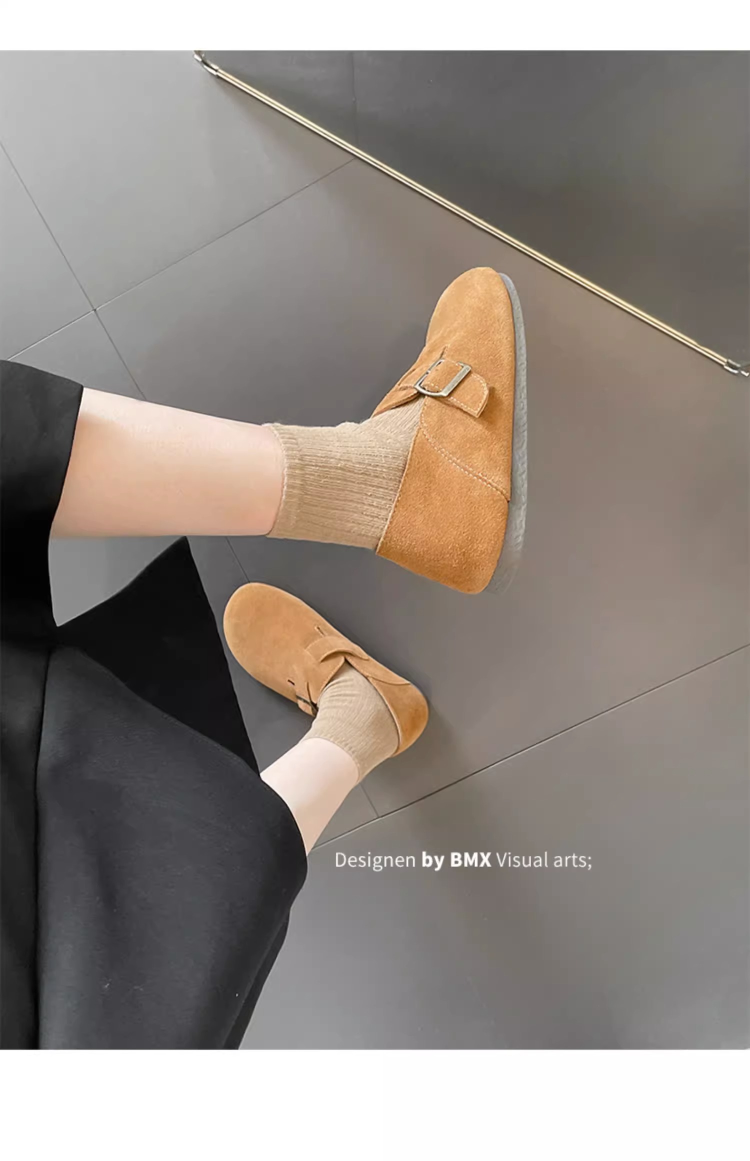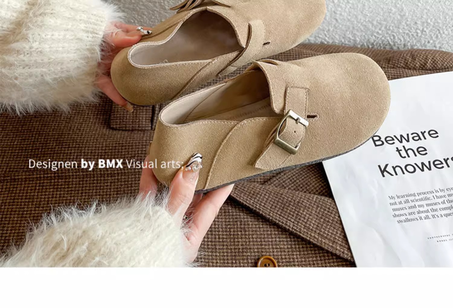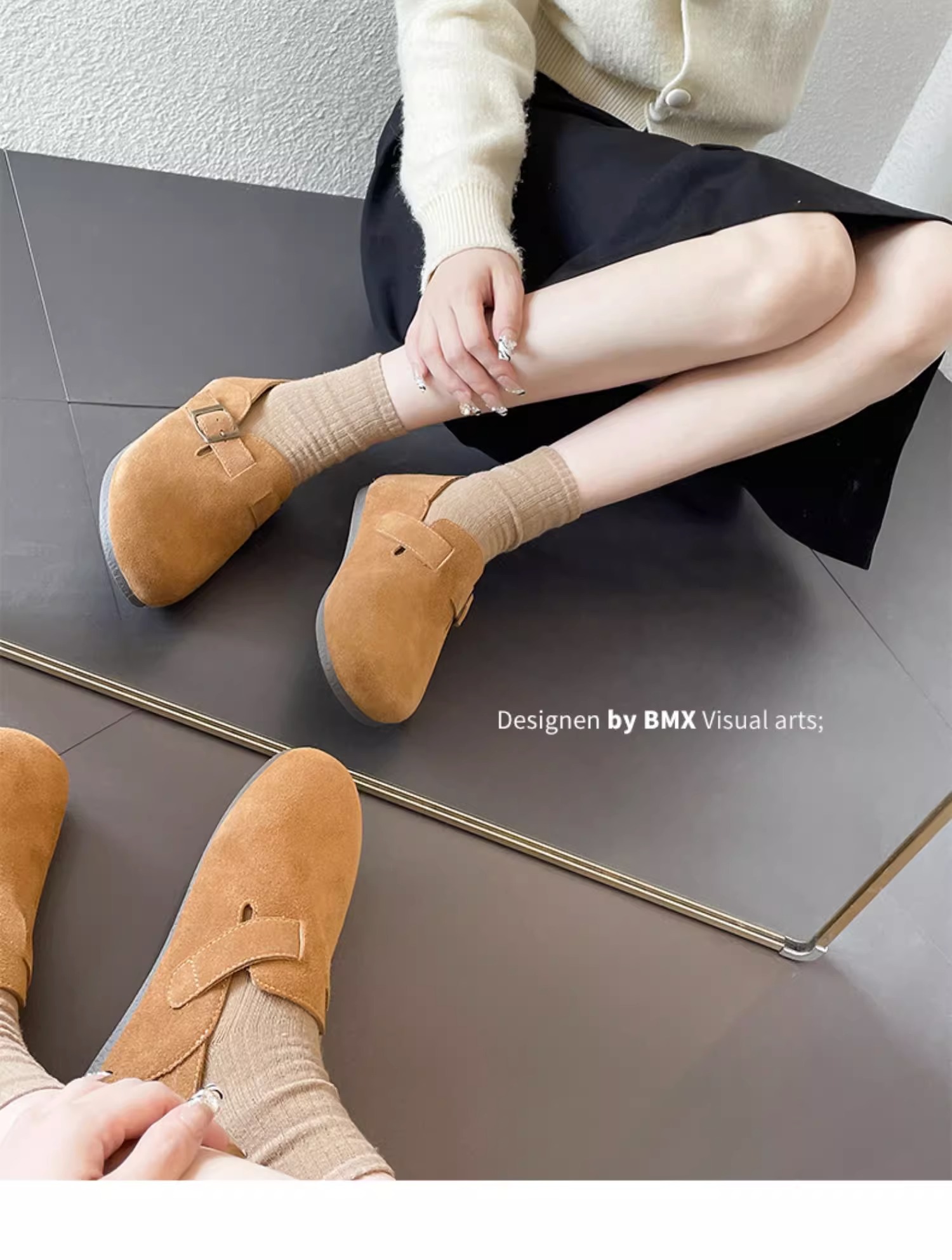 勃肯鞋女兩穿女鞋2025新款秋季一腳蹬懶人單鞋復古平底博肯豆豆鞋