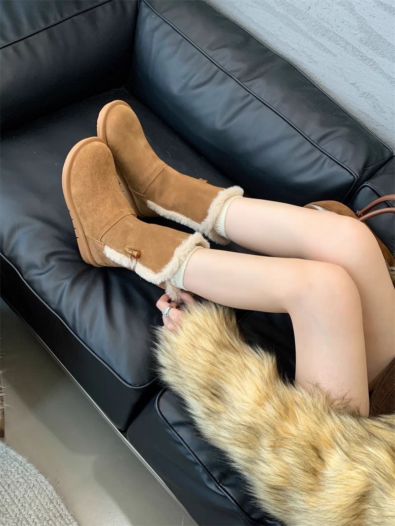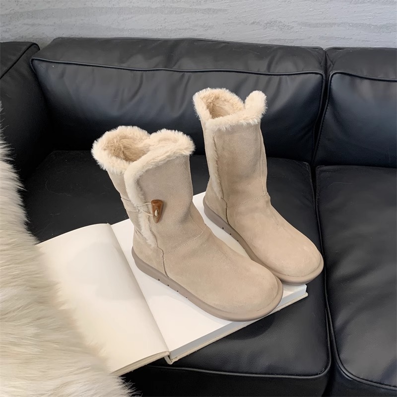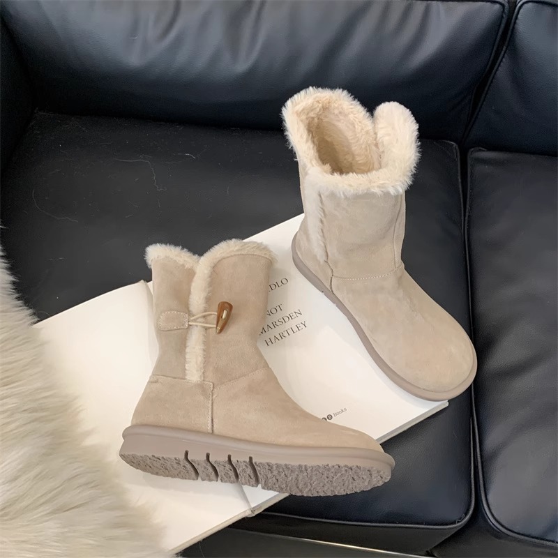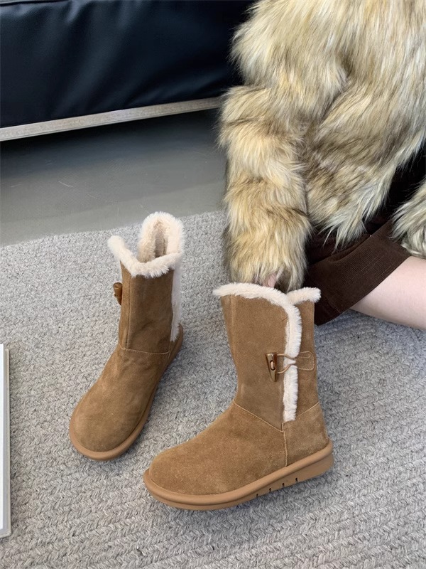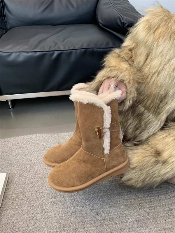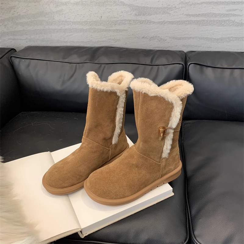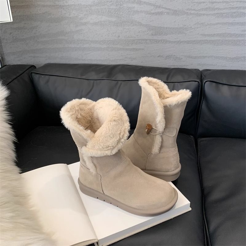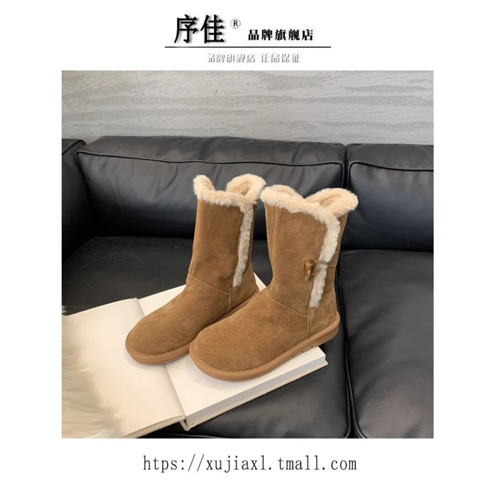 2025秋冬季新款牛角釦厚底雪地靴女防滑加絨加厚勃肯鞋短靴棉鞋子
