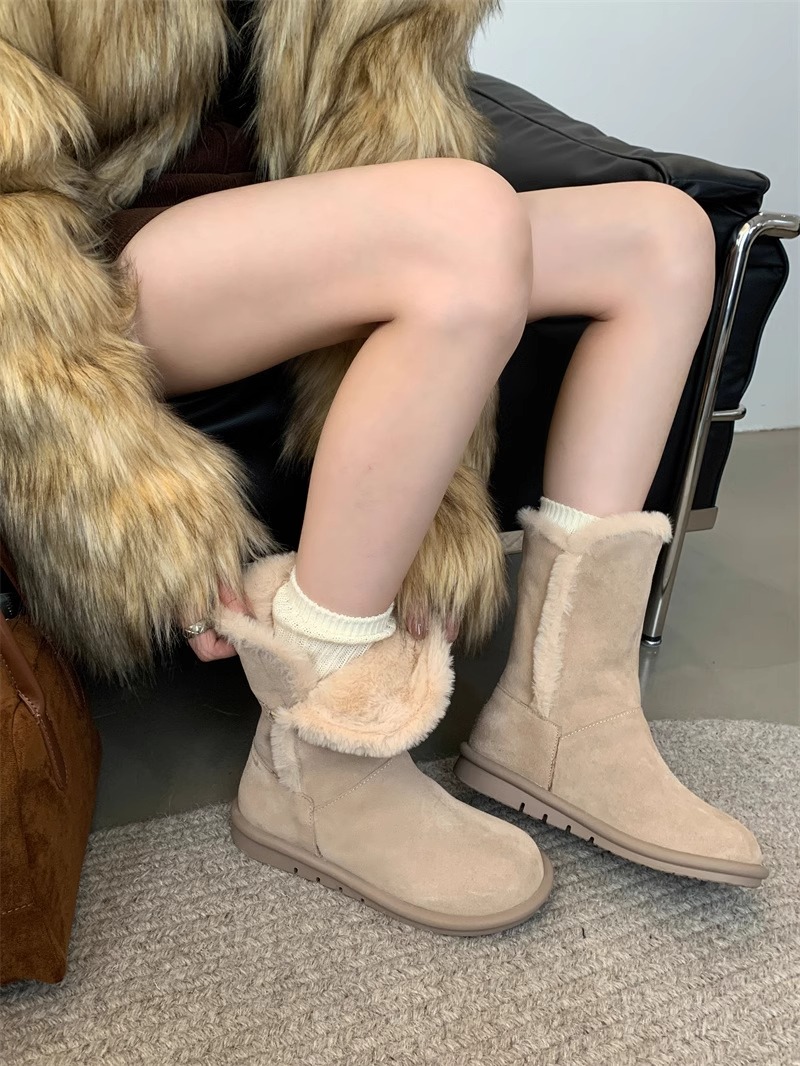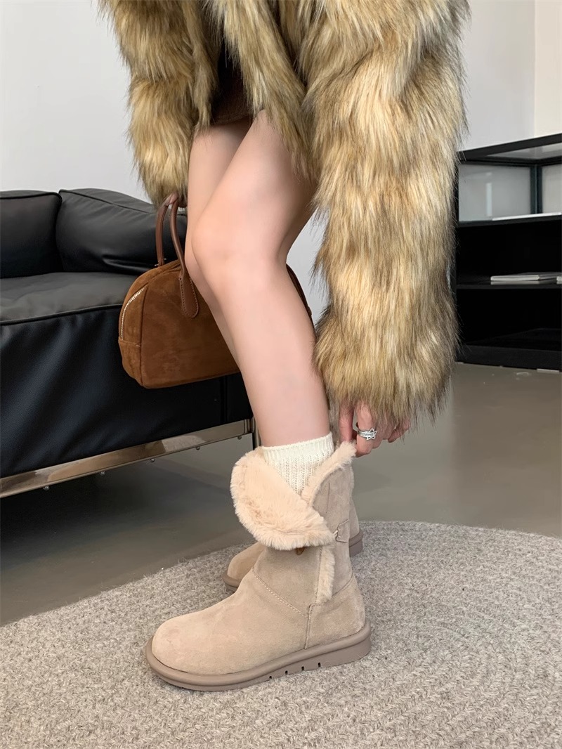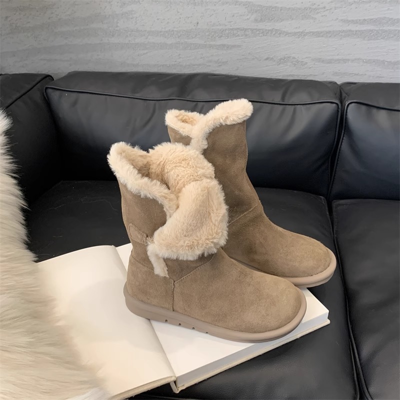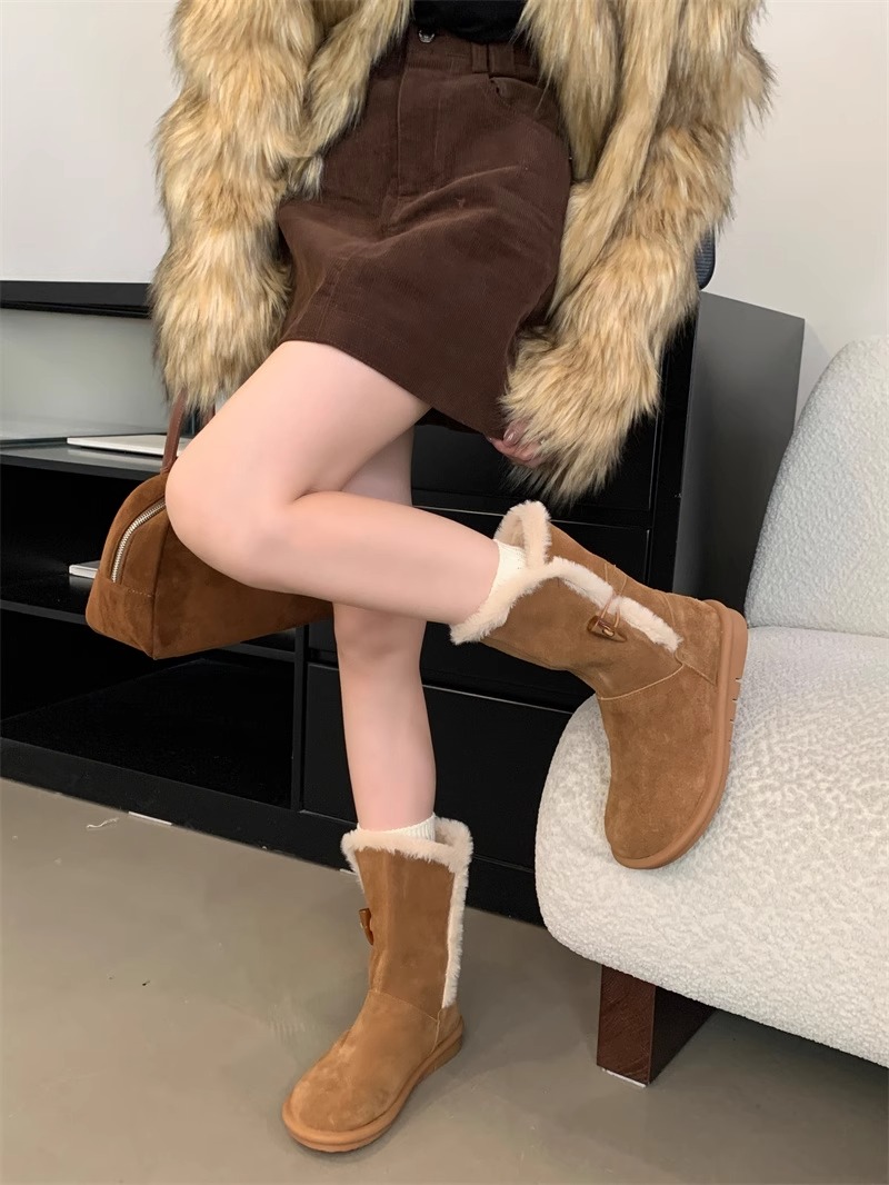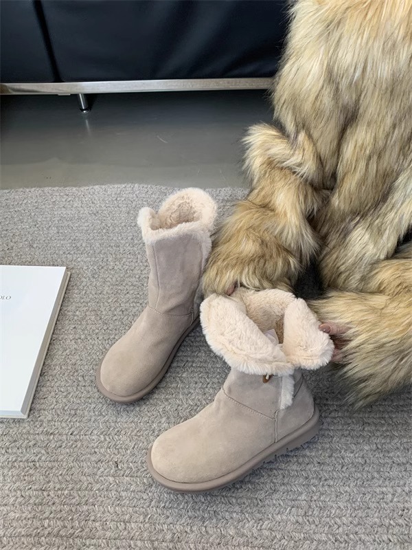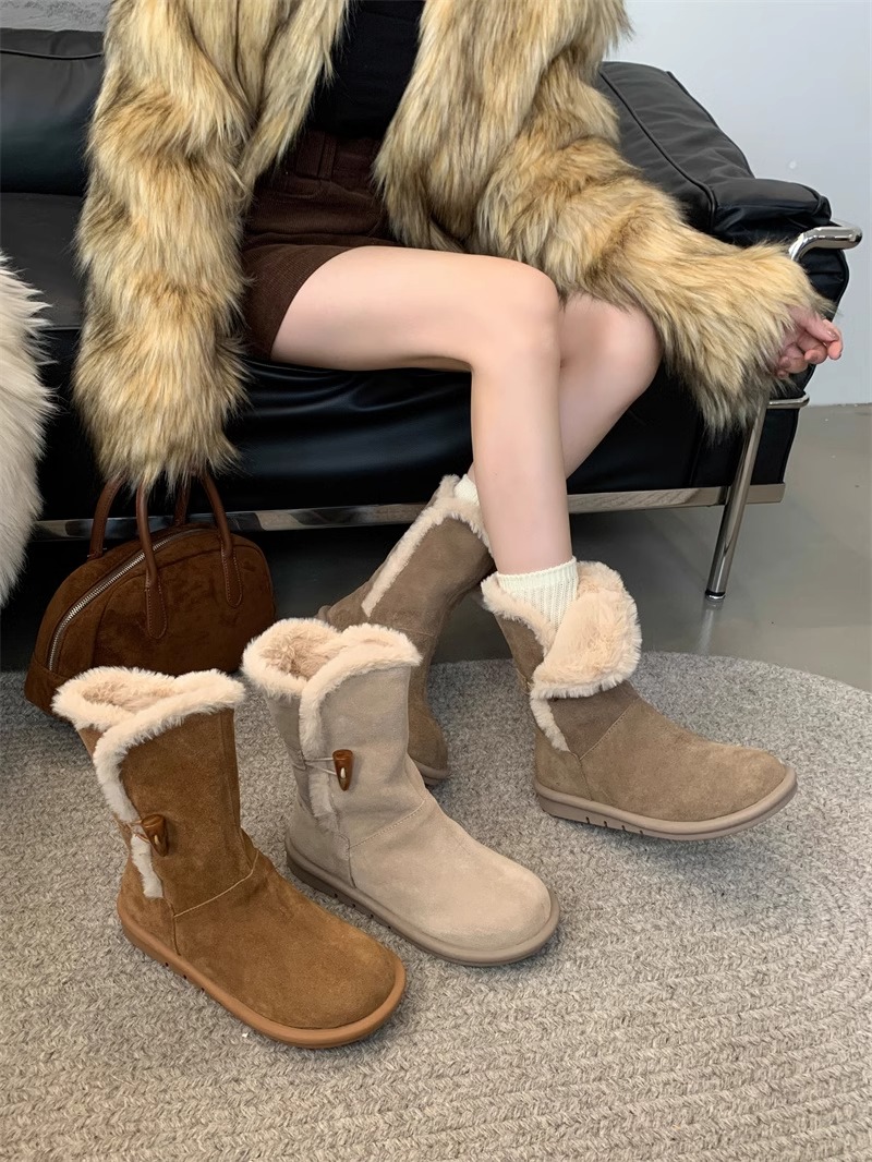 2025秋冬季新款牛角釦厚底雪地靴女防滑加絨加厚勃肯鞋短靴棉鞋子