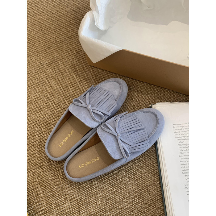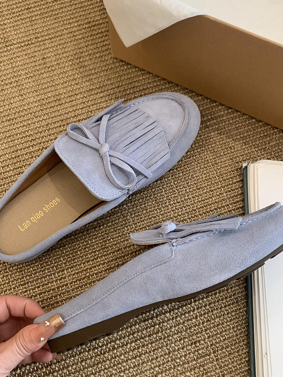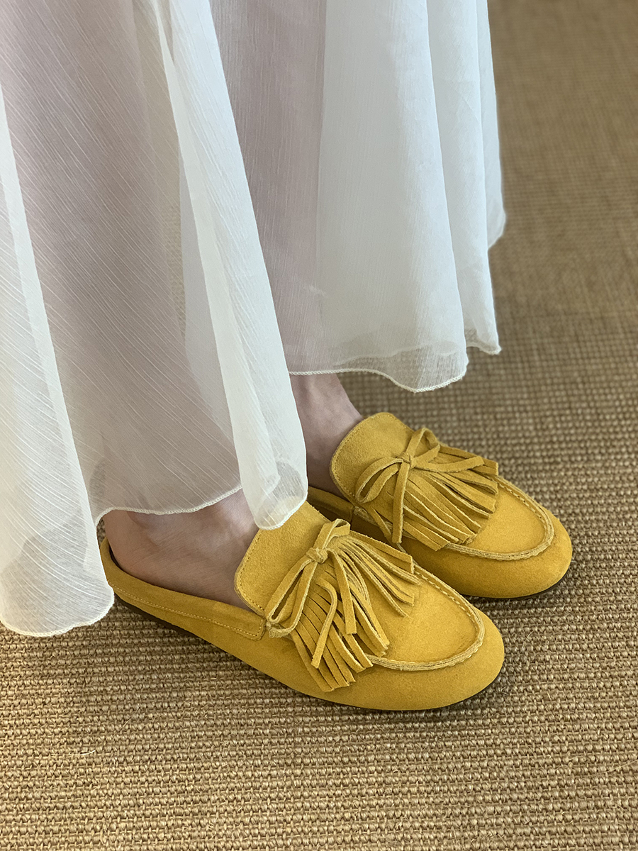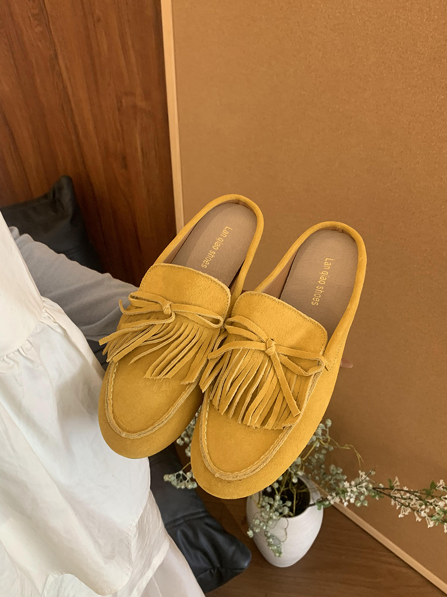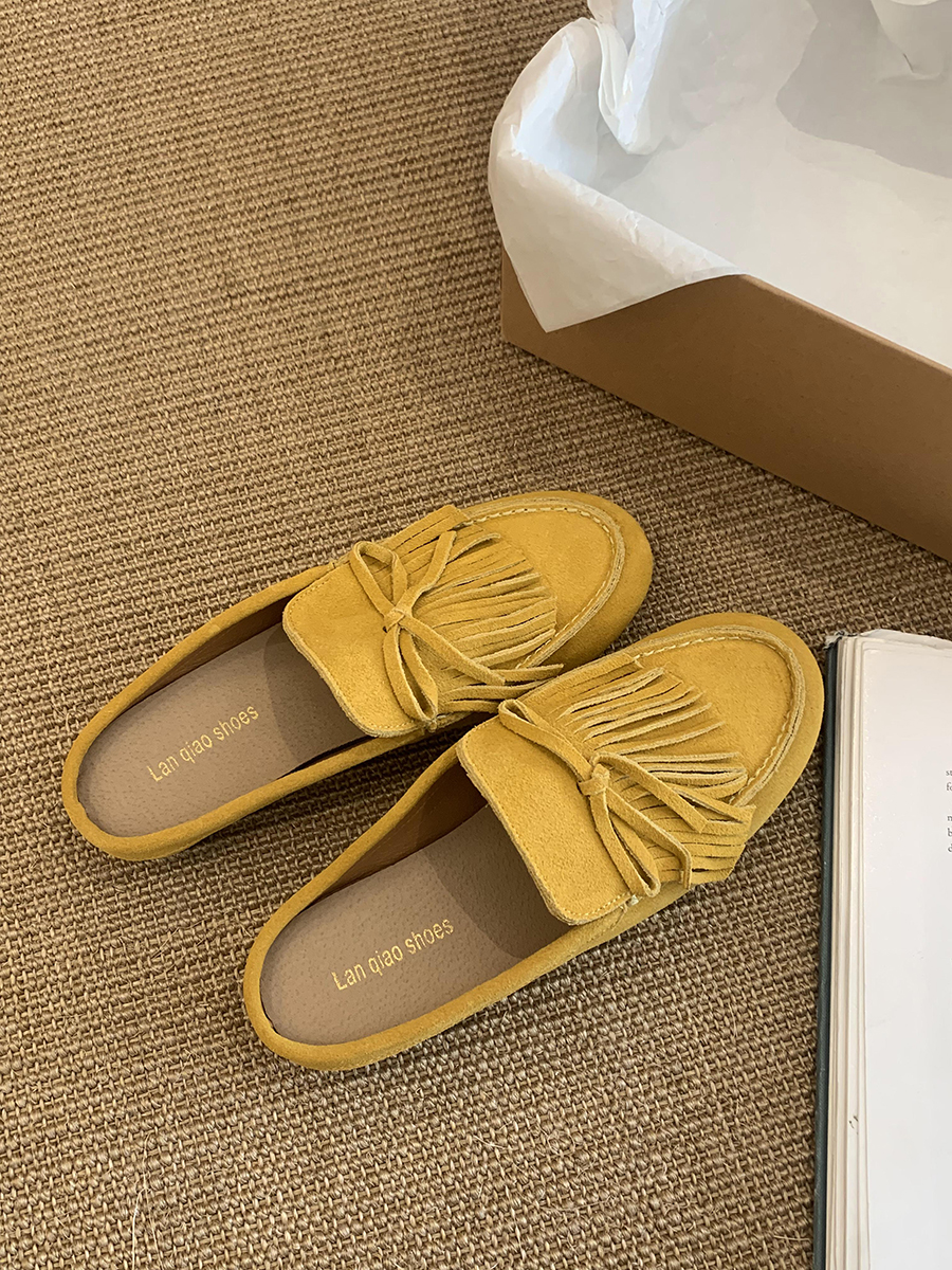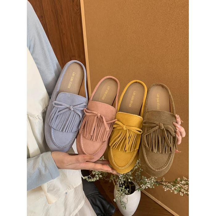 牛皮版!磨砂真皮包頭半拖鞋女外穿懶人一腳蹬休閒平底穆勒豆豆鞋