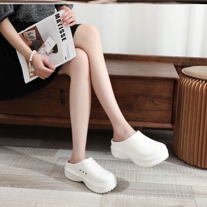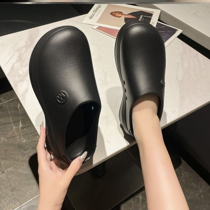 廚師護士EVA休閒運動厚底包頭增高拖鞋防滑穆勒護士鞋通用外出