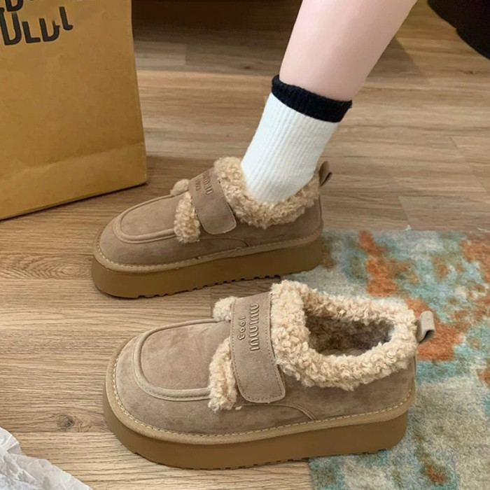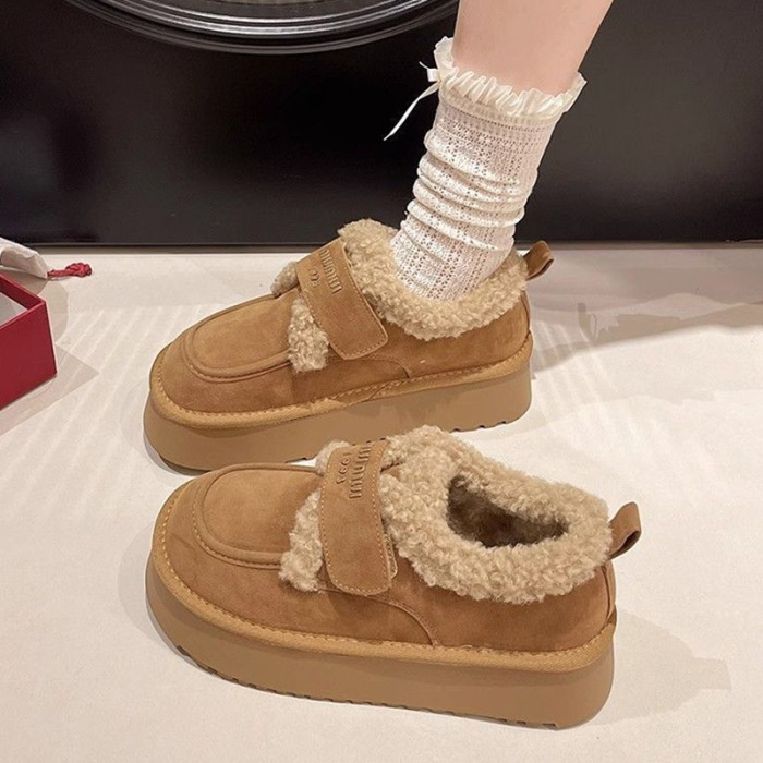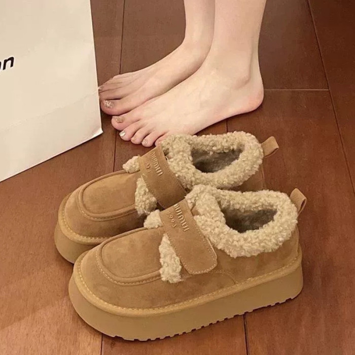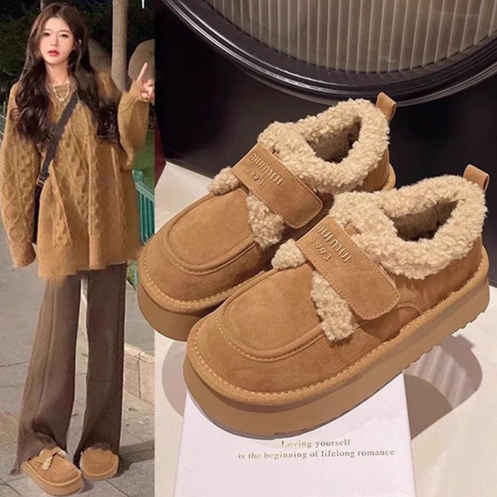 厚底棉鞋女冬外穿2025年新款保暖懶人一腳蹬雪地靴復古加絨勃肯鞋