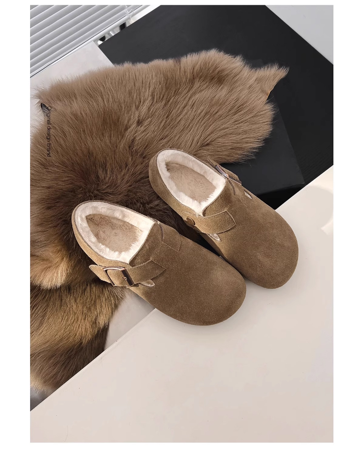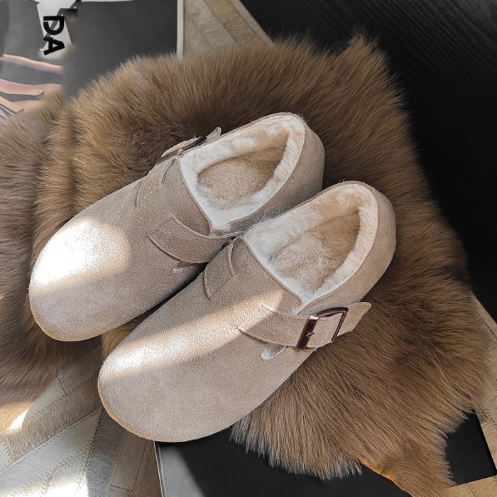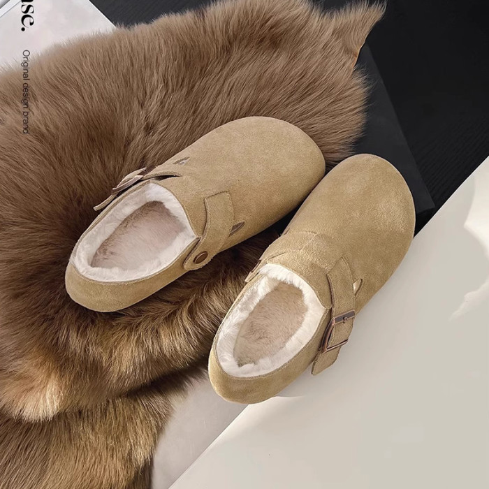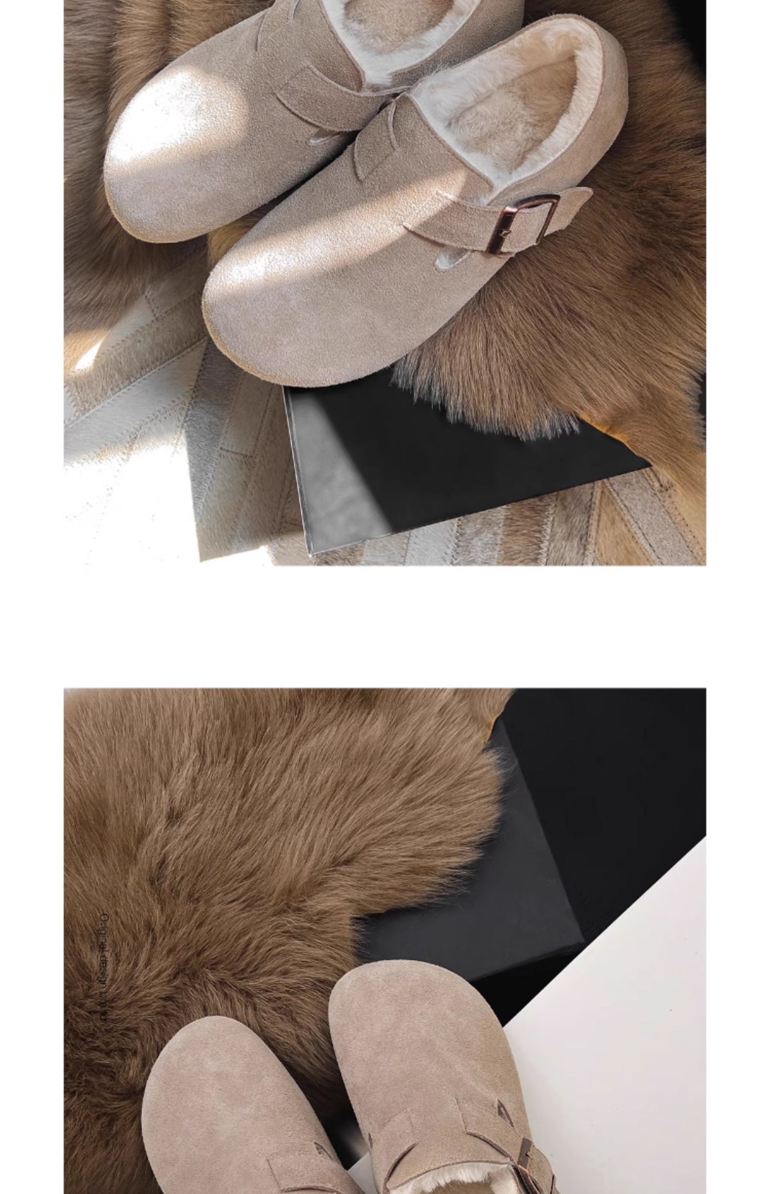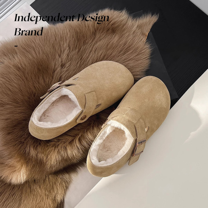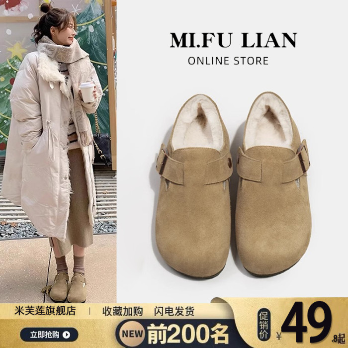 加絨勃肯鞋女2025新款秋冬季毛毛拖鞋厚底一腳蹬博肯包頭半拖棉拖