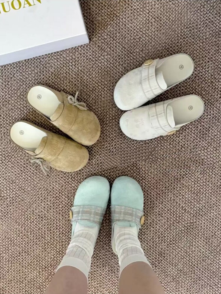 秋冬氛圍感的神!真的好適合通勤~印花紐釦軟糯舒適跟腳百搭勃肯鞋