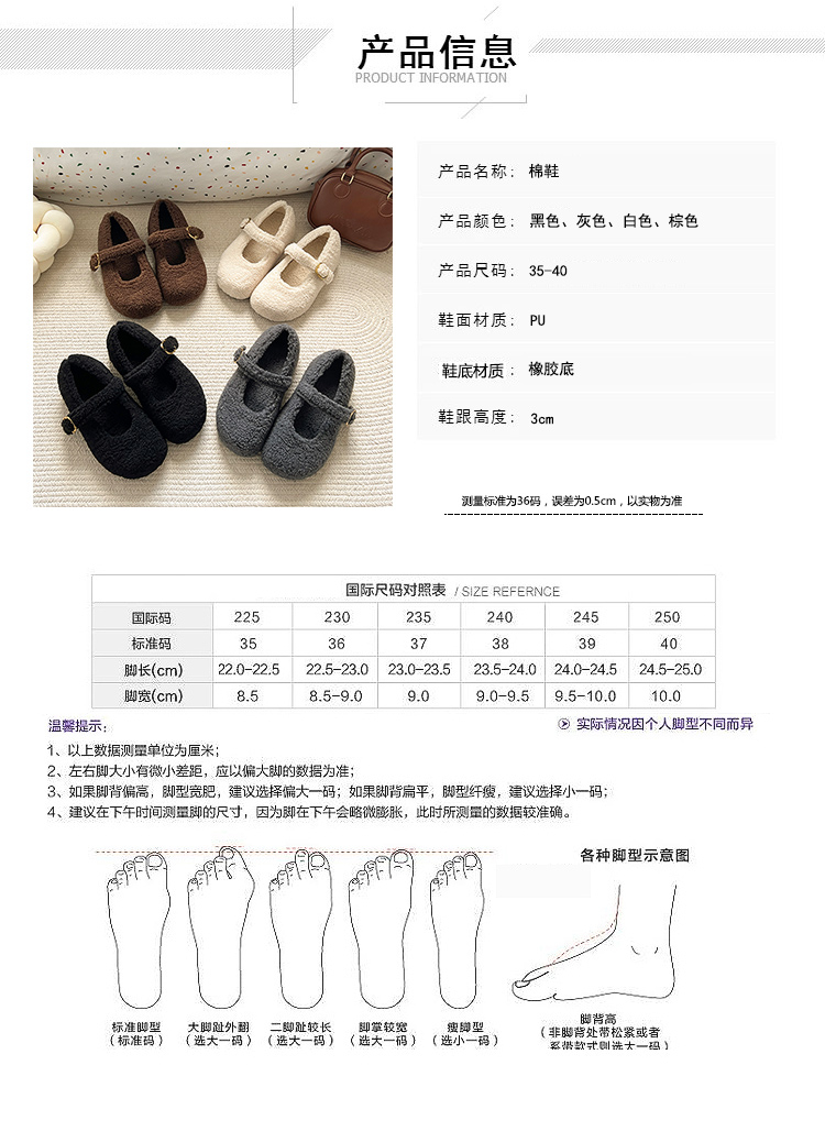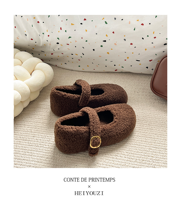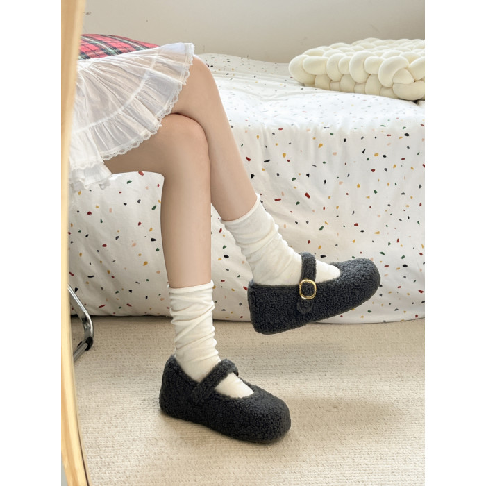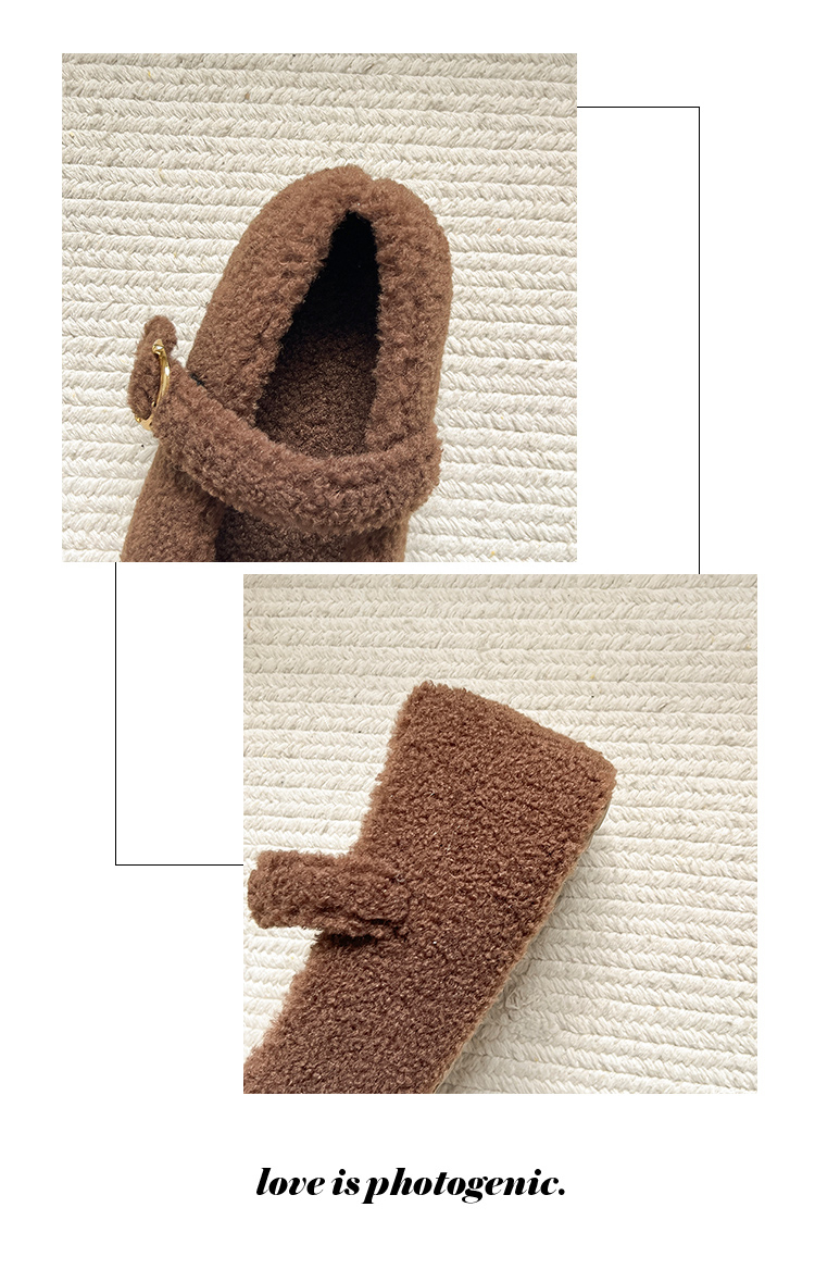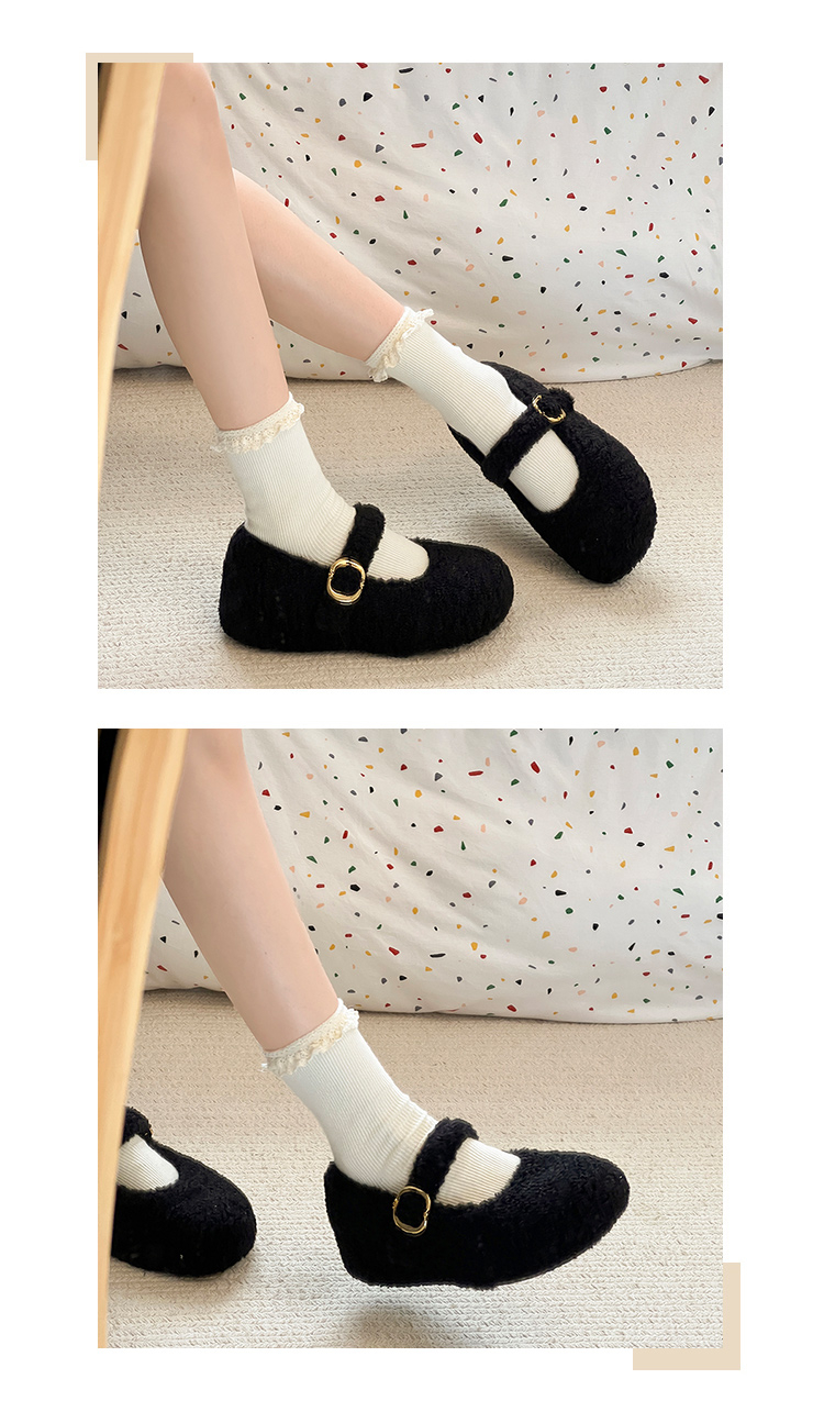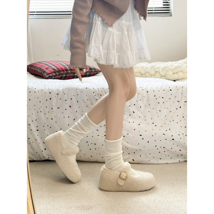 厚底內增高勃肯鞋毛毛鞋女2025新款冬加絨瑪麗珍棉鞋雪地靴豆豆鞋