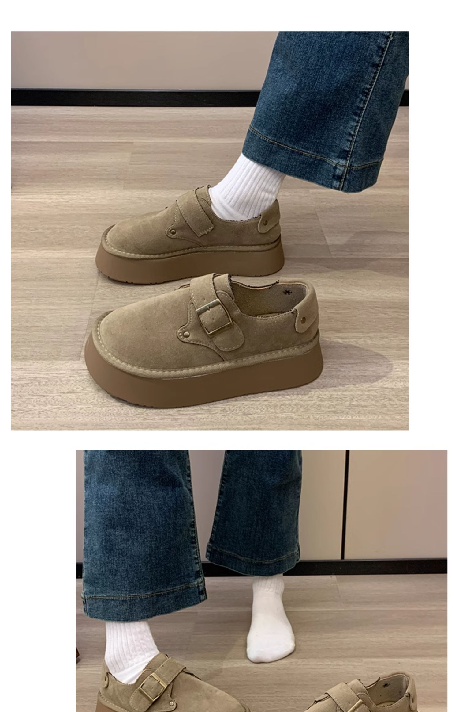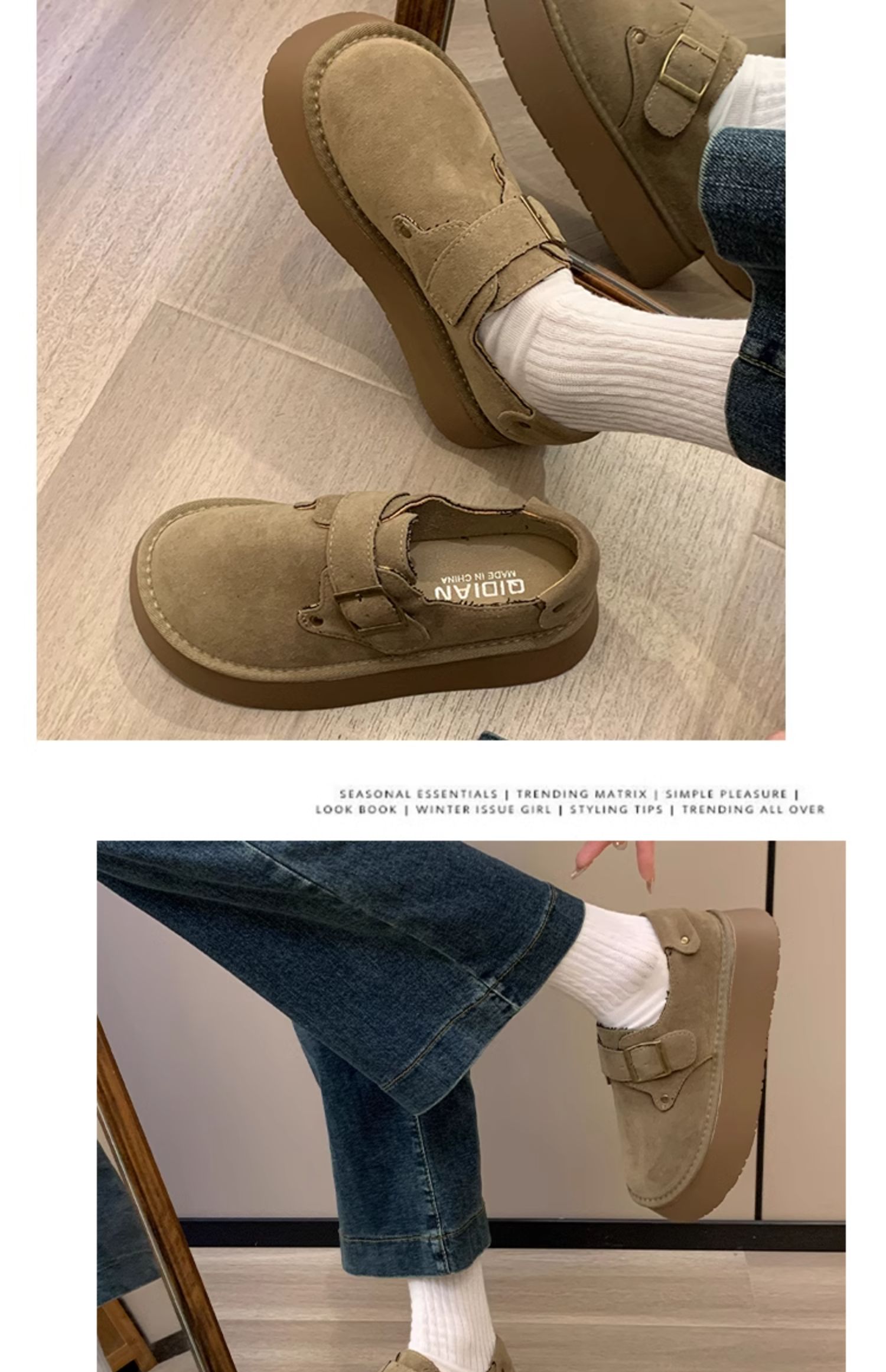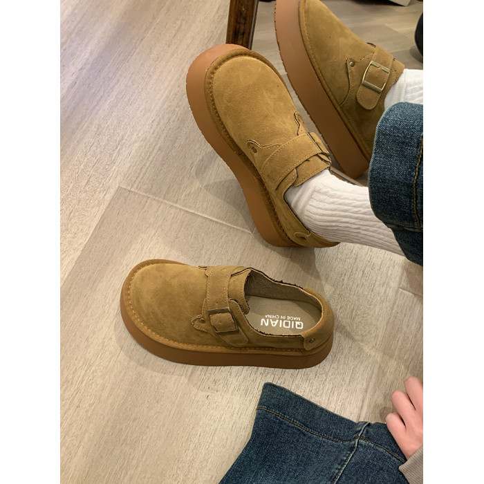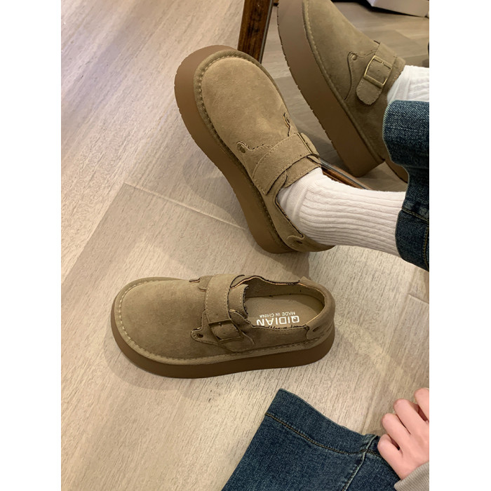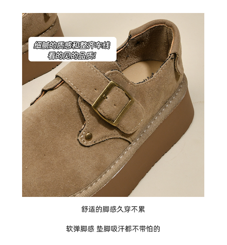 松糕厚底勃肯鞋一腳蹬女鞋子2025新款秋冬季復古樂福鞋博肯豆豆鞋