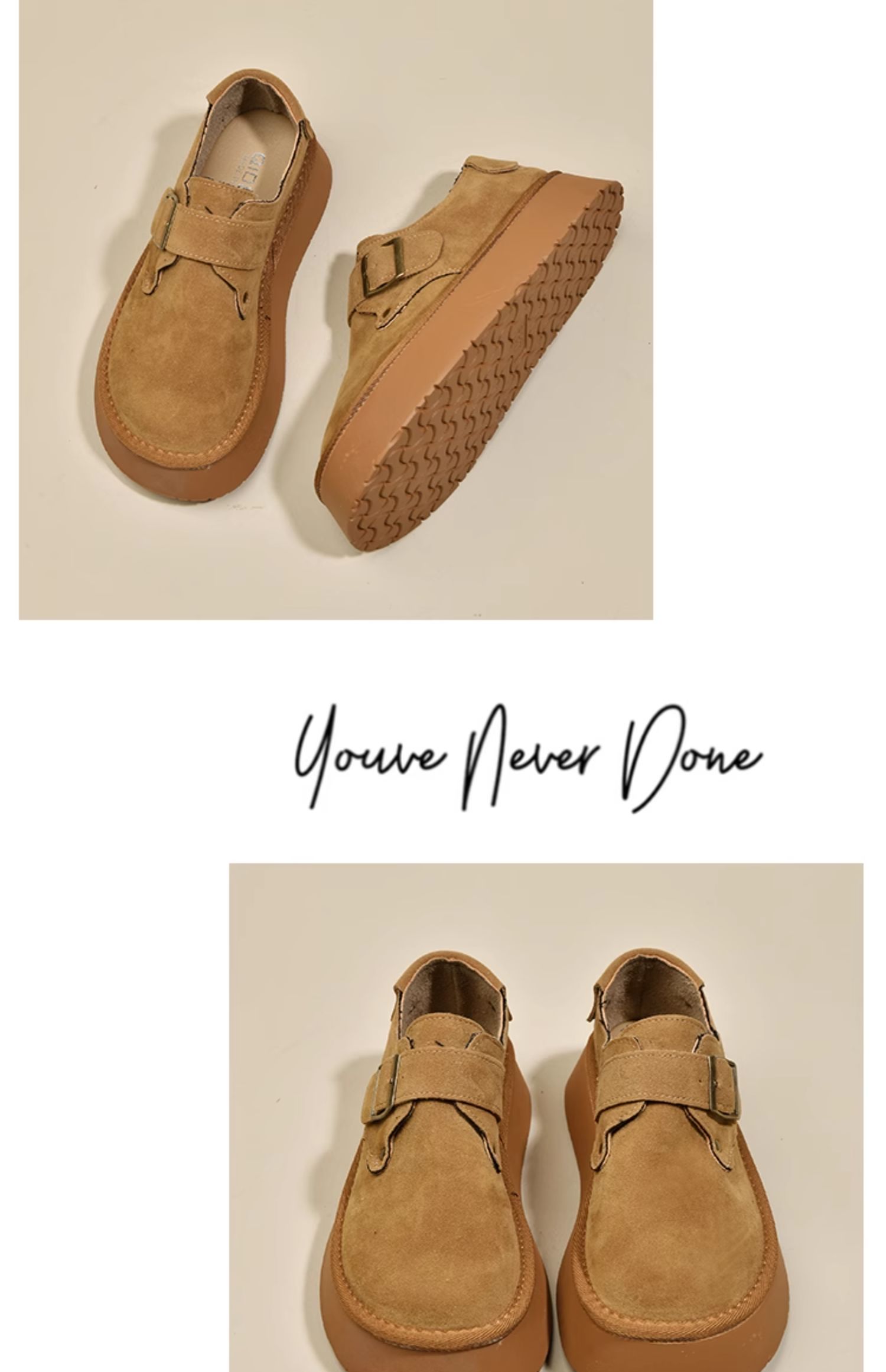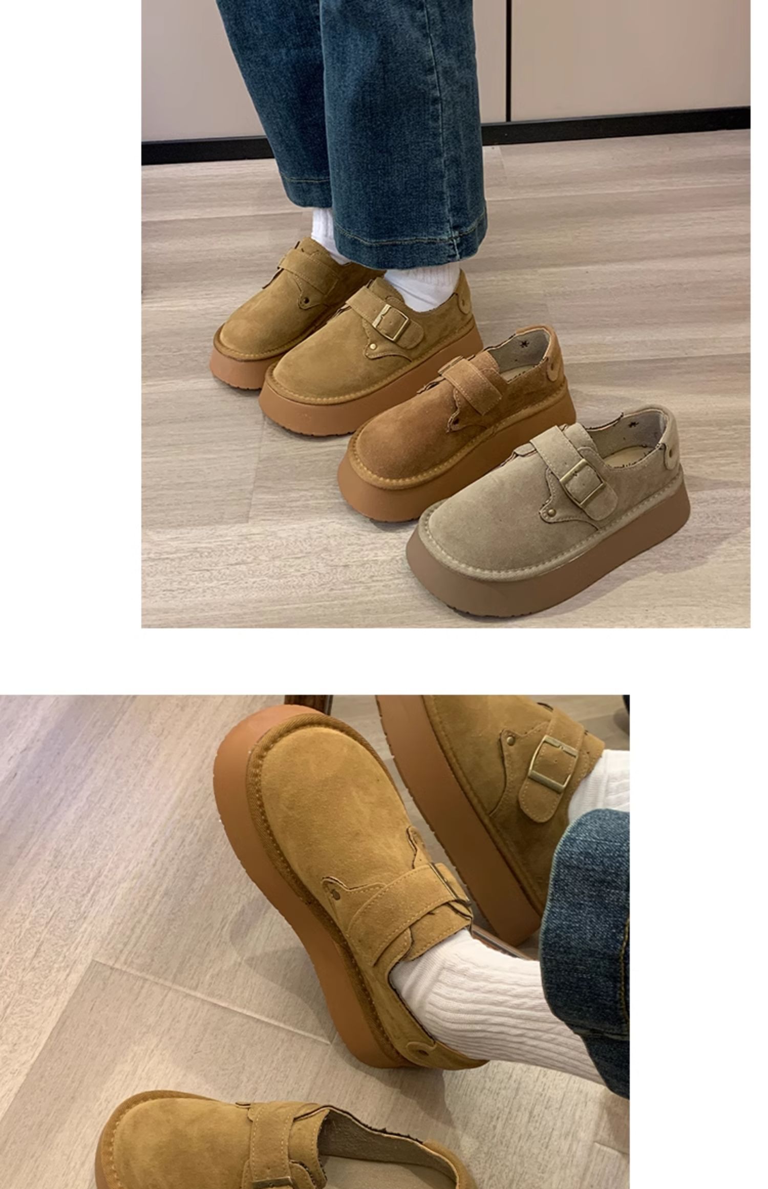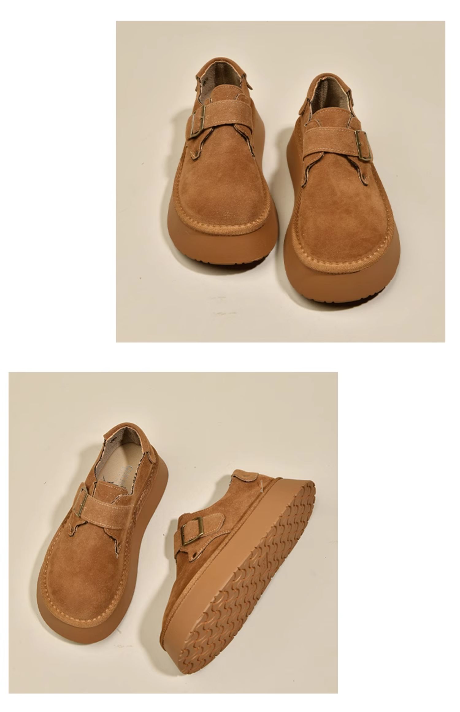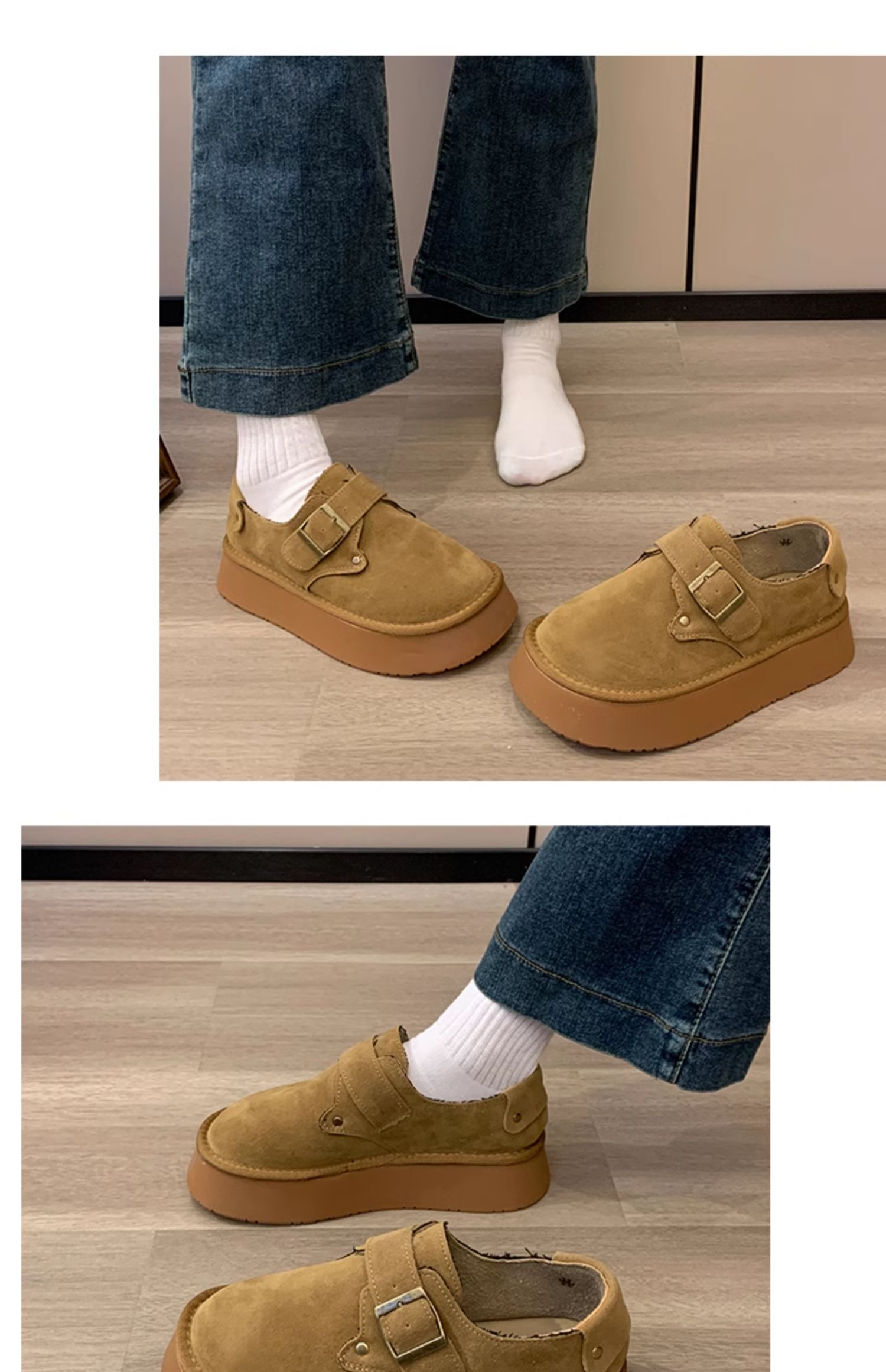 松糕厚底勃肯鞋一腳蹬女鞋子2025新款秋冬季復古樂福鞋博肯豆豆鞋