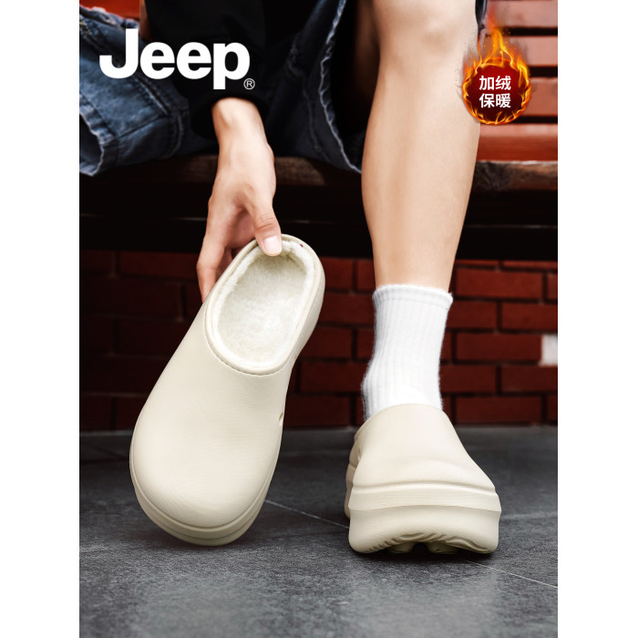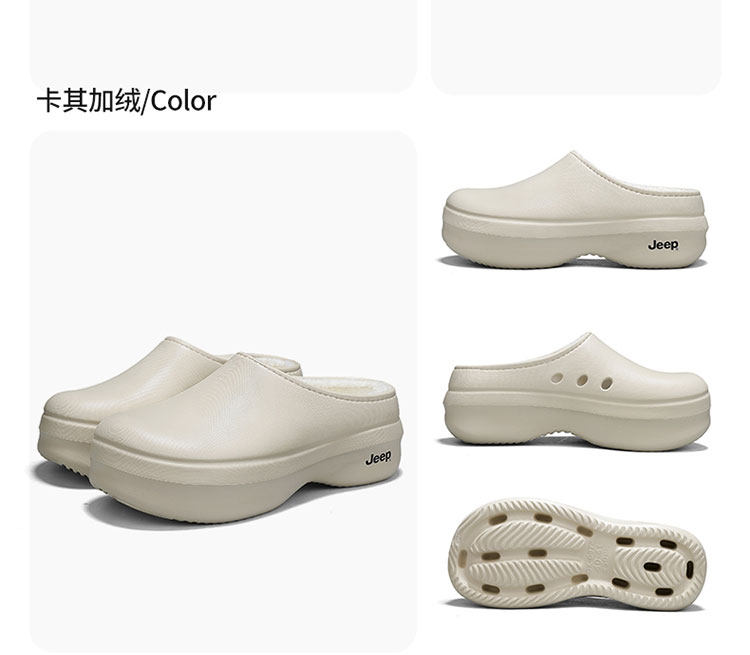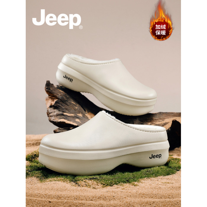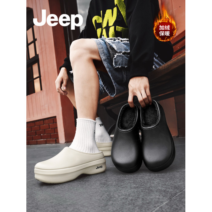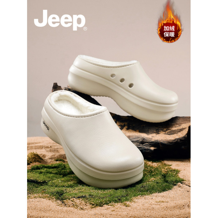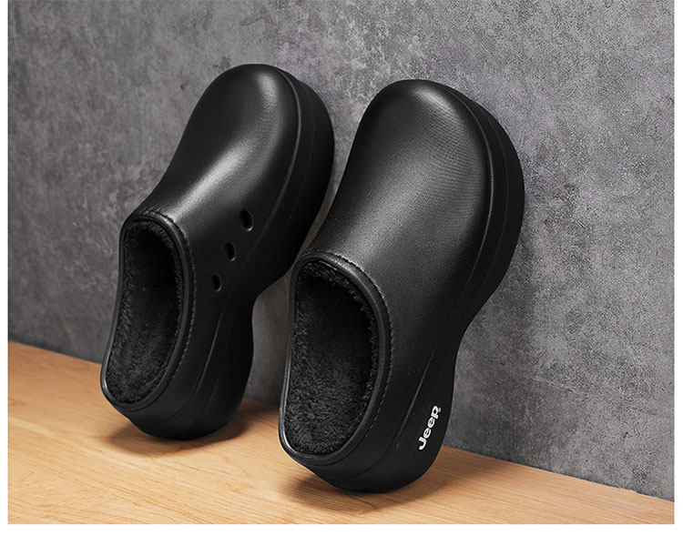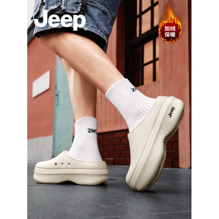 JEEP加絨廚師鞋女冬外穿棉拖2025新款棉鞋冬季加棉厚底洞洞棉拖鞋