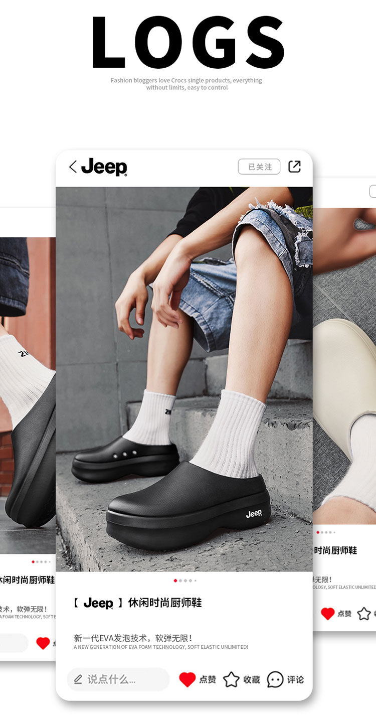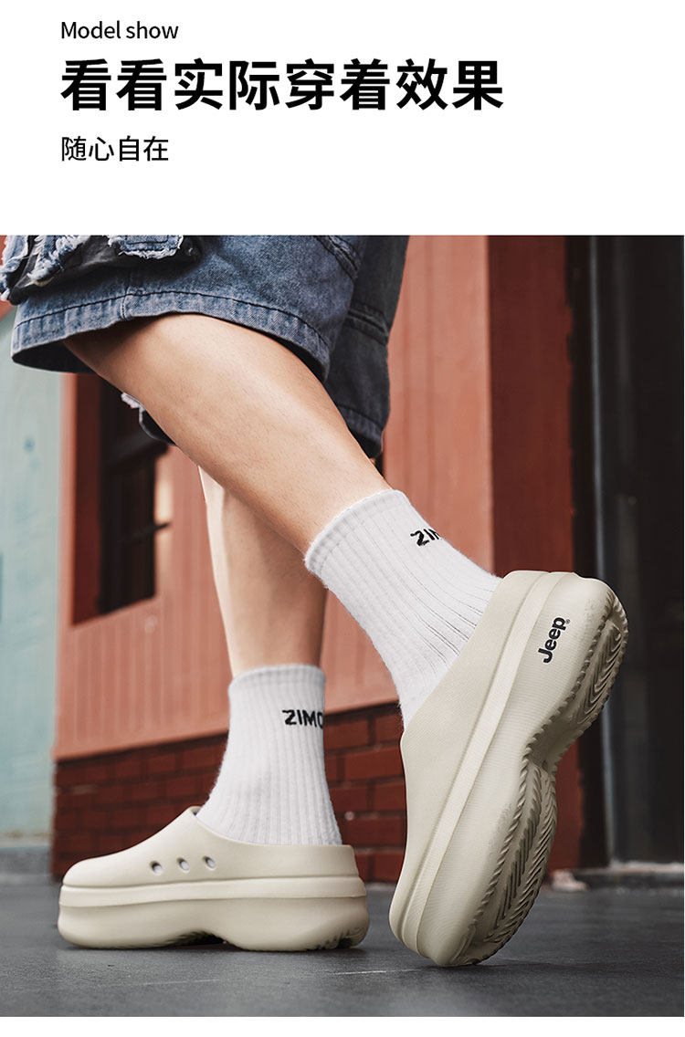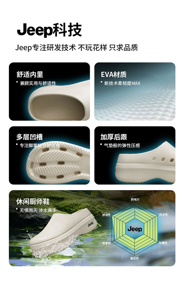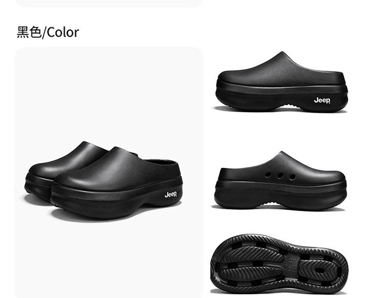 JEEP加絨廚師鞋女冬外穿棉拖2025新款棉鞋冬季加棉厚底洞洞棉拖鞋