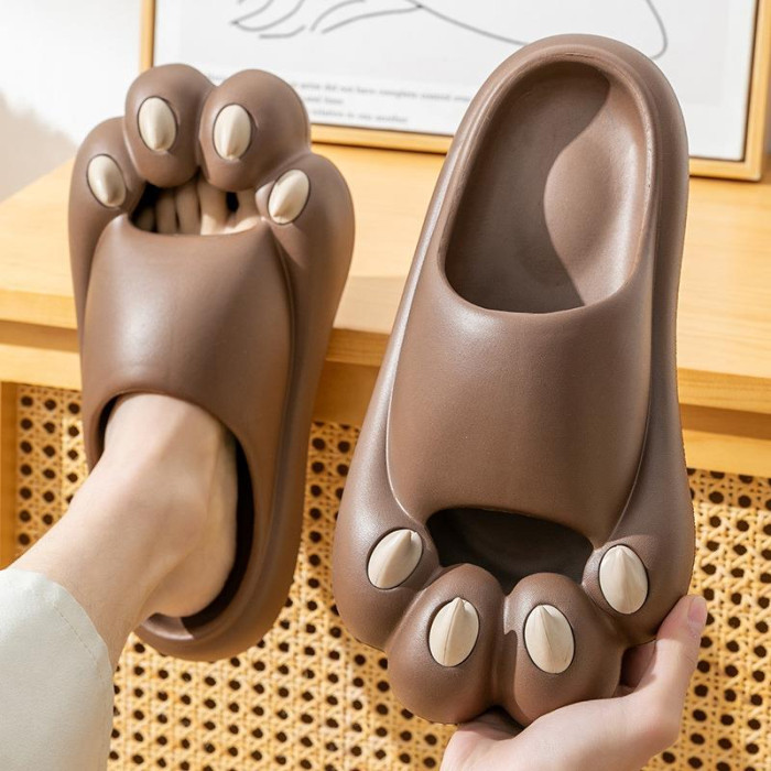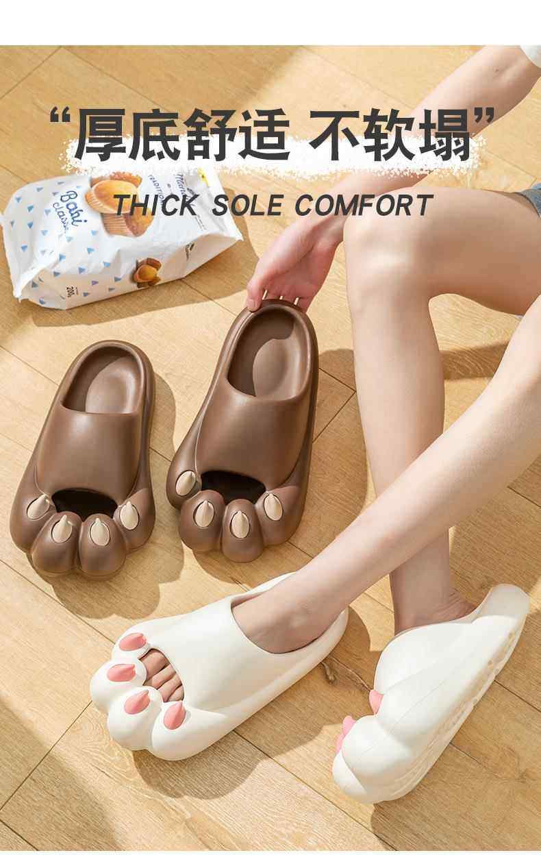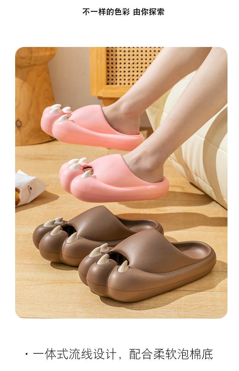 踩屎感可愛貓爪親子涼拖鞋男女夏季外穿厚底情侶搞怪室內家居家用