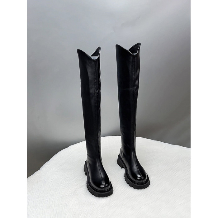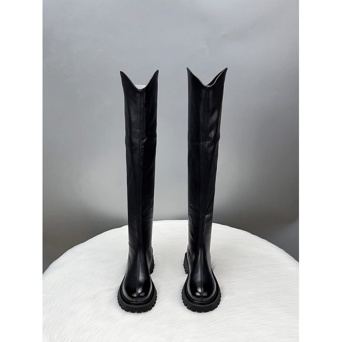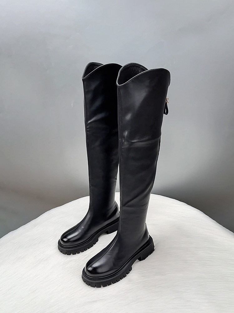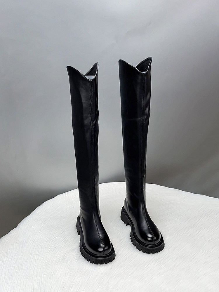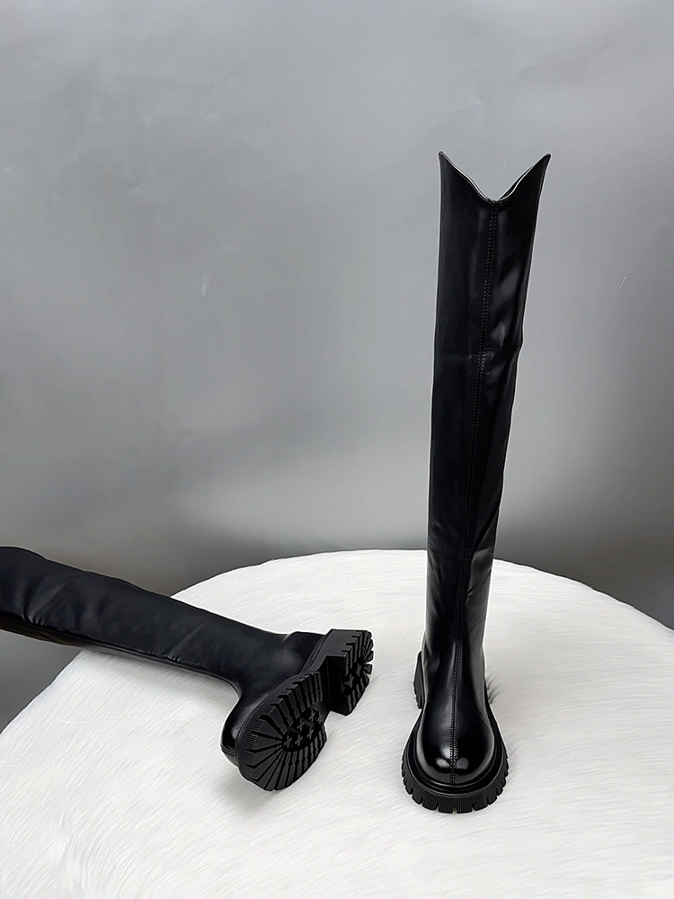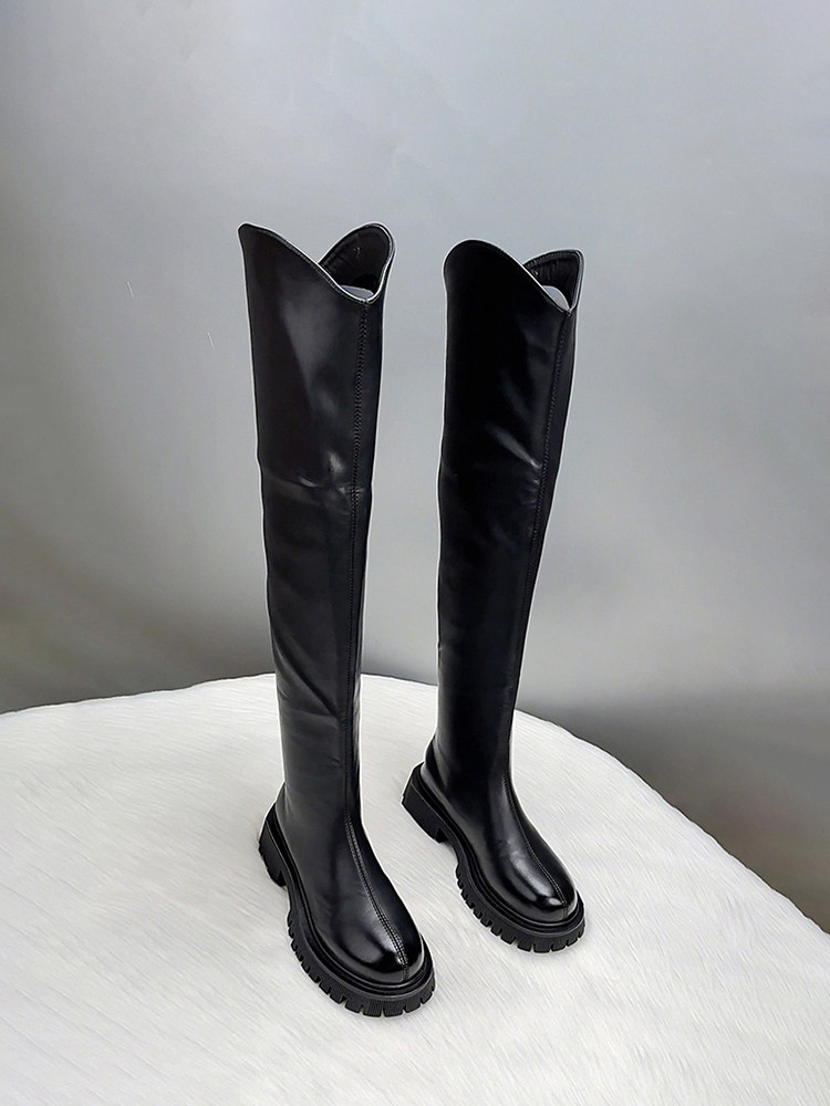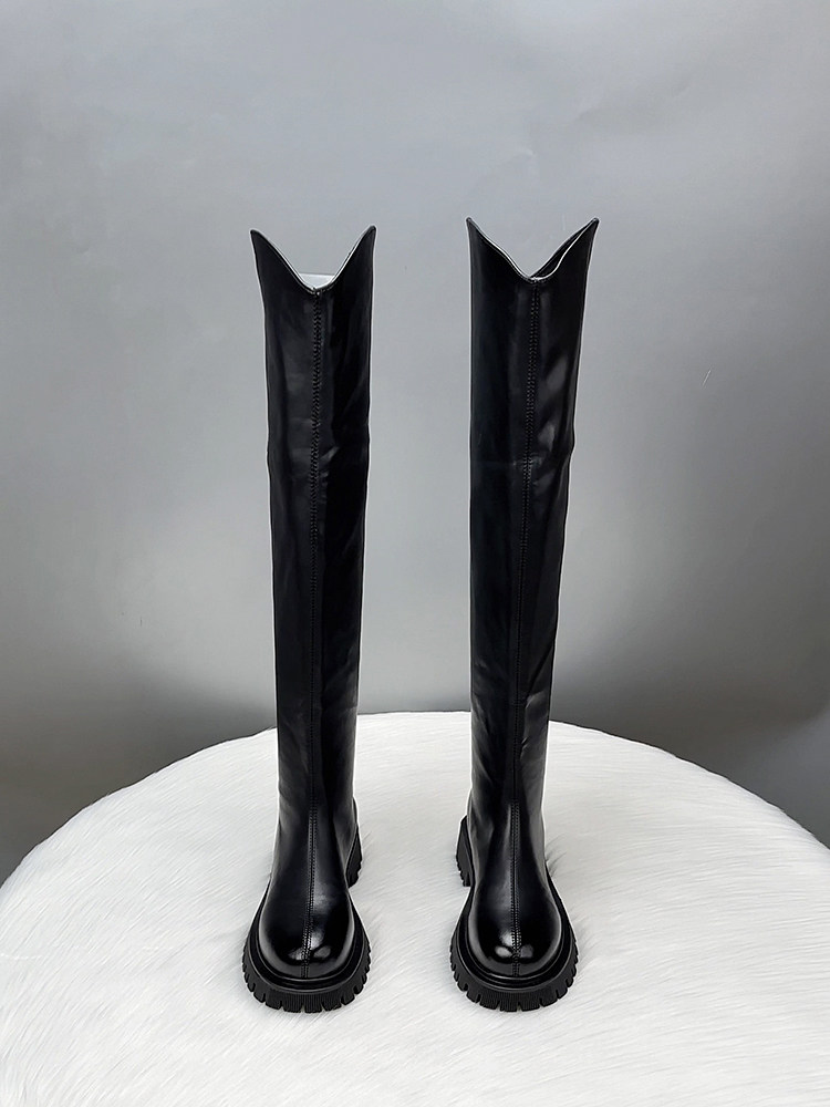 真皮過膝長筒靴女2025新款秋冬季V口顯瘦彈力瘦腿長靴高筒騎士靴