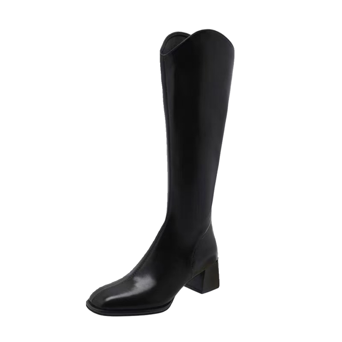 v口長靴女2024氣質方頭粗跟瘦瘦靴黑色小個子長筒騎士靴