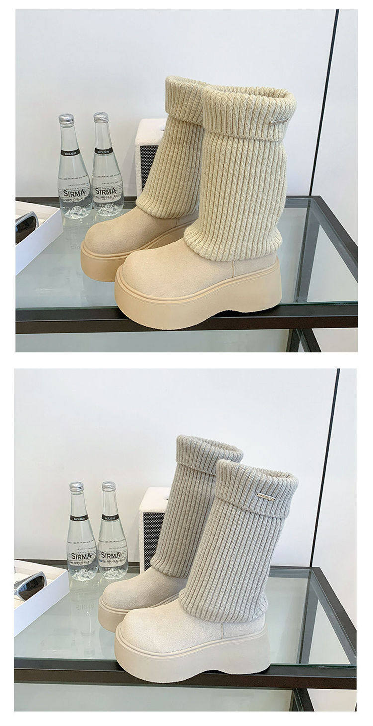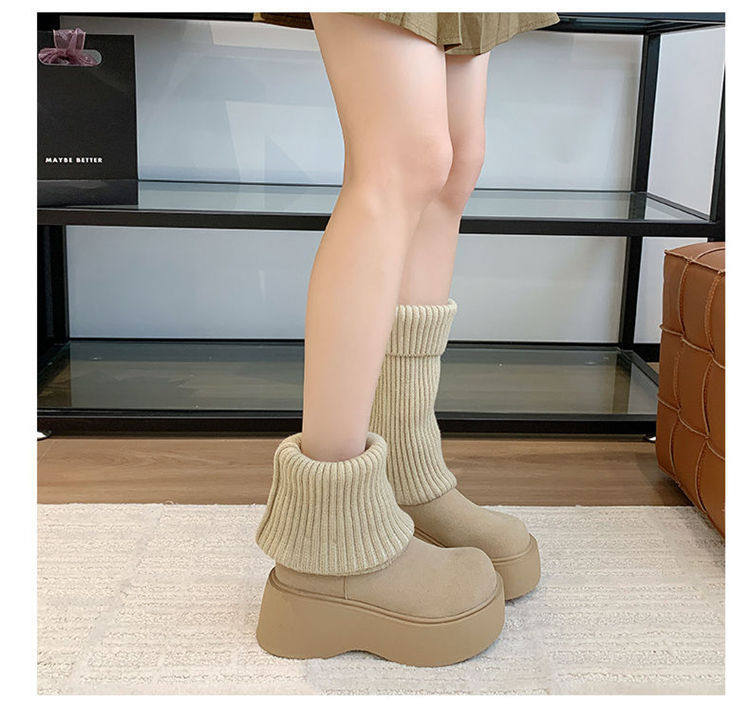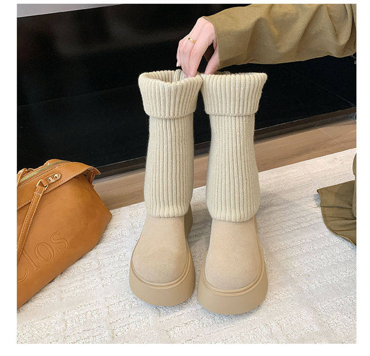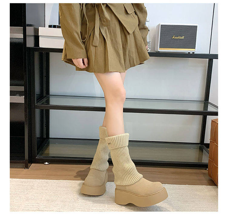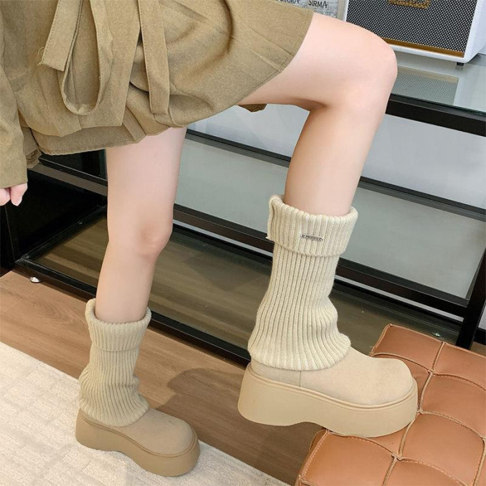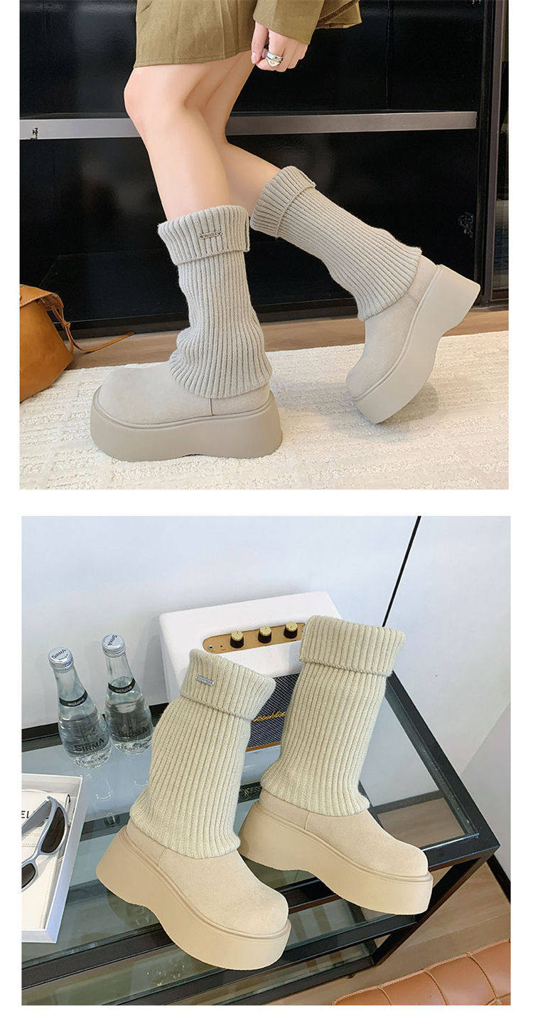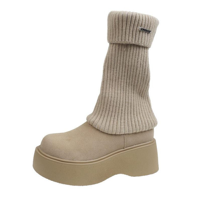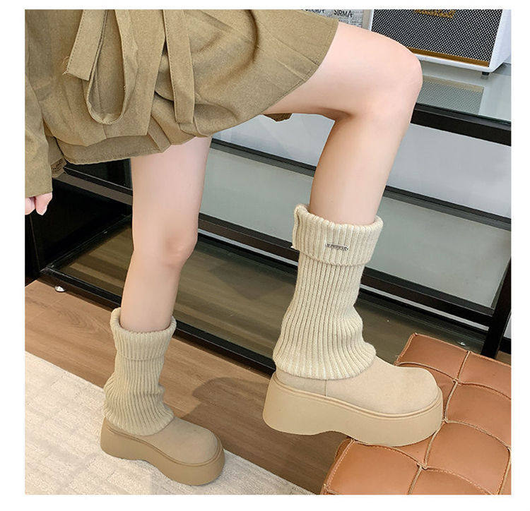 2025新款厚底針織襪女增高休閒長靴百搭多變透氣時尚拼接洋氣高靴