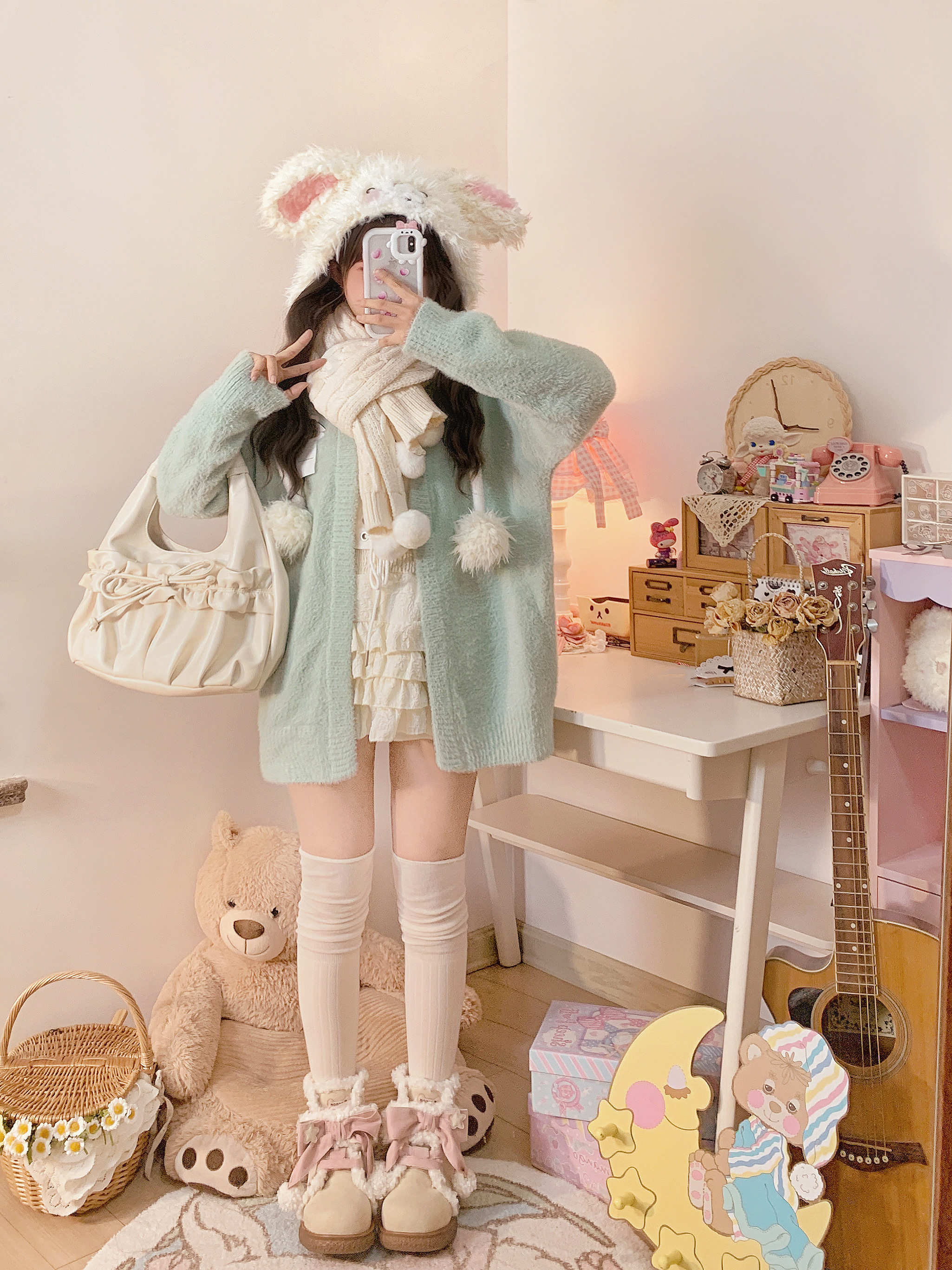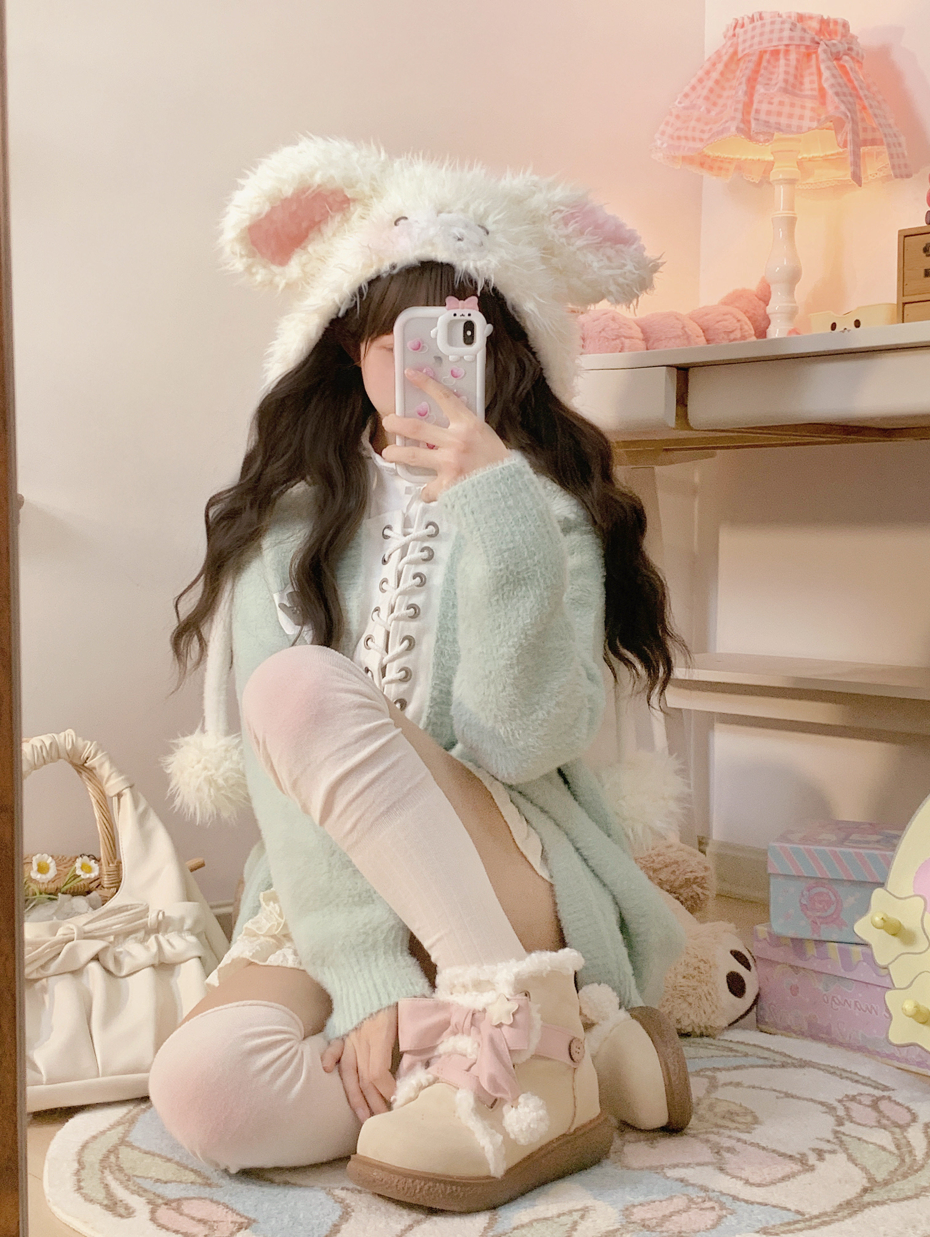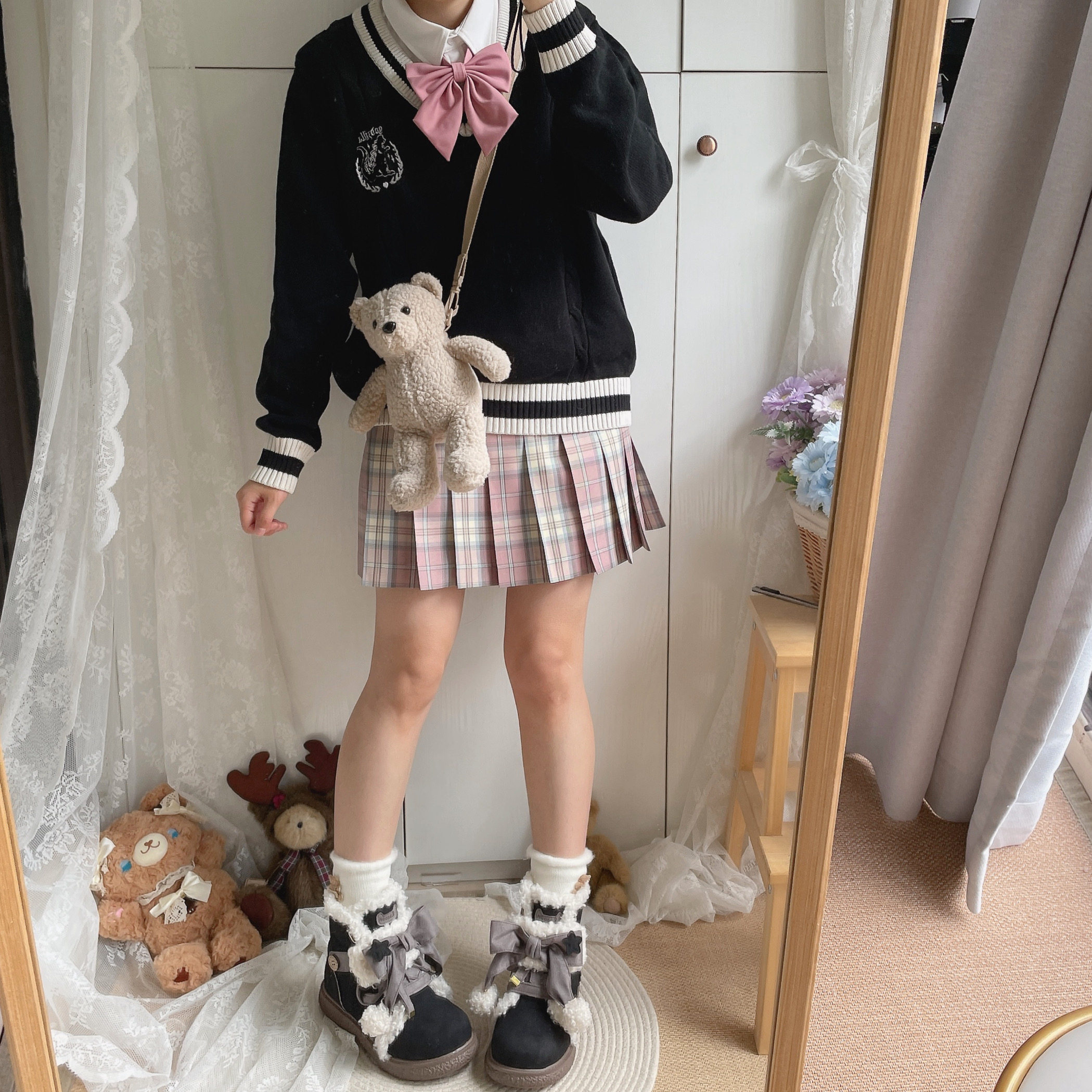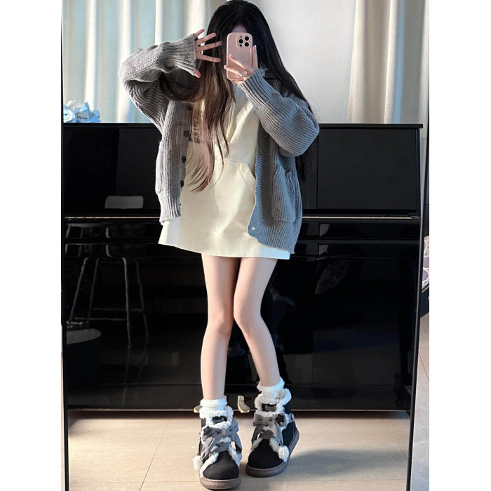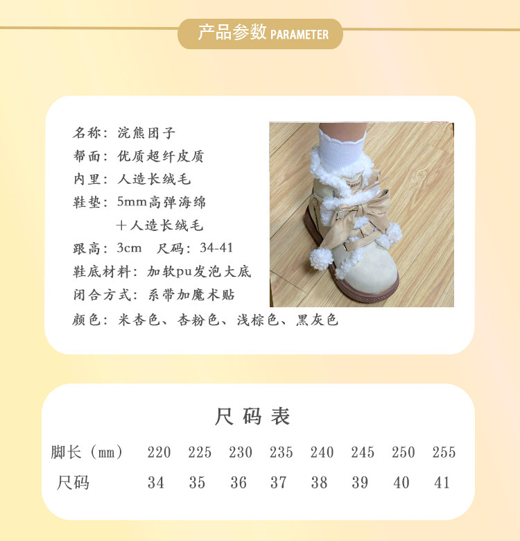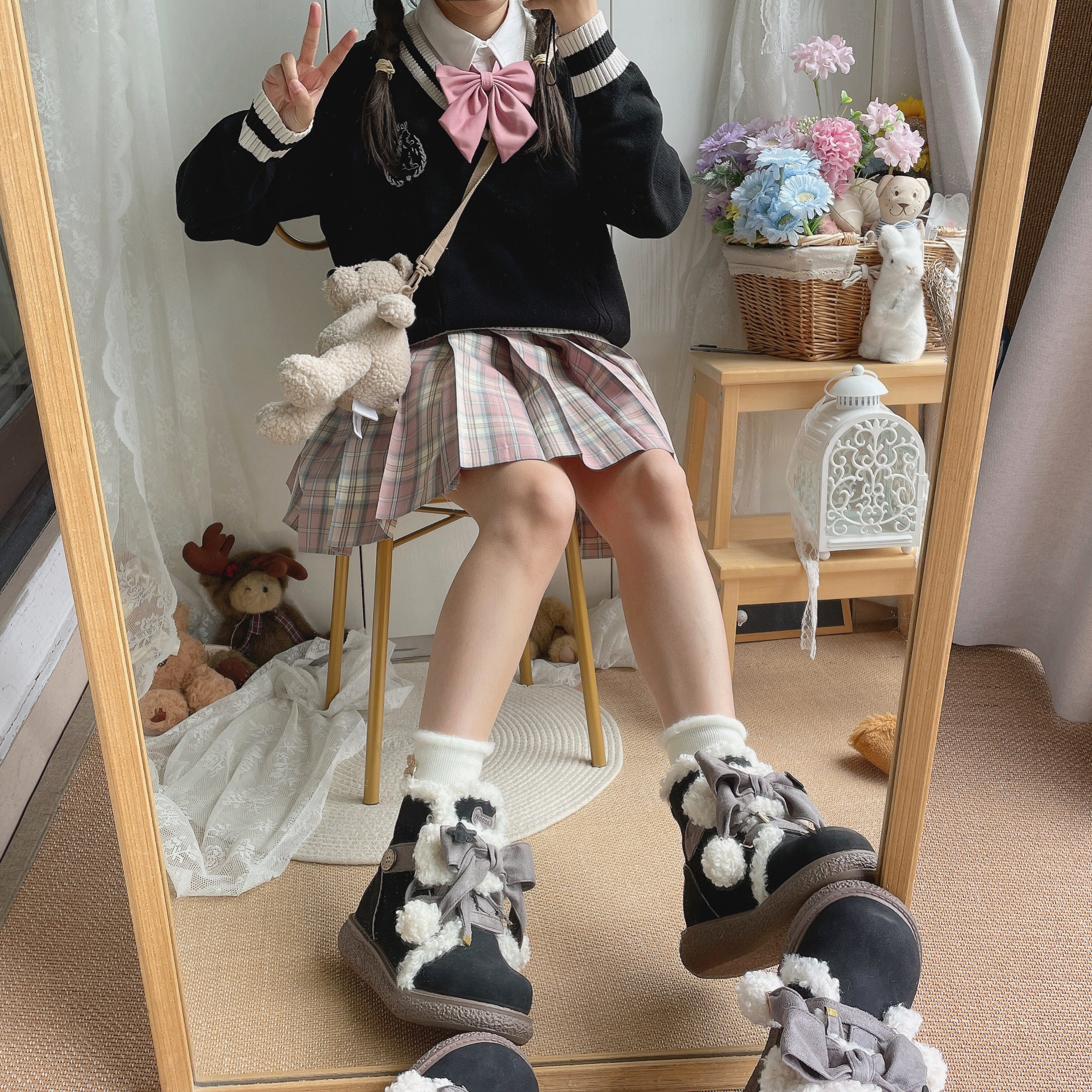 【浣熊團子】毛絨棉鞋可愛平底圓頭蝴蝶結雪地靴lo鞋冬天
