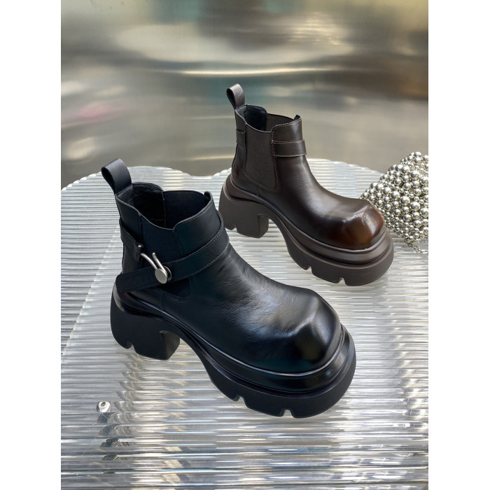 【斷碼清版】2026秋冬季新款真皮厚底復古英倫風菸筒靴短靴子女鞋