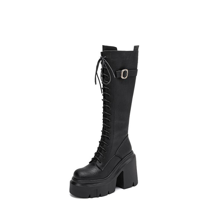 2025秋新款高跟長靴騎士靴女顯瘦長筒高筒靴厚底機車粗跟馬丁靴子
