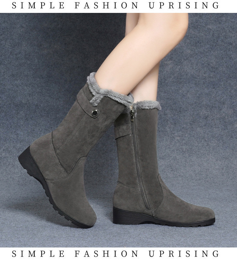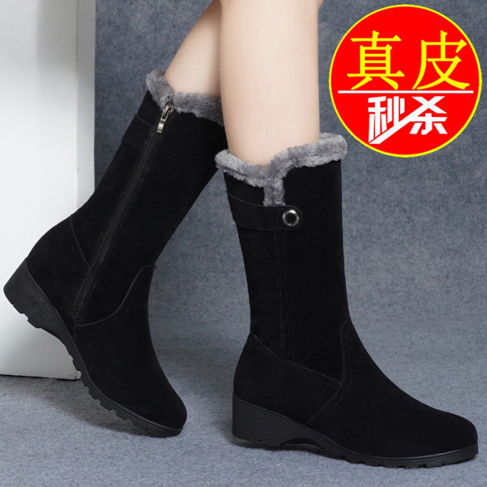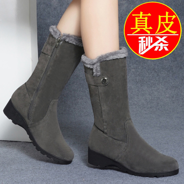 品牌真皮雪地靴女2025新款平底防滑中筒靴冬季保暖加絨加厚棉鞋女